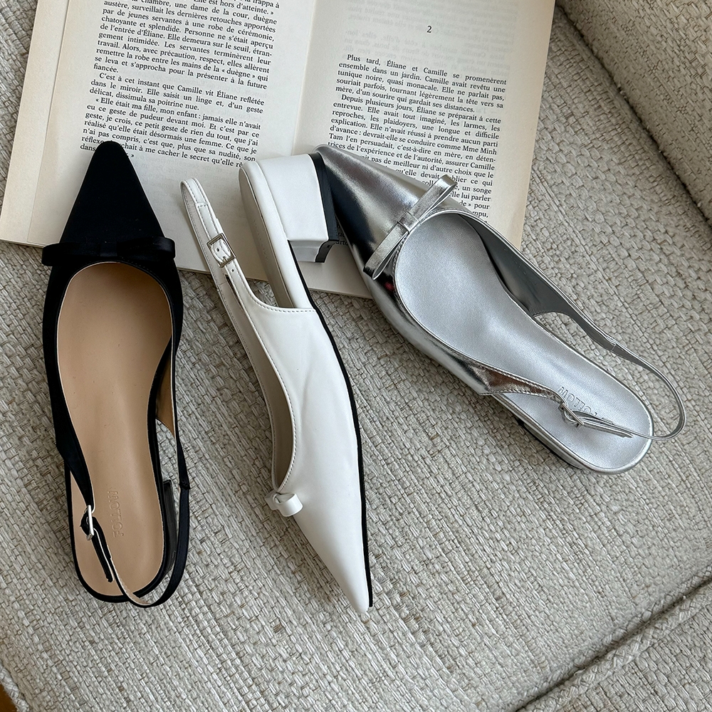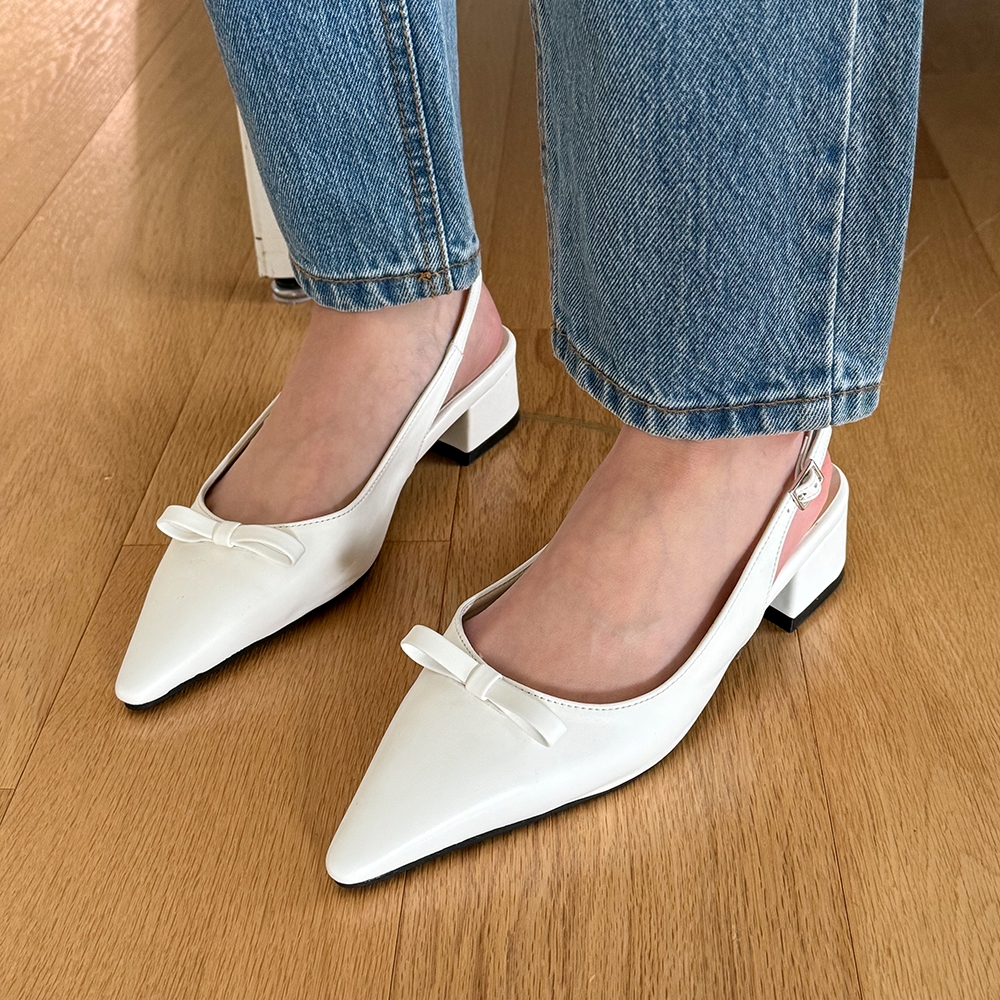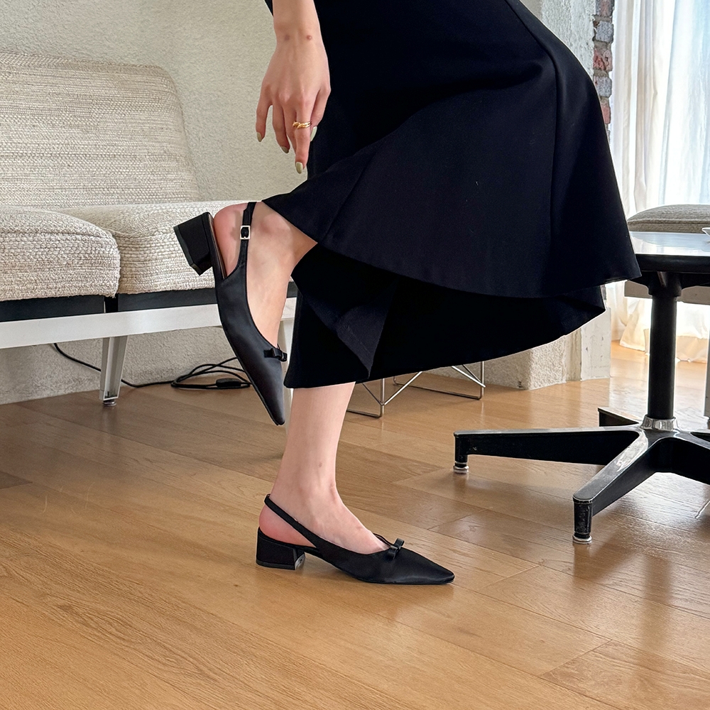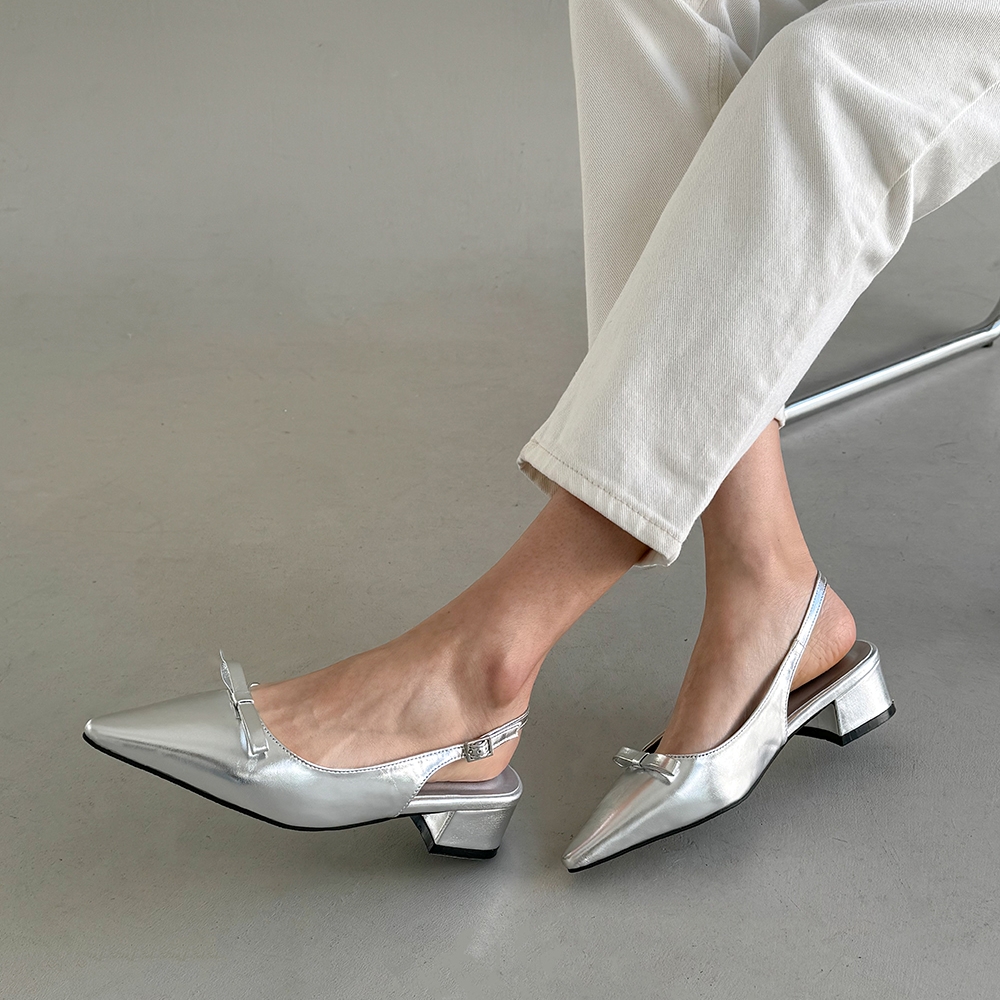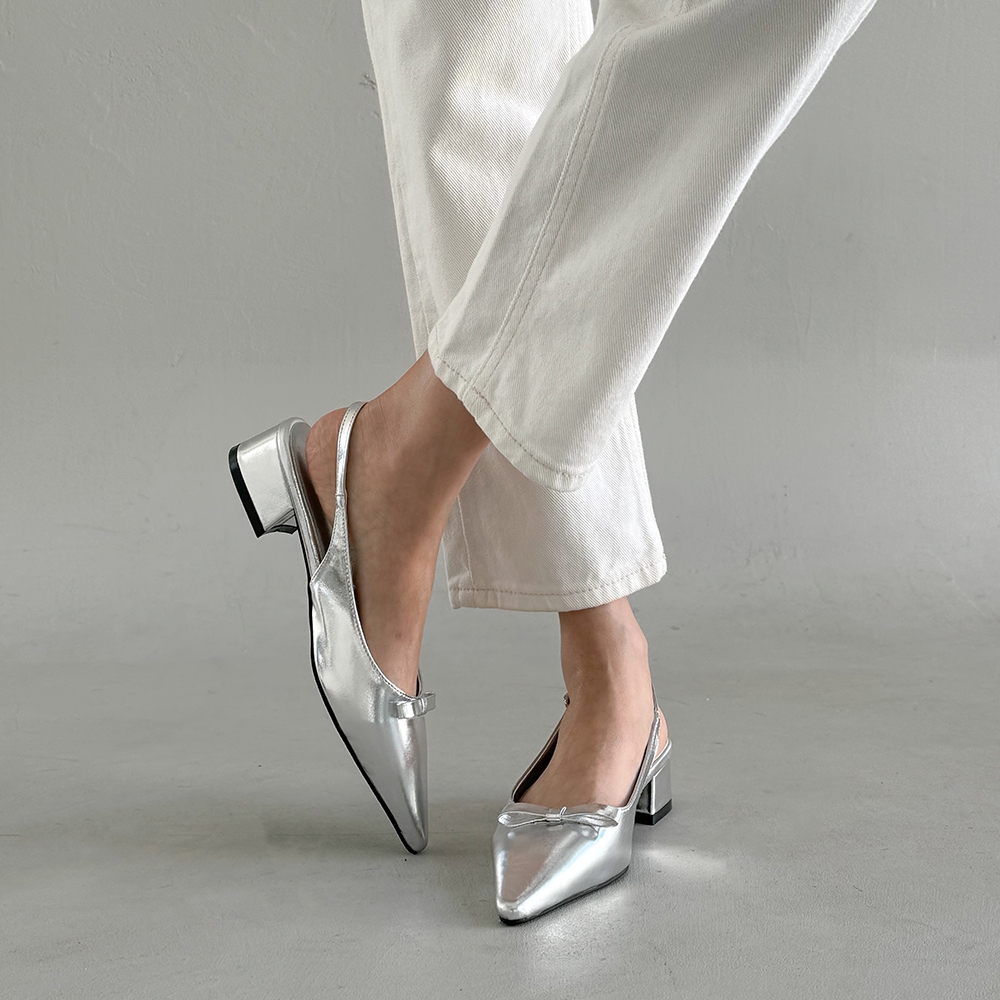 심플하고 귀여운 리본 장식의 슬링백구두입니다