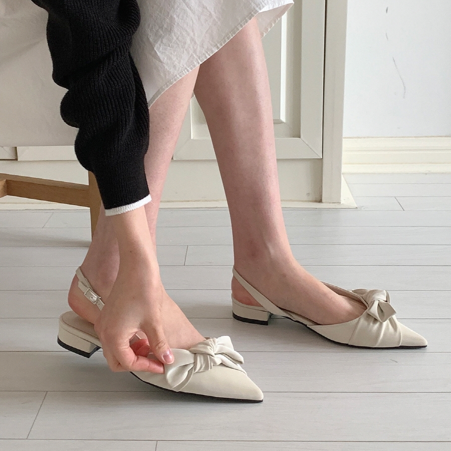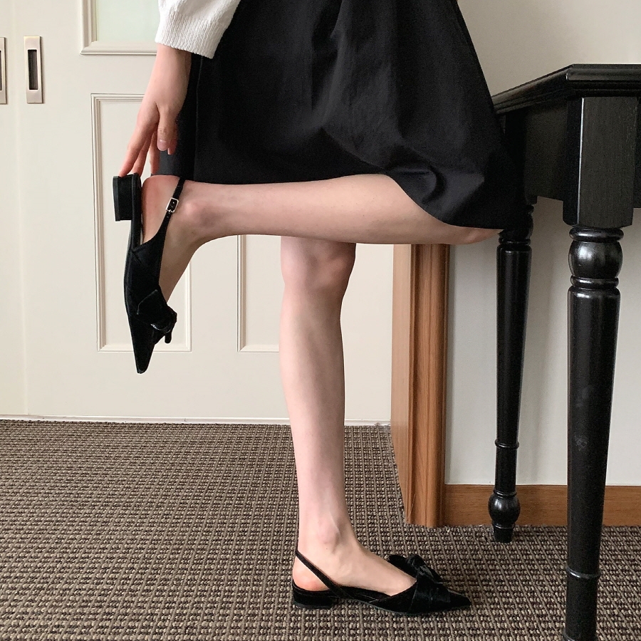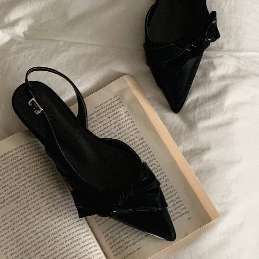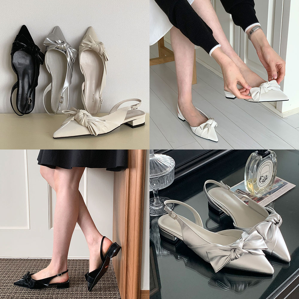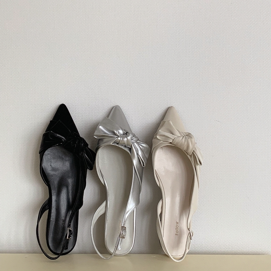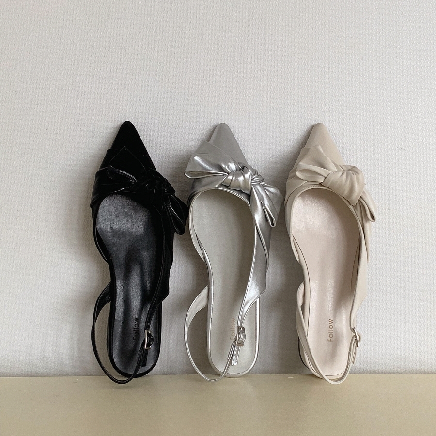 스틸레토 셔링 왕리본 스트랩 여자 로우힐 슬링백힐