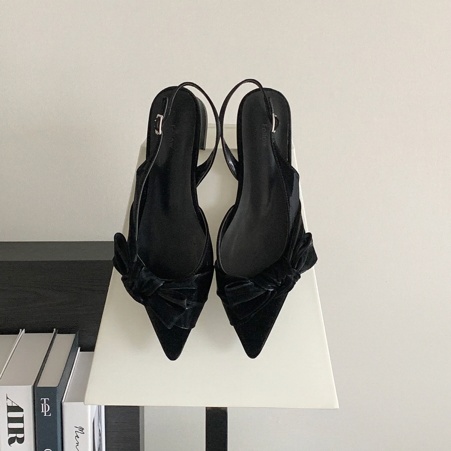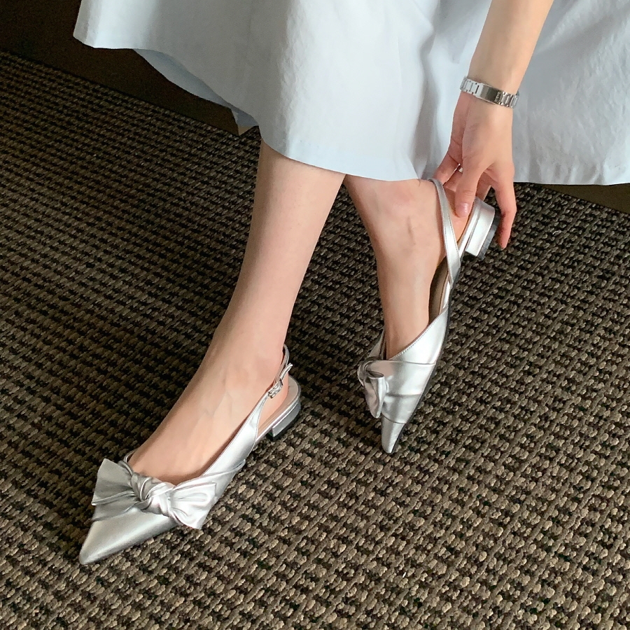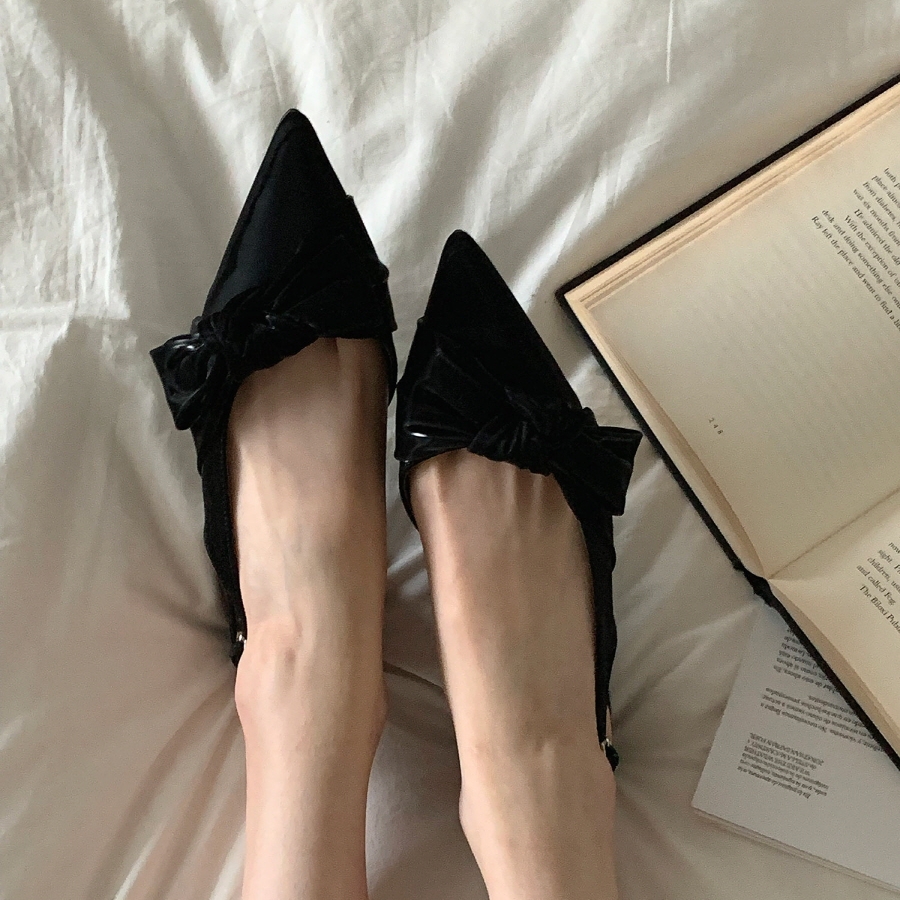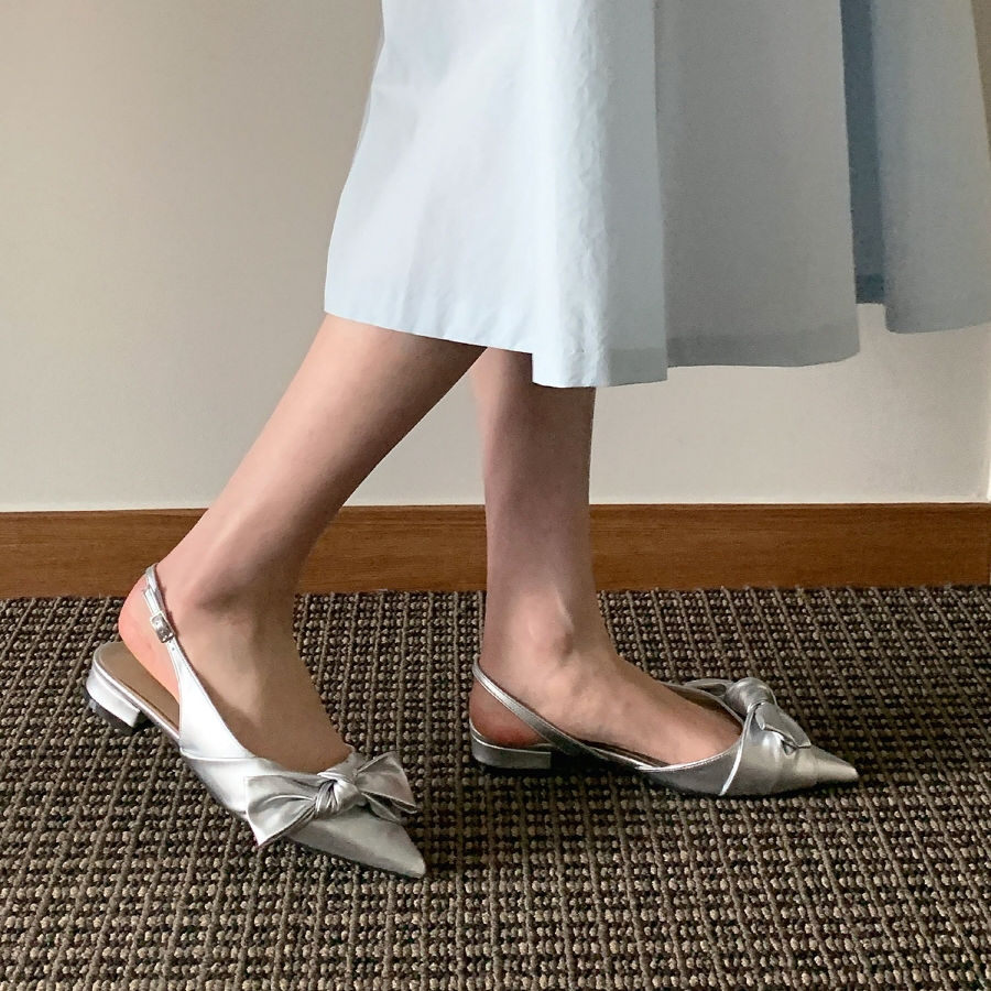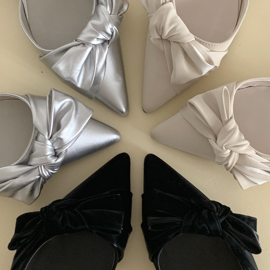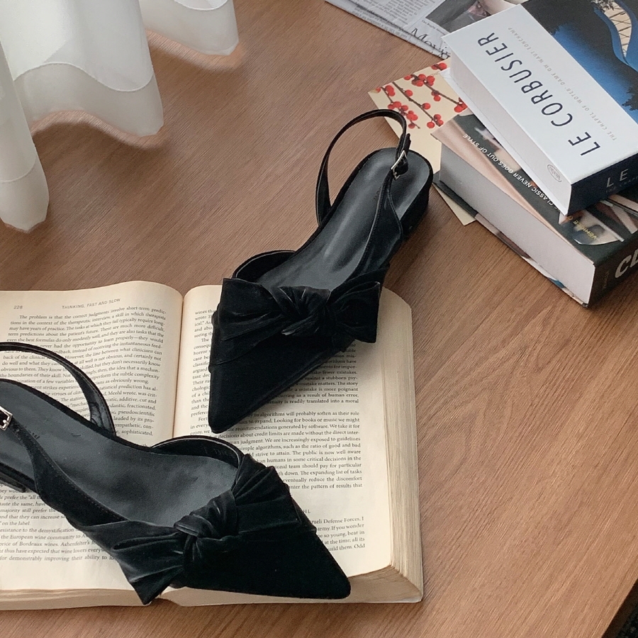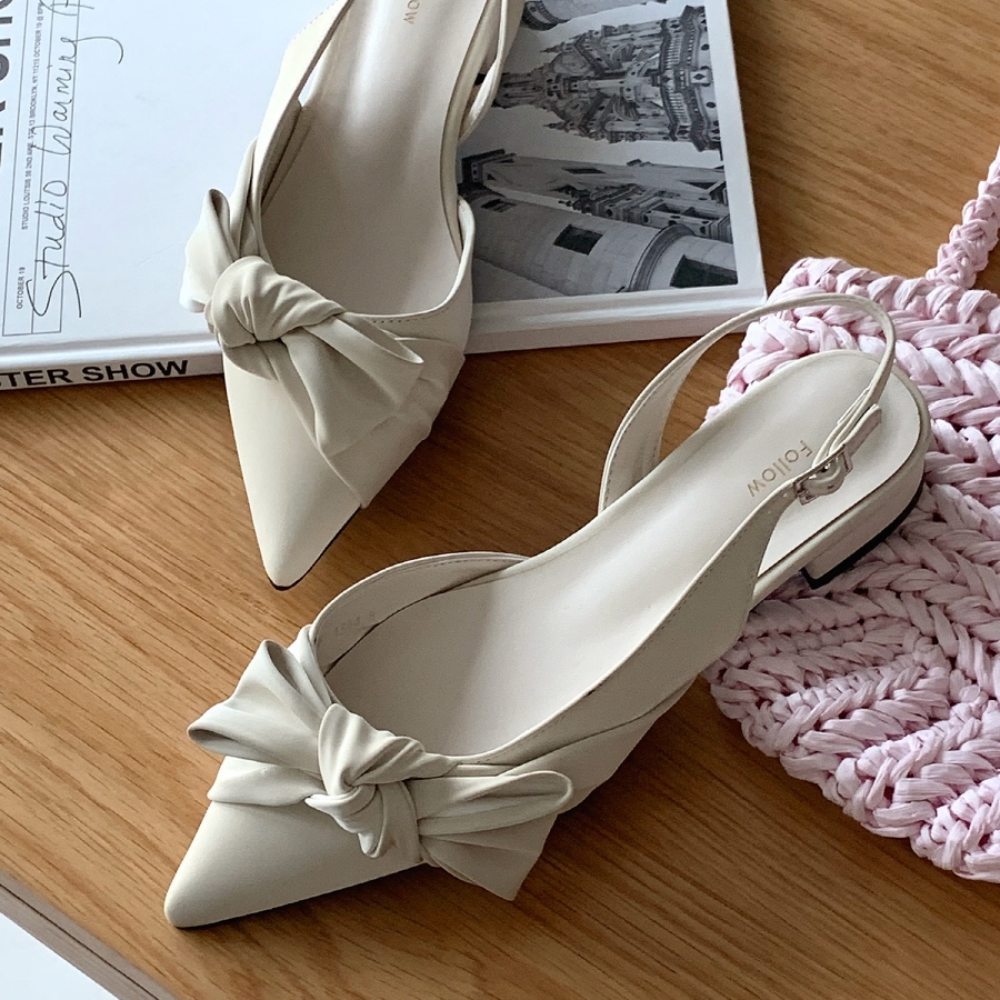 스틸레토 셔링 왕리본 스트랩 여자 로우힐 슬링백힐