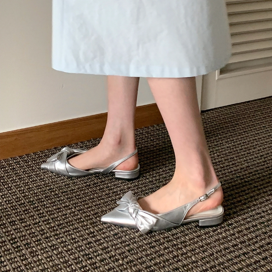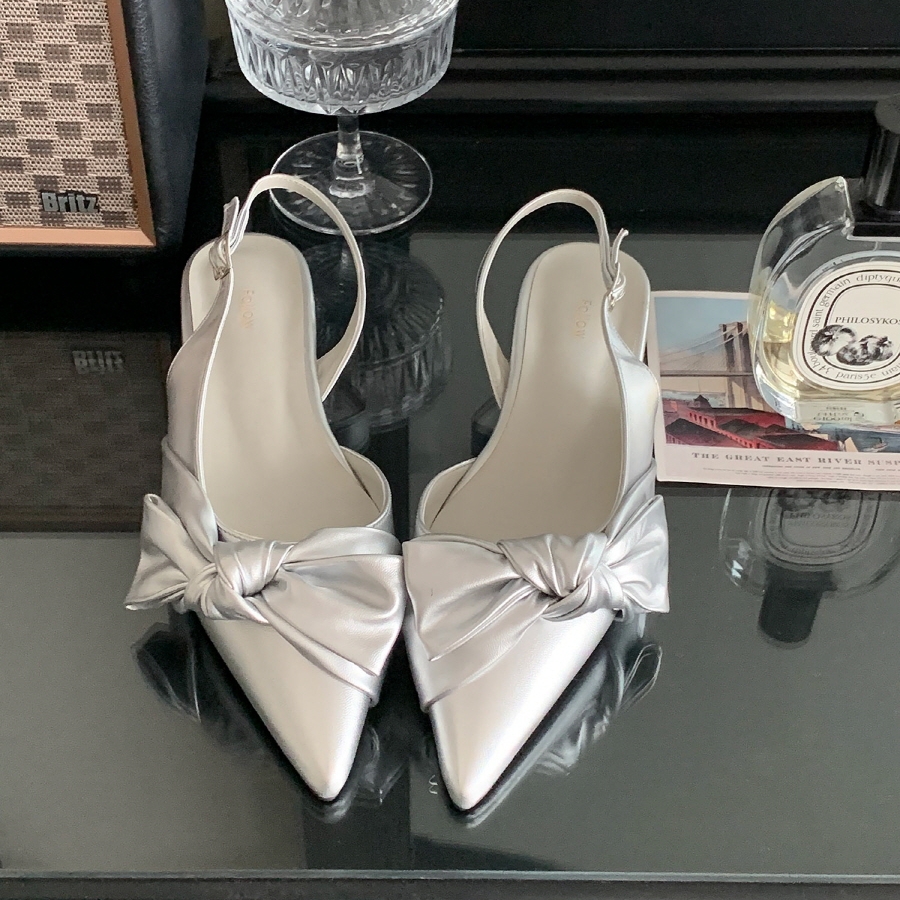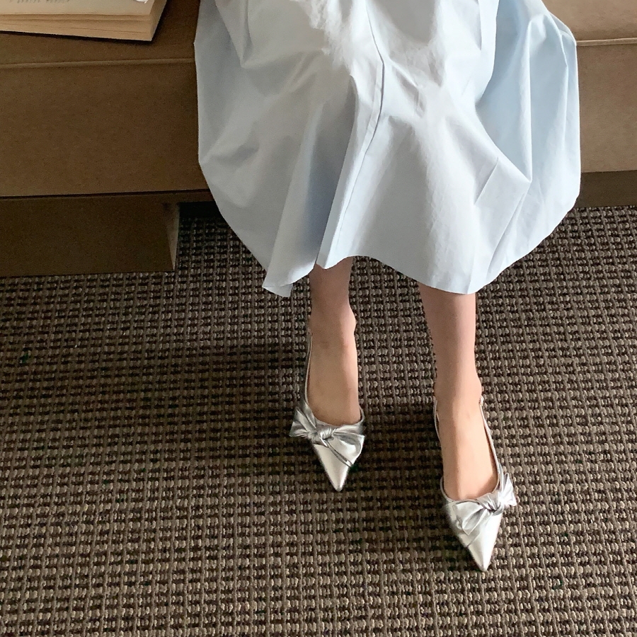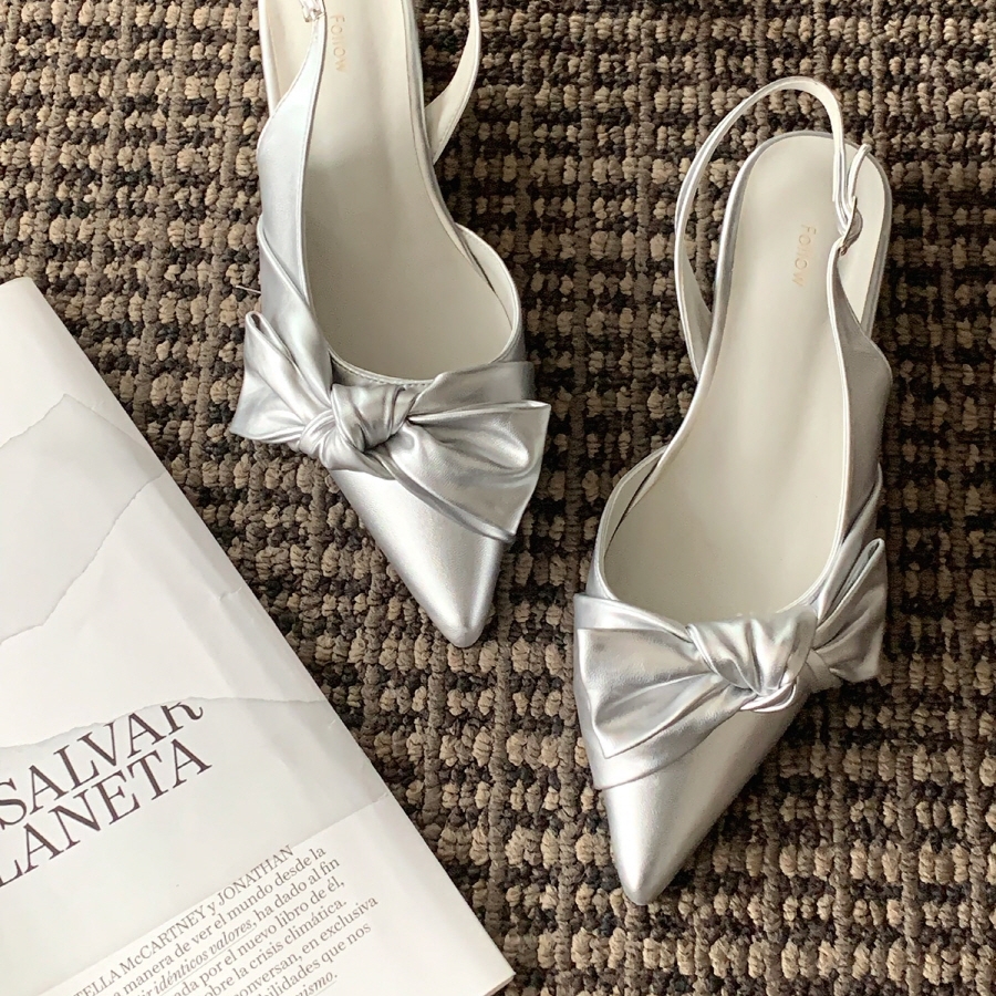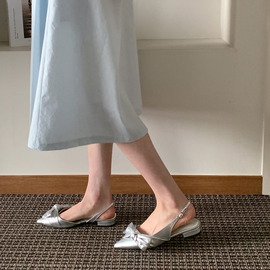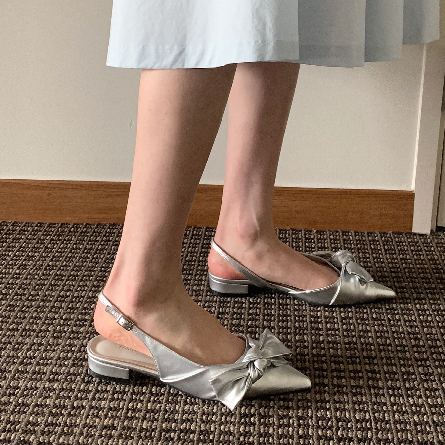 스틸레토 셔링 왕리본 스트랩 여자 로우힐 슬링백힐