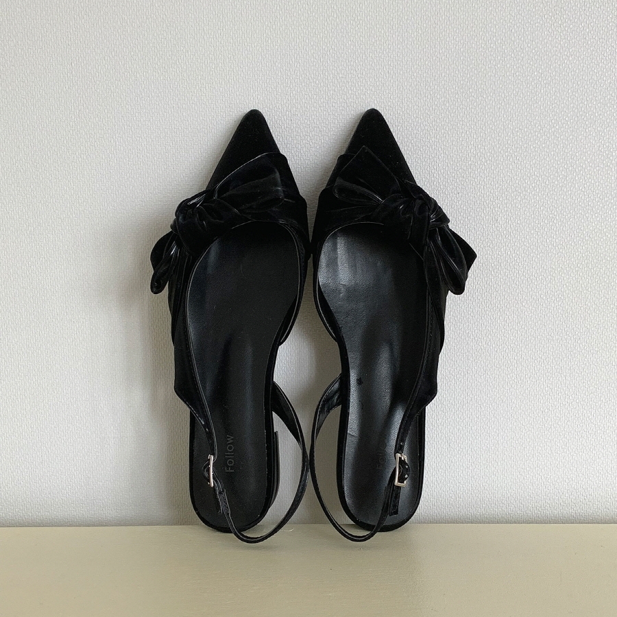 묶음 셔링 리본이 포인트인 슬링백구두에요