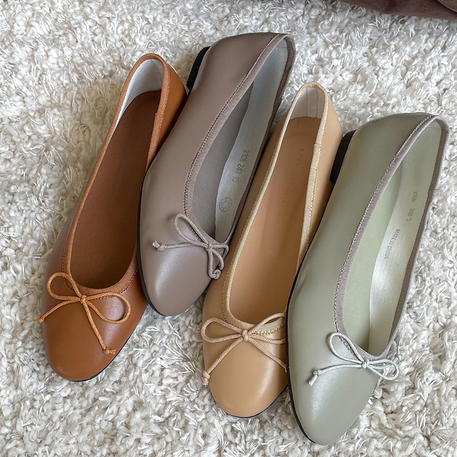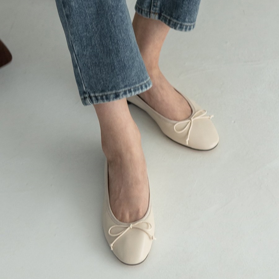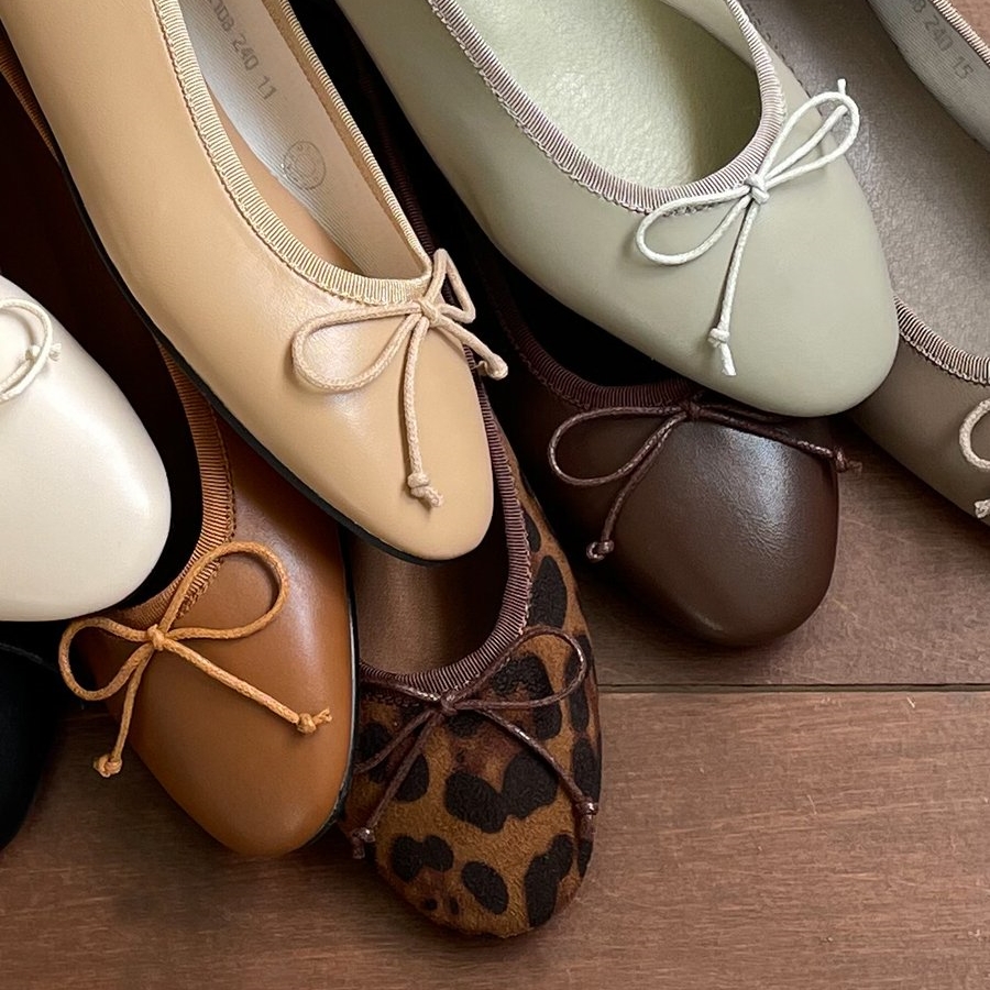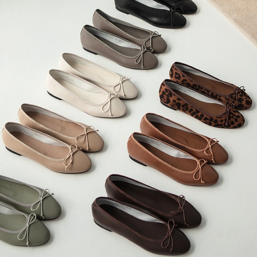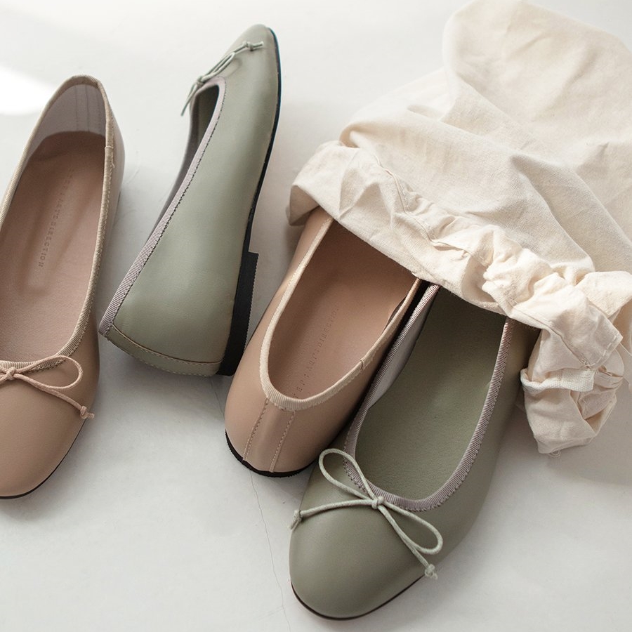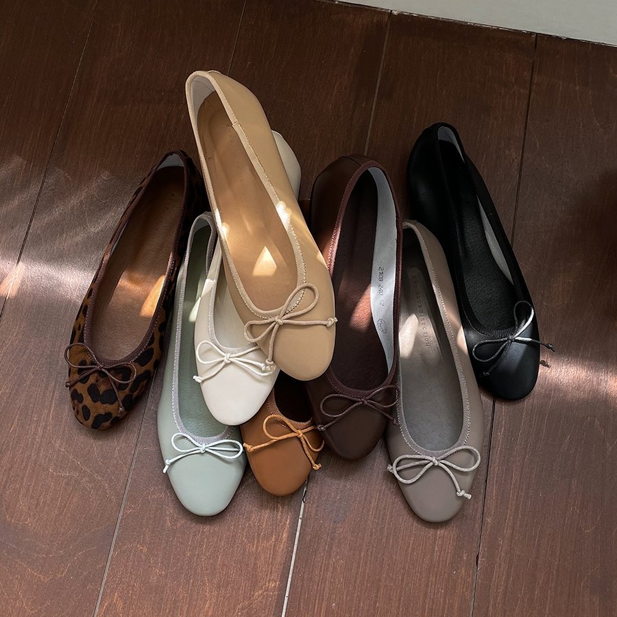 라운드토 발레리나 발편한 리본 여자 플랫슈즈