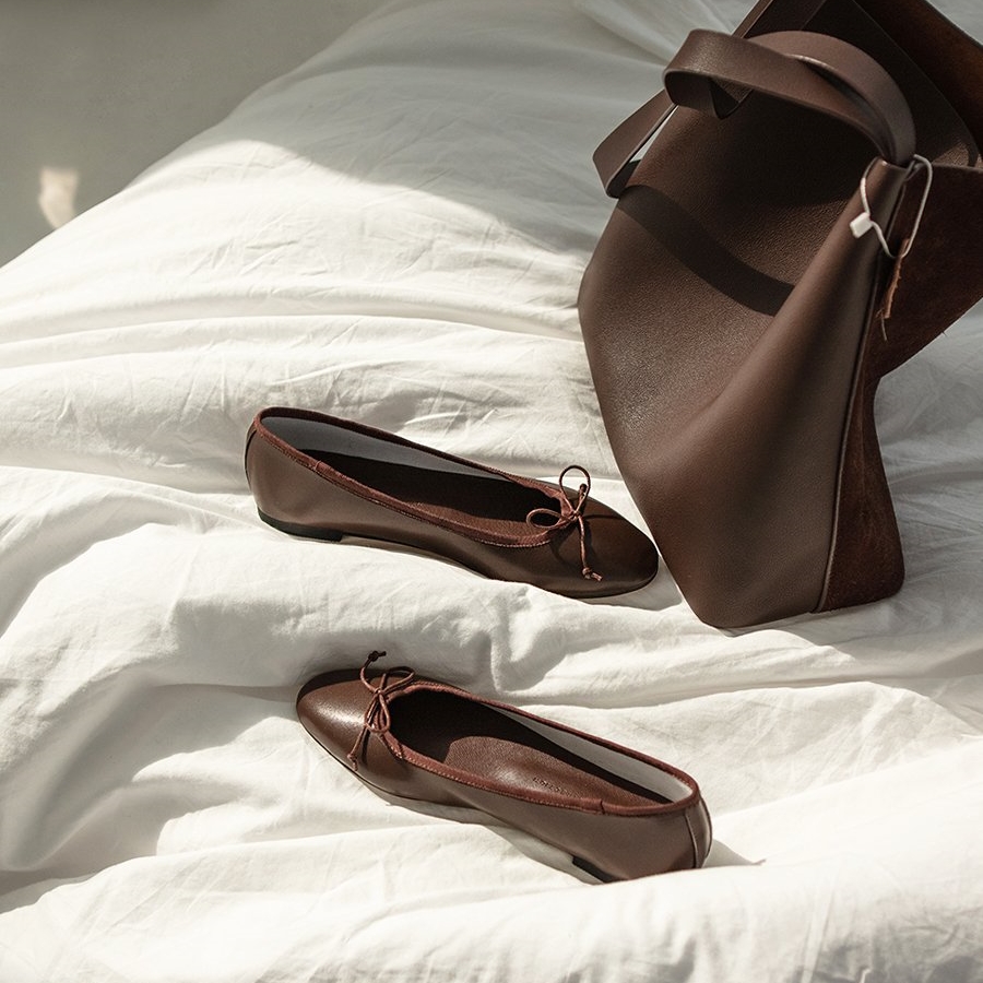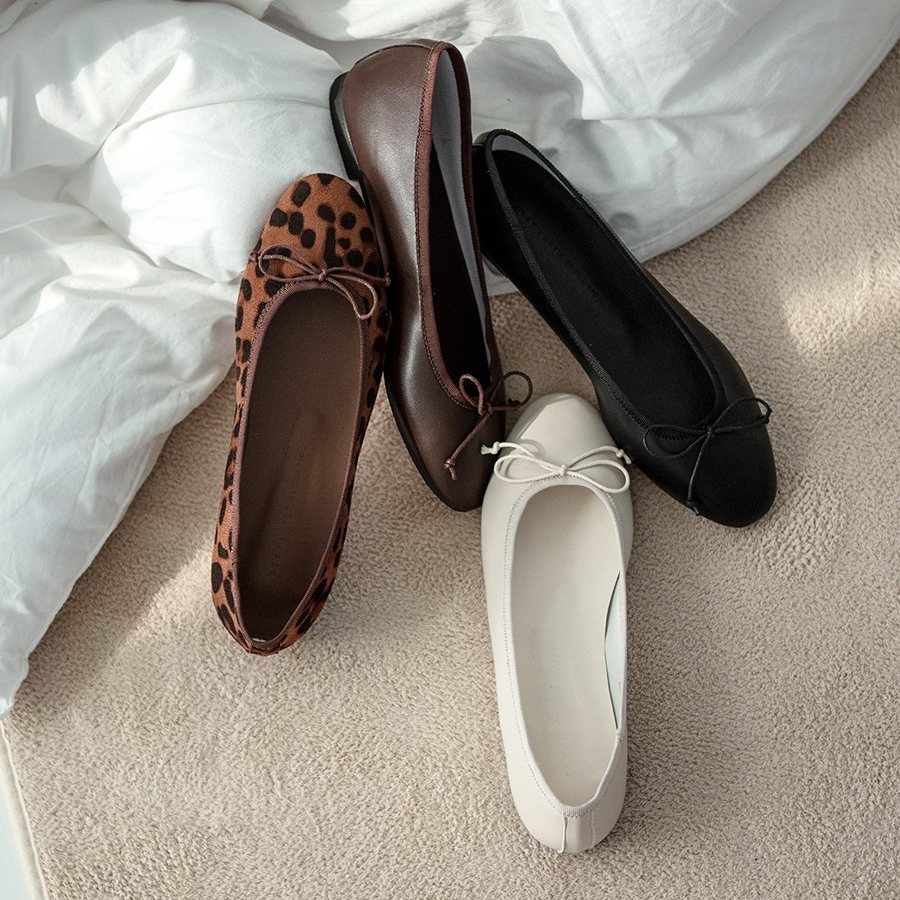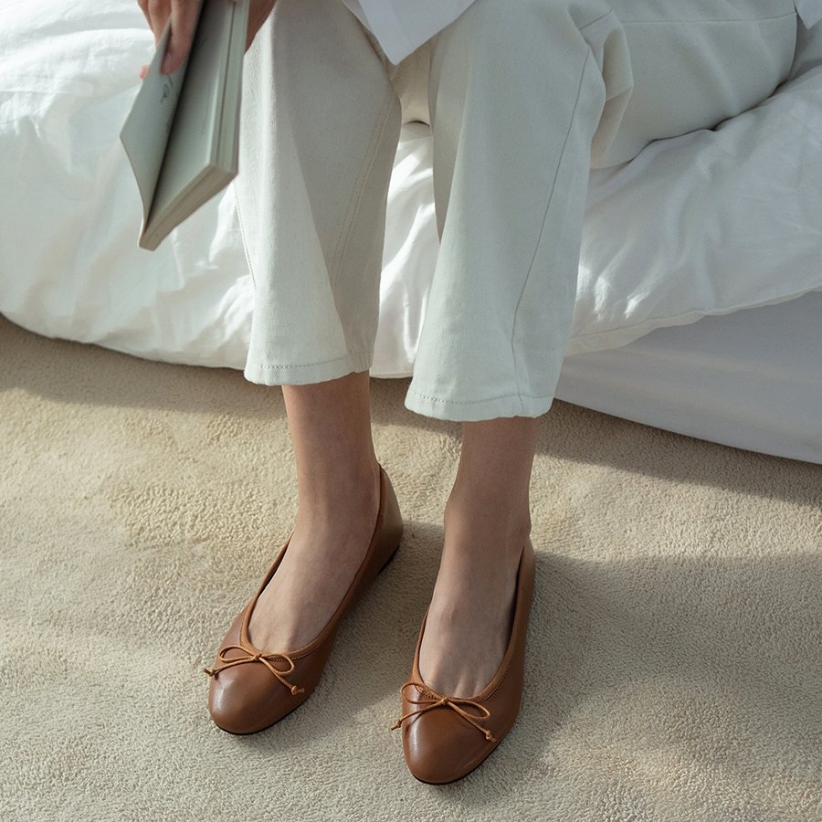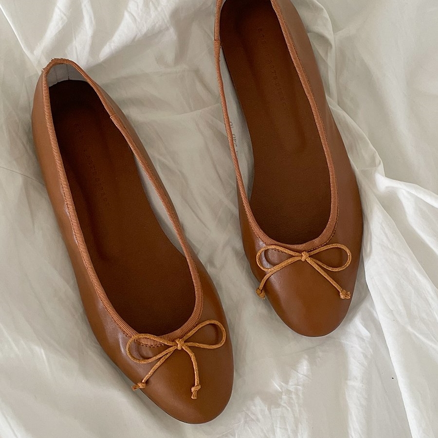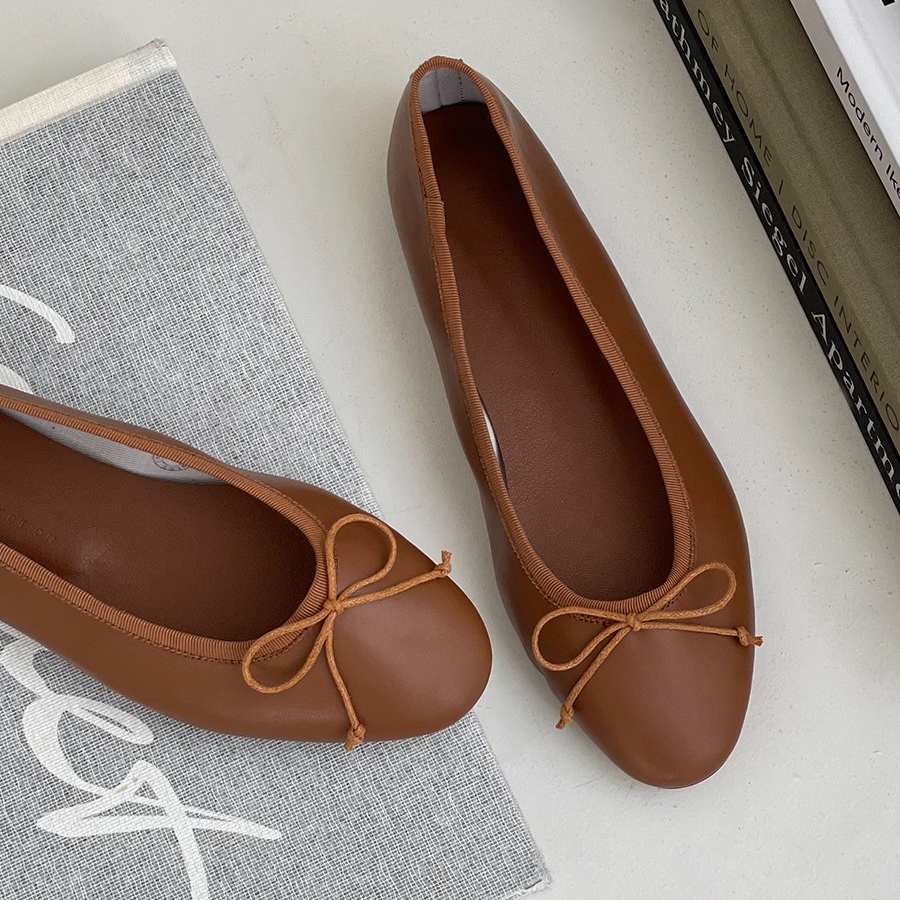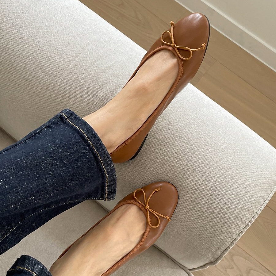 라운드토 발레리나 발편한 리본 여자 플랫슈즈