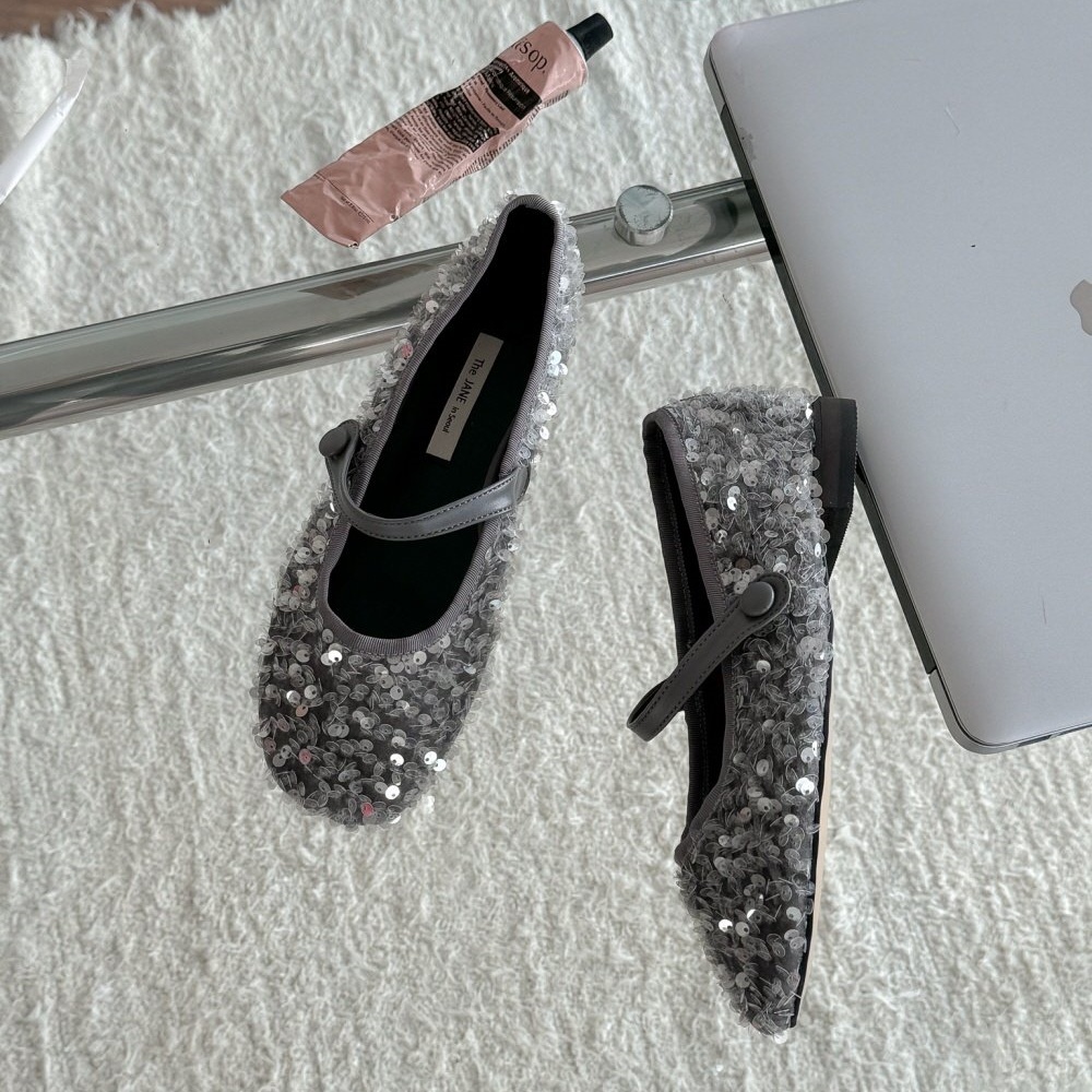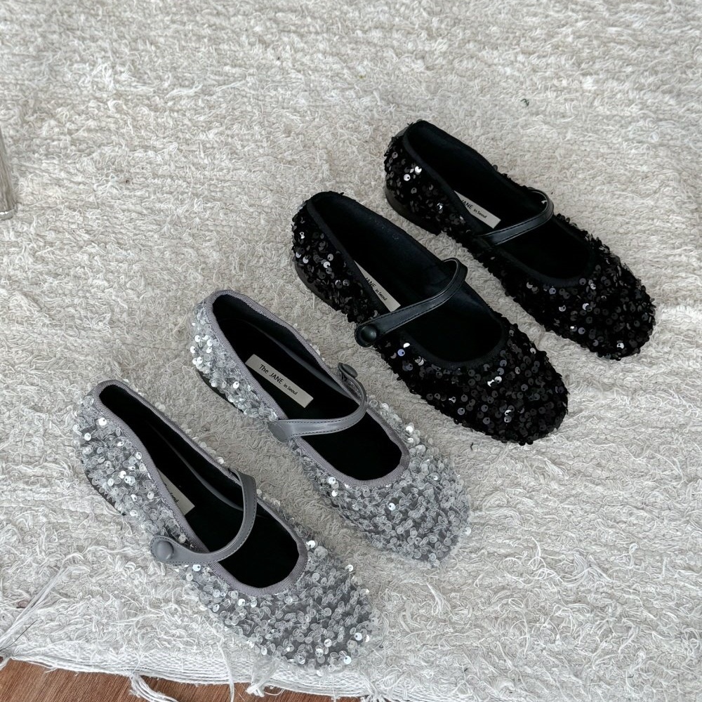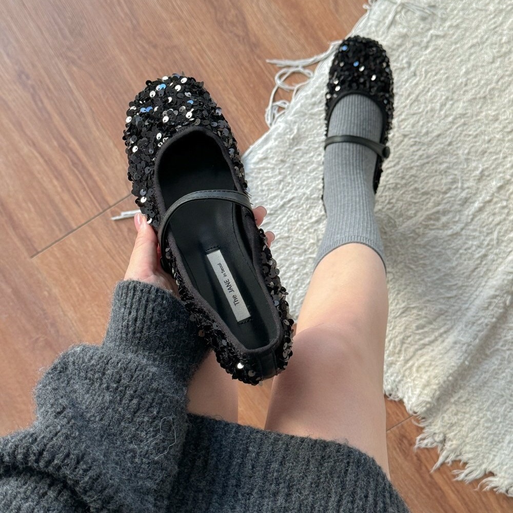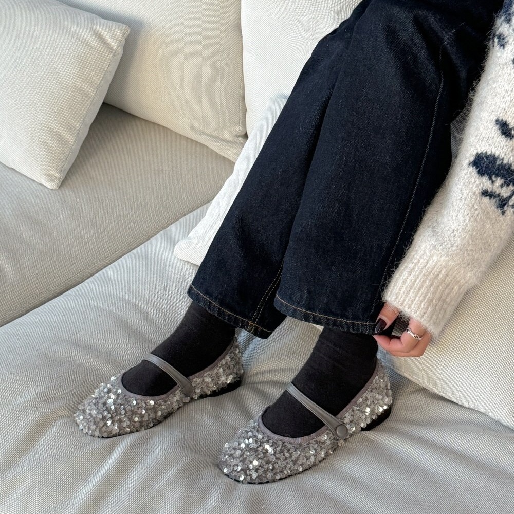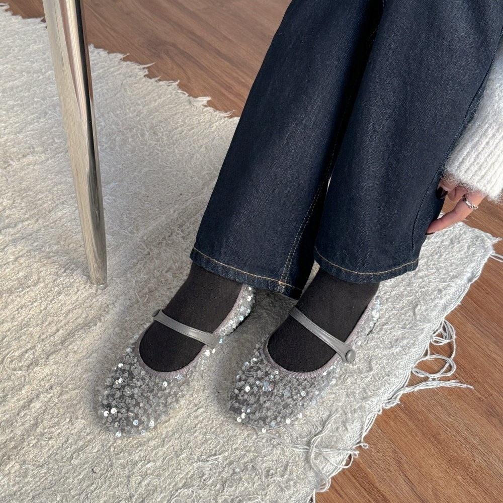 반짝이는 스팽글 소재로 제작된 메리제인 플랫슈즈는