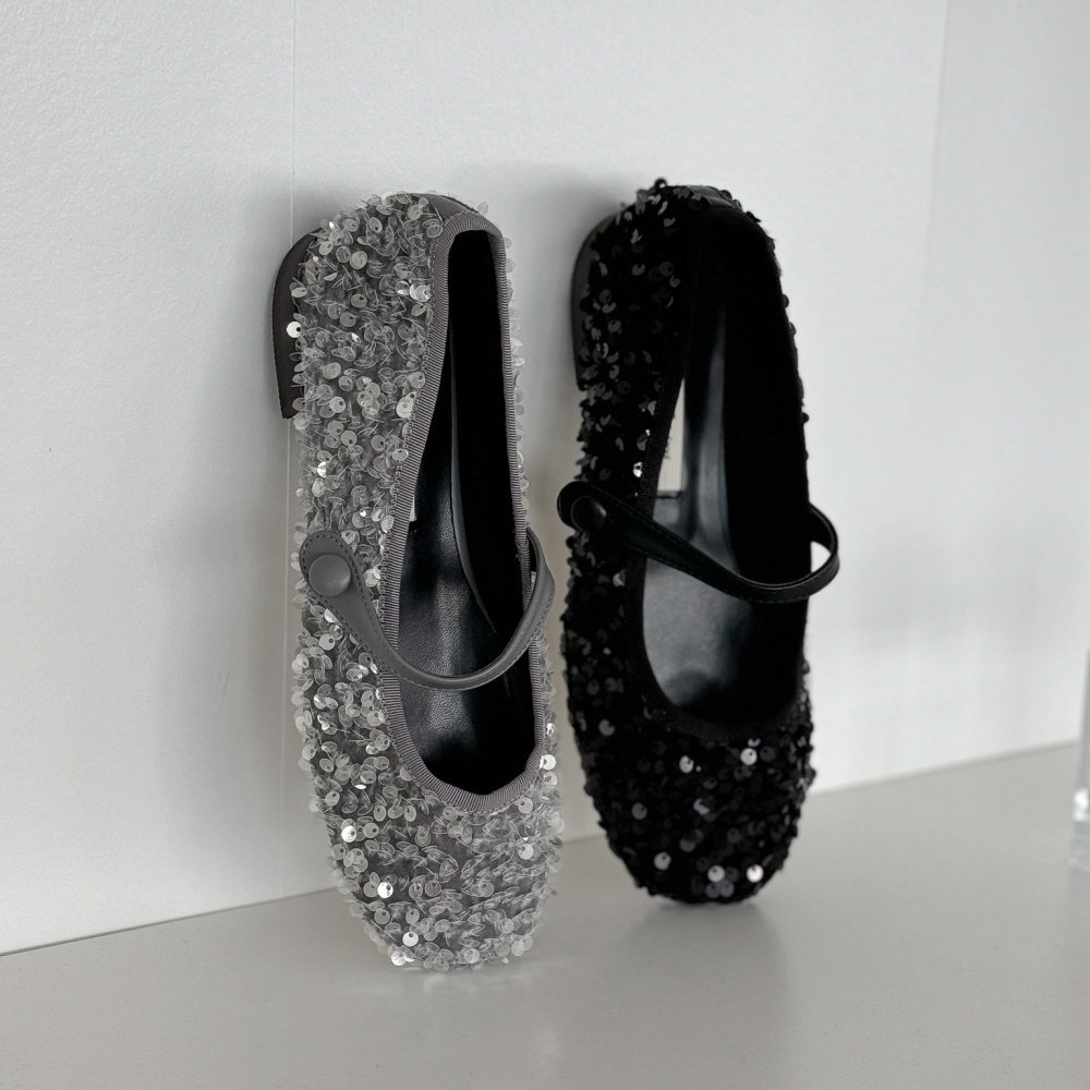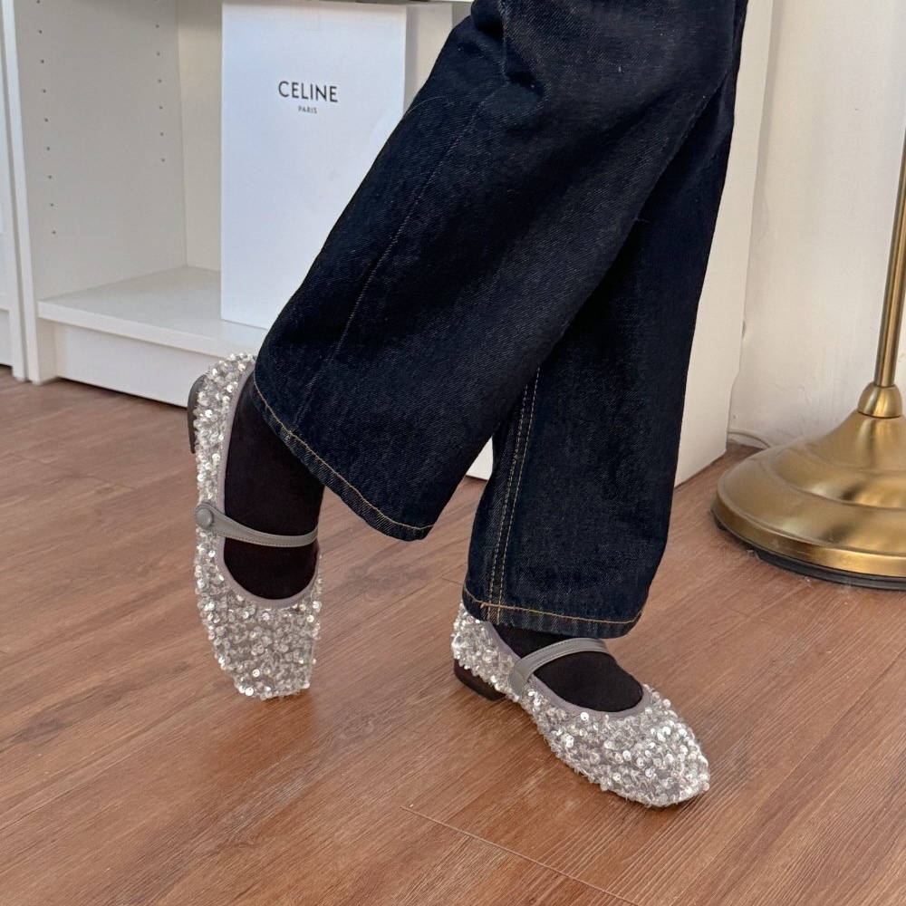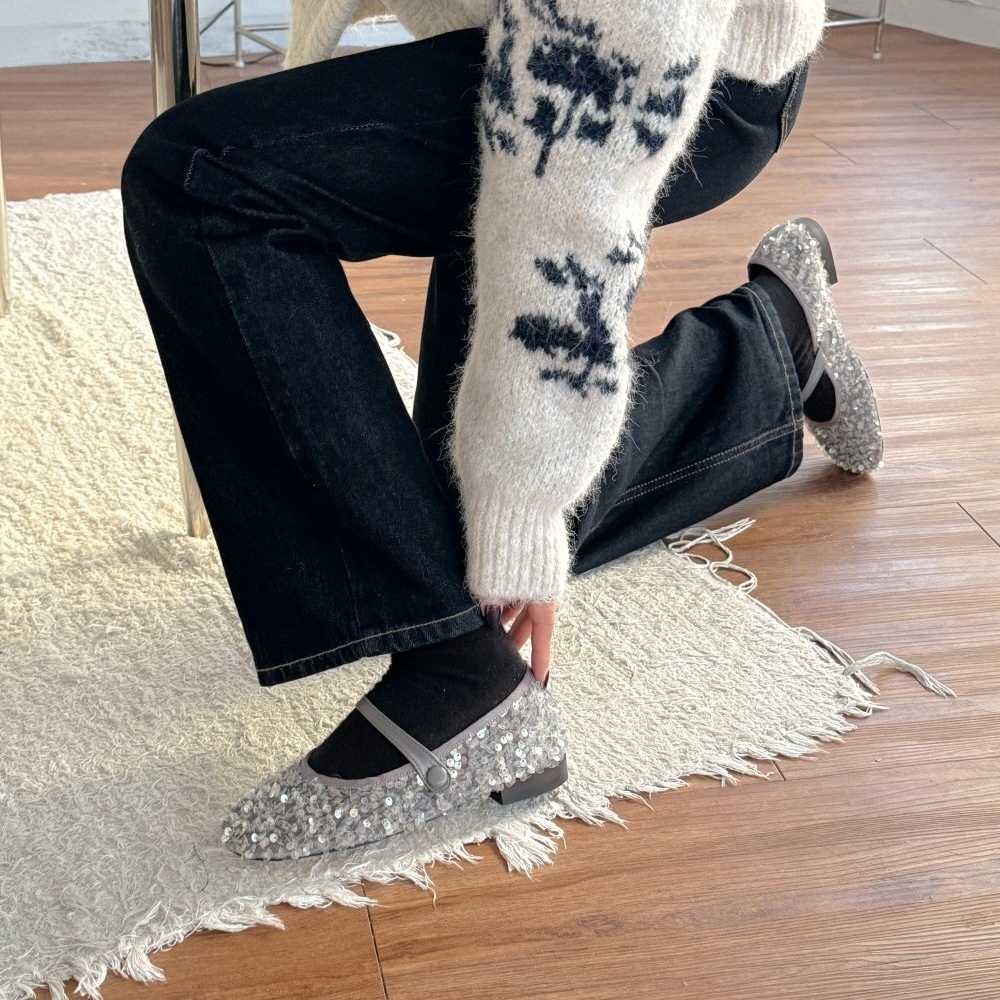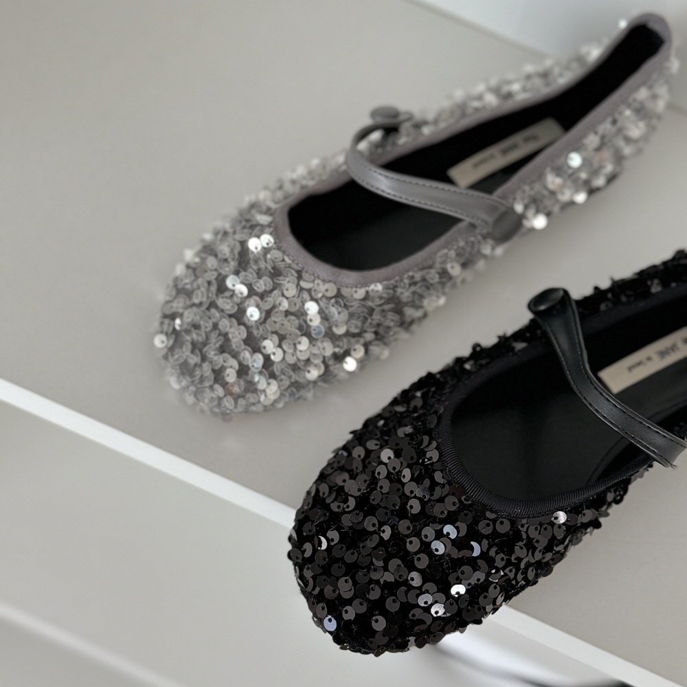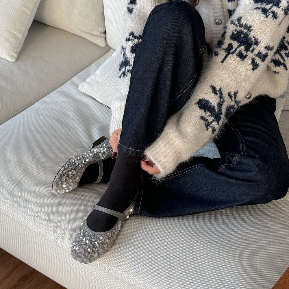 반짝이는 스팽글 소재로 제작된 메리제인 플랫슈즈는