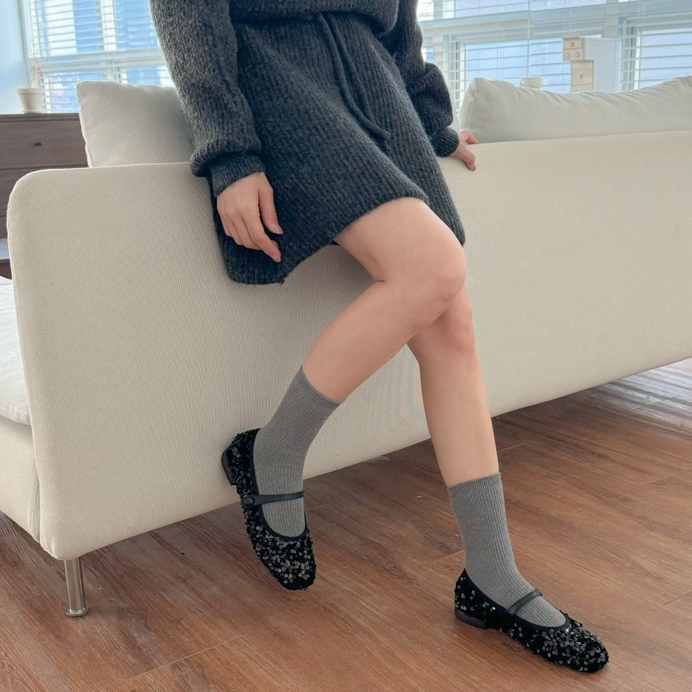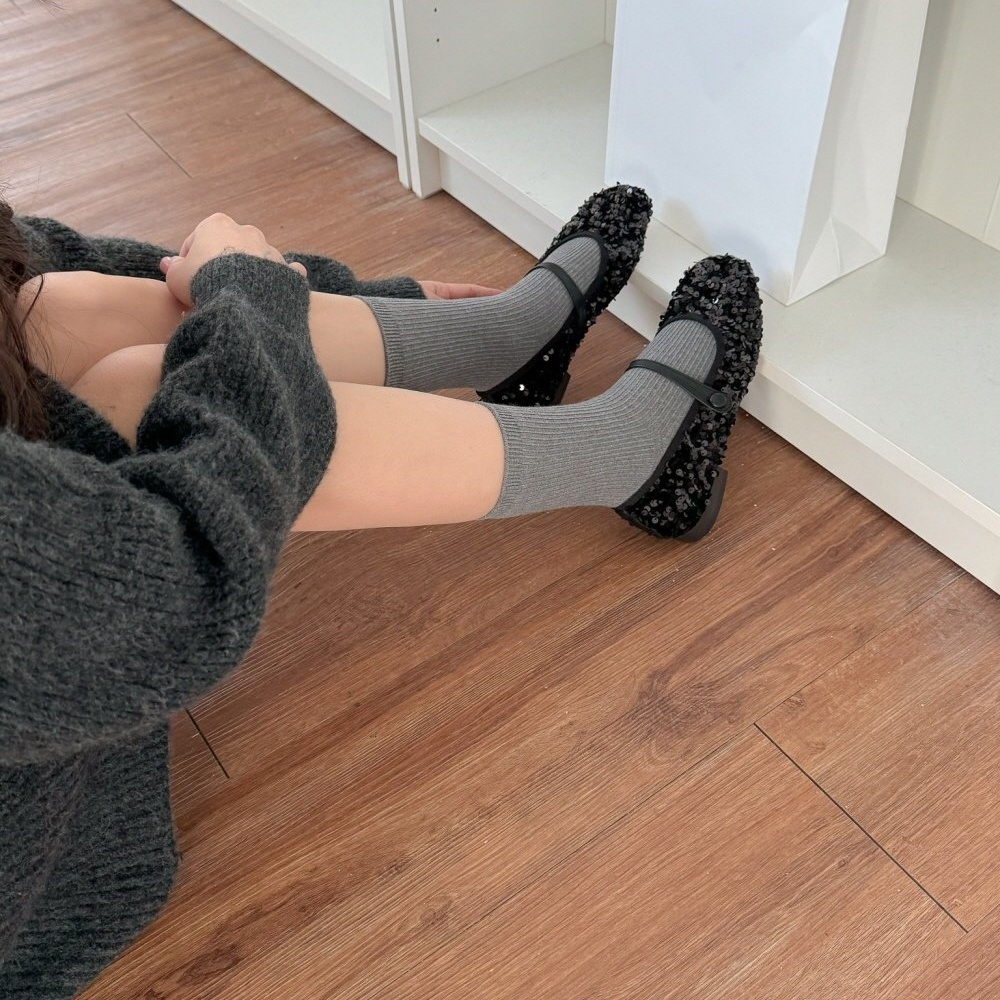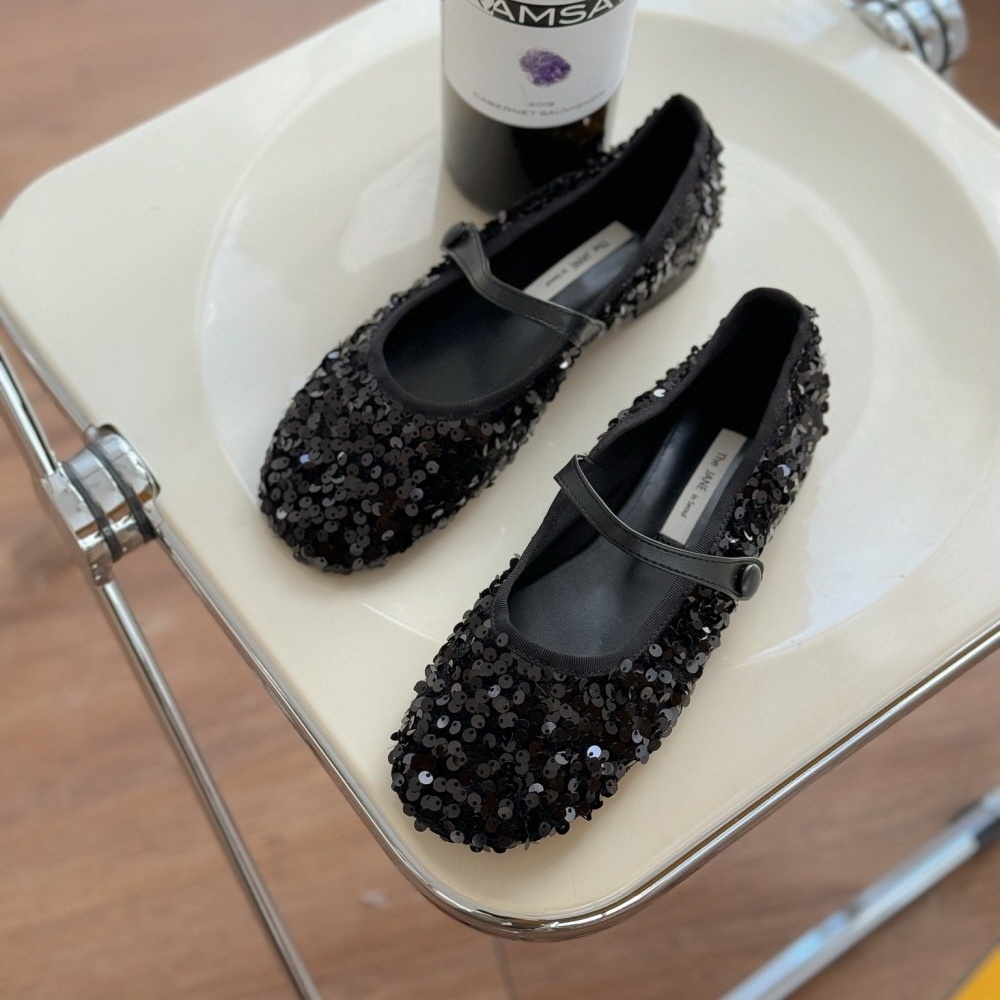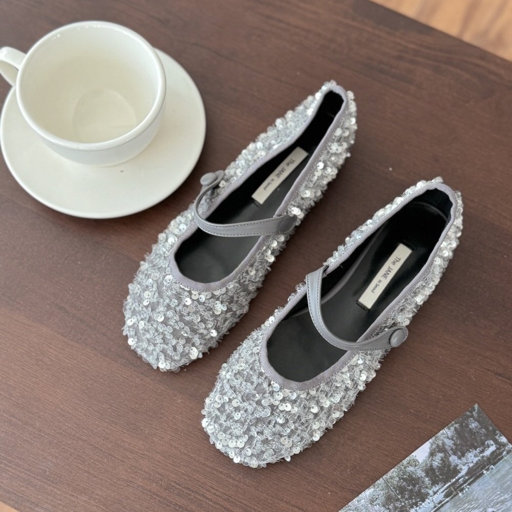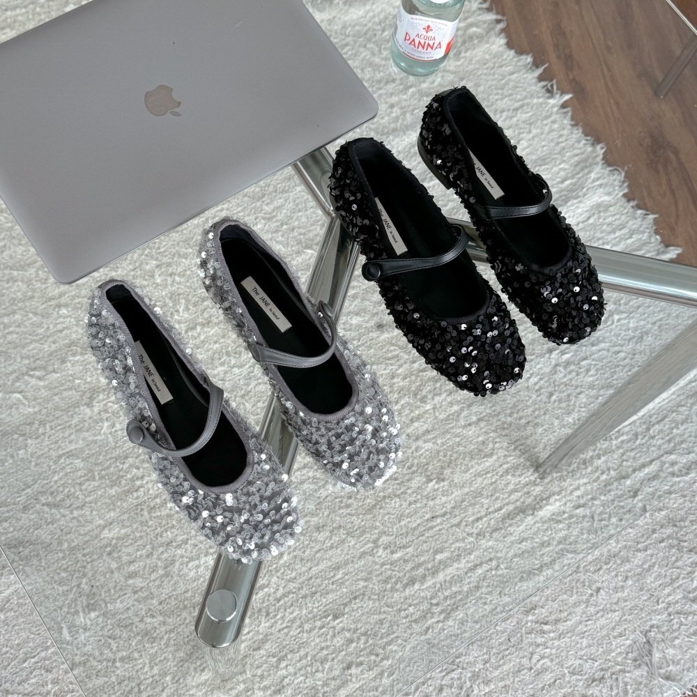 반짝이는 스팽글 소재로 제작된 메리제인 플랫슈즈는