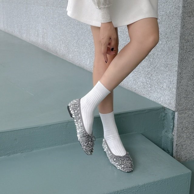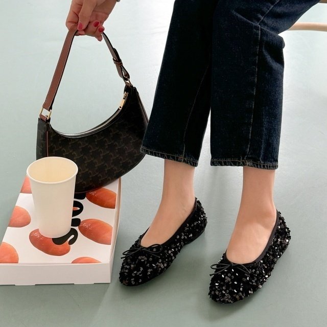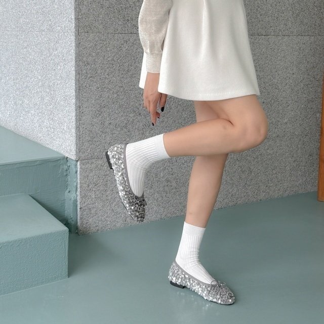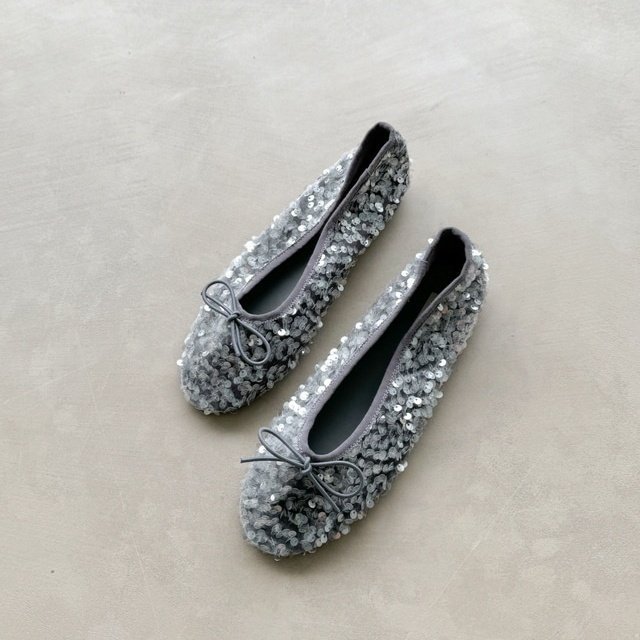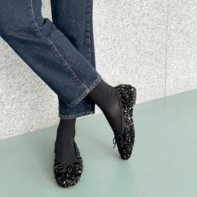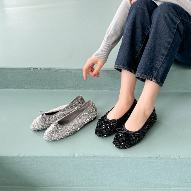 스퀘어 스팽글 플랫슈즈는 깔끔한 스퀘어 라인에