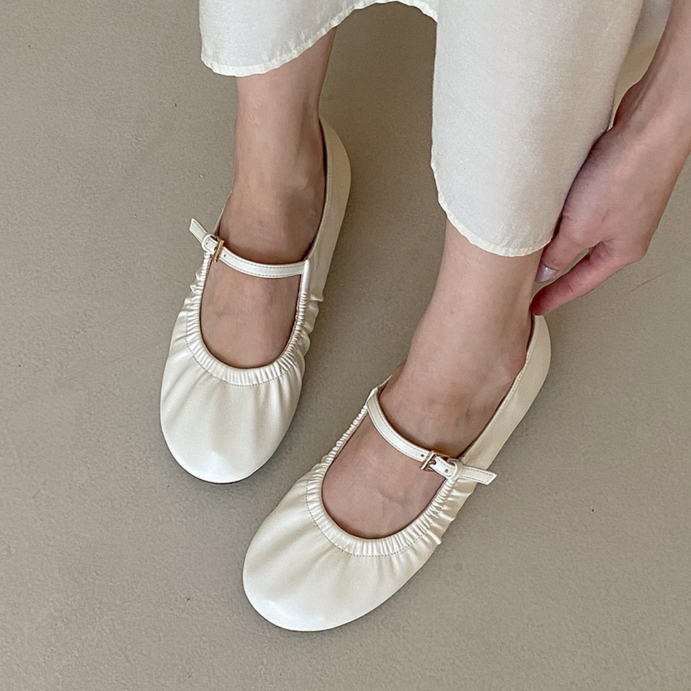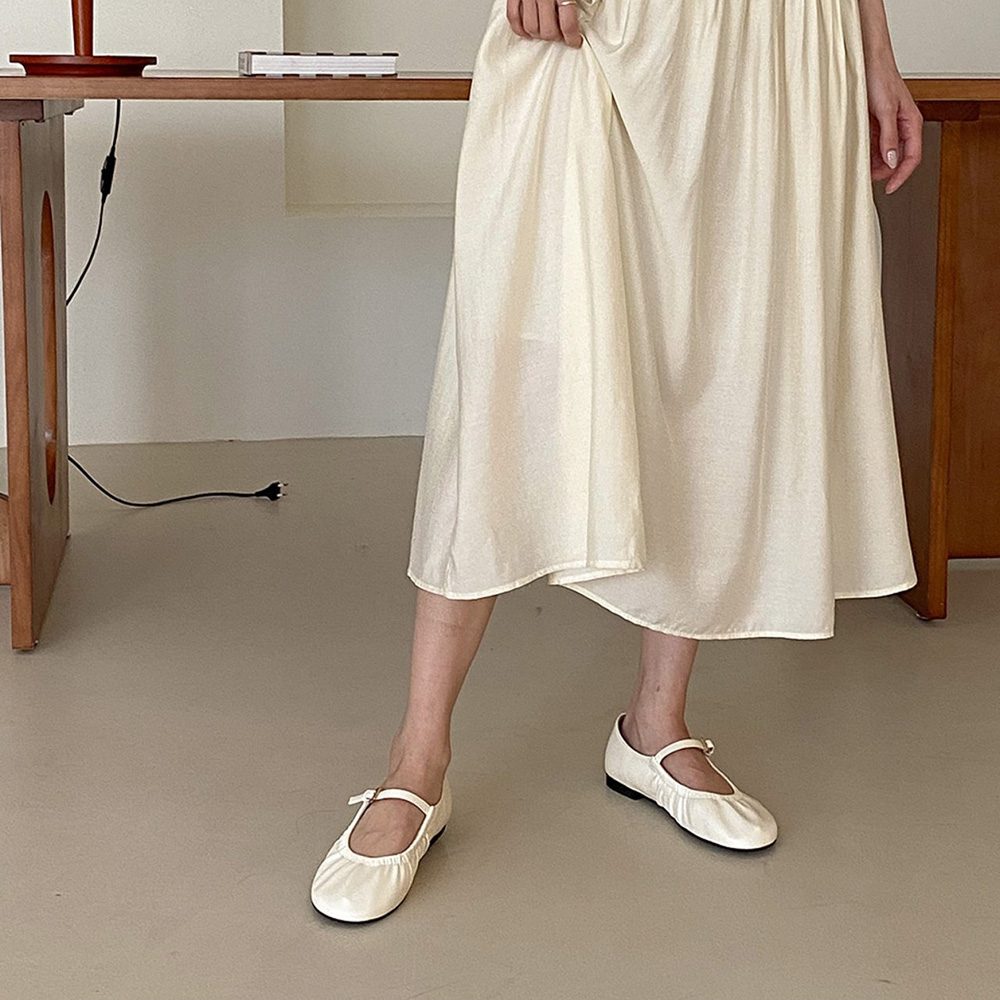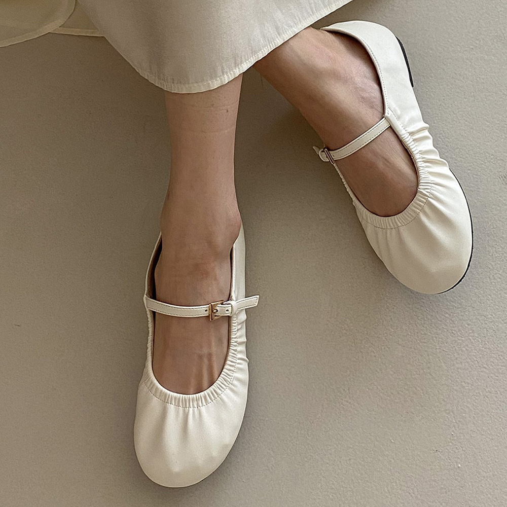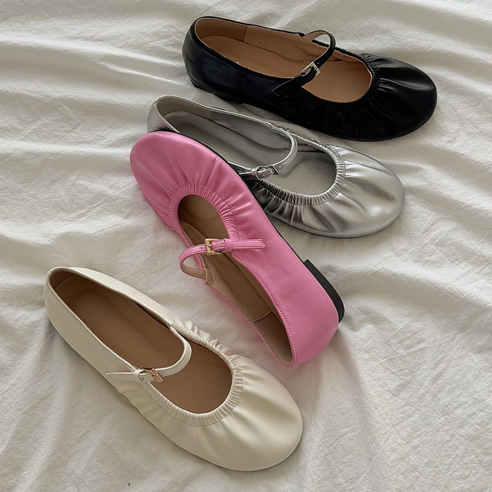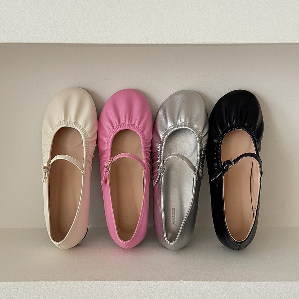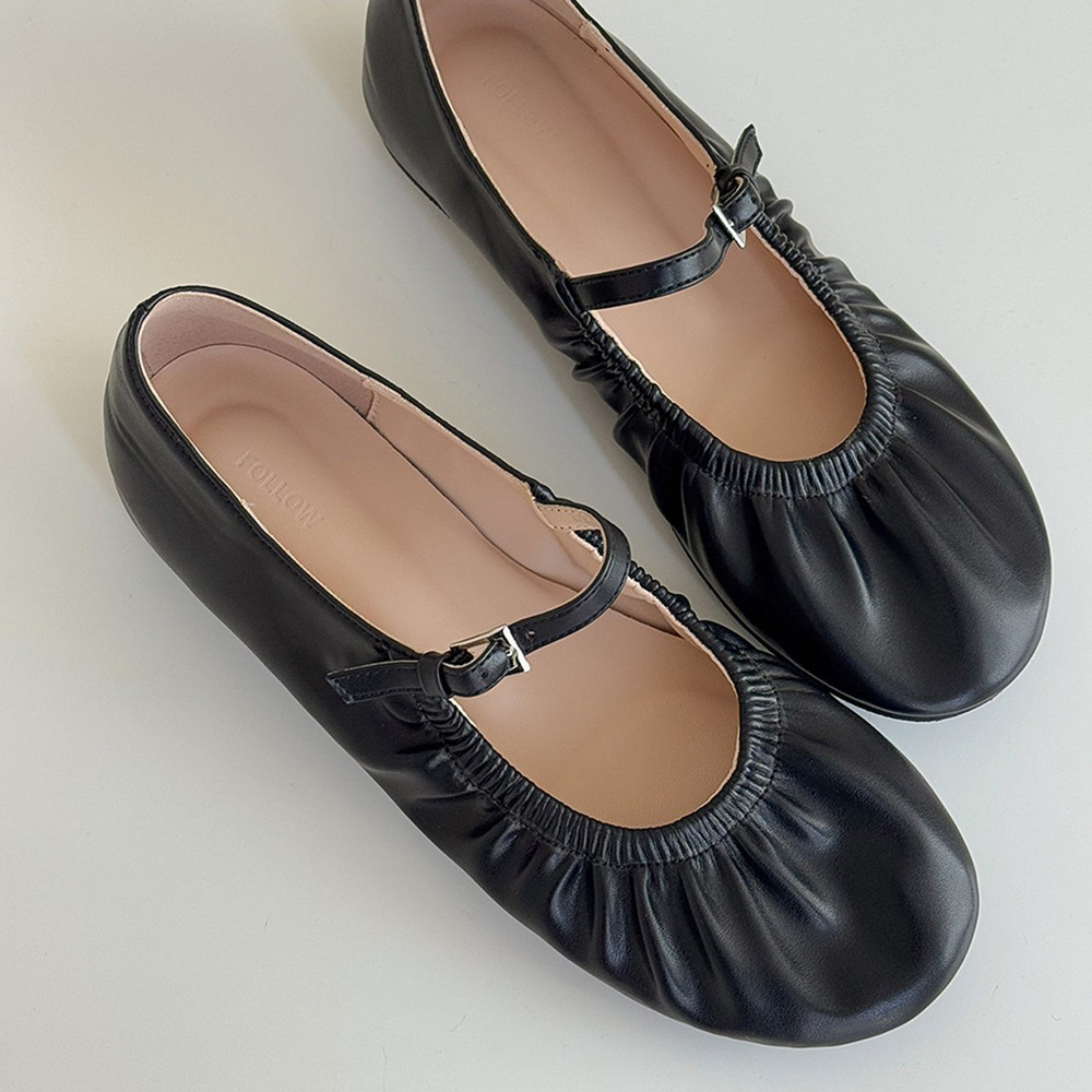 셔링 메리제인 라운드토 큐티 플랫슈즈