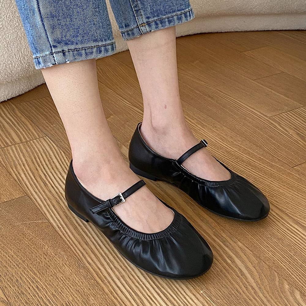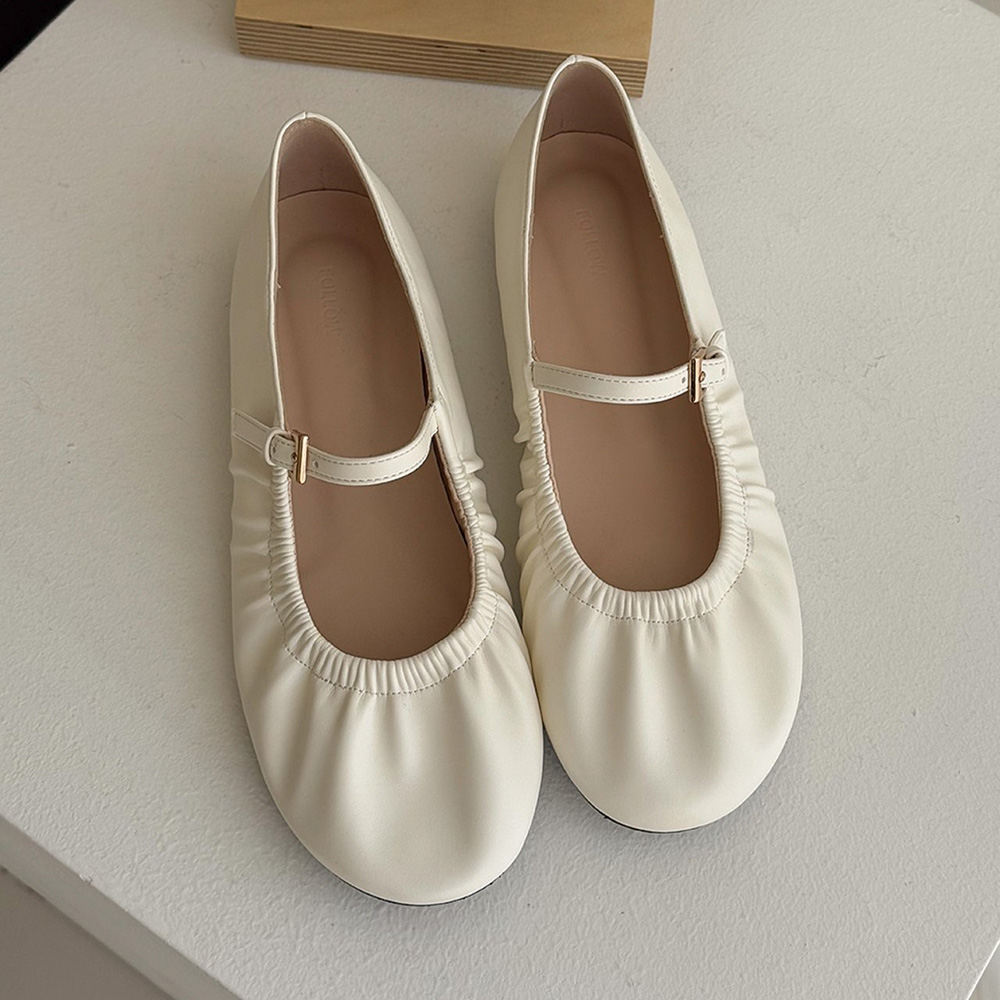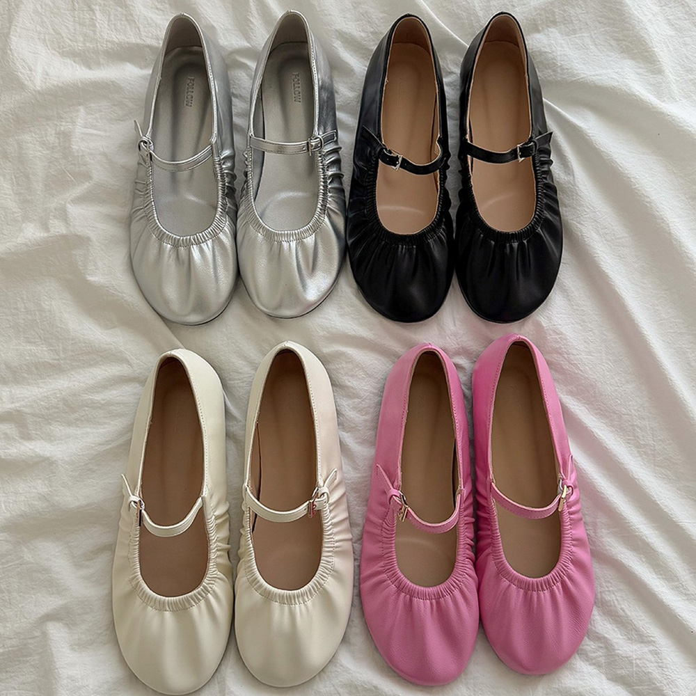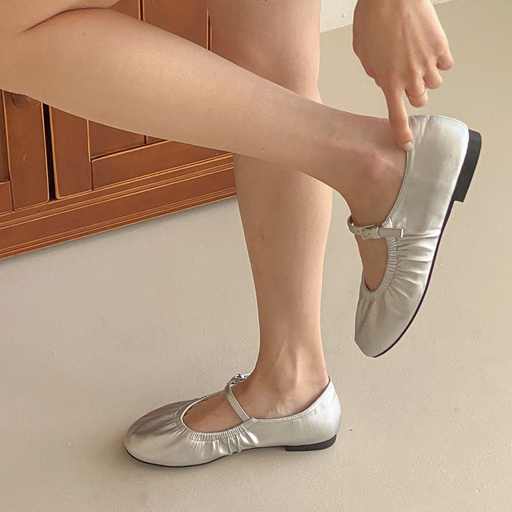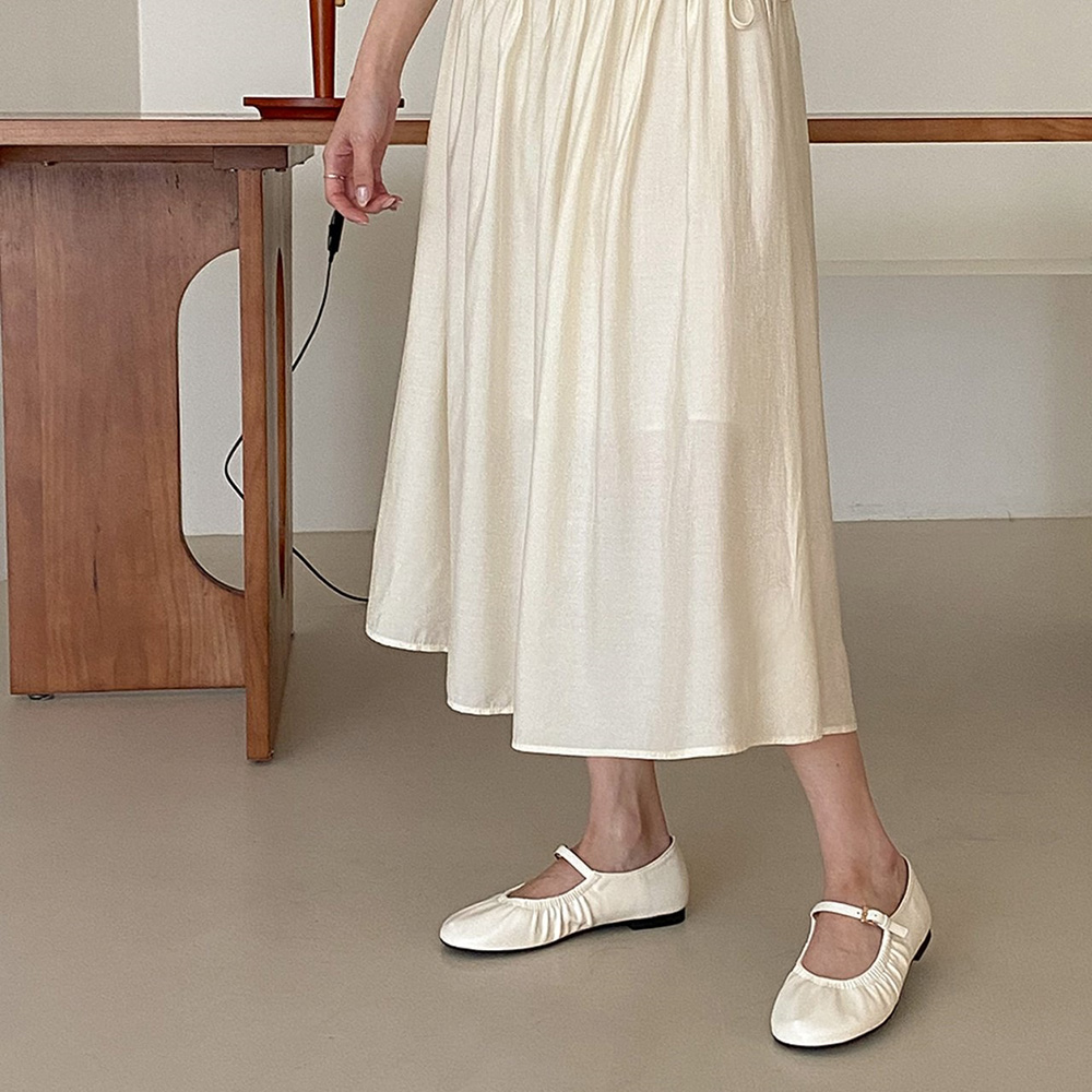 셔링 메리제인 라운드토 큐티 플랫슈즈