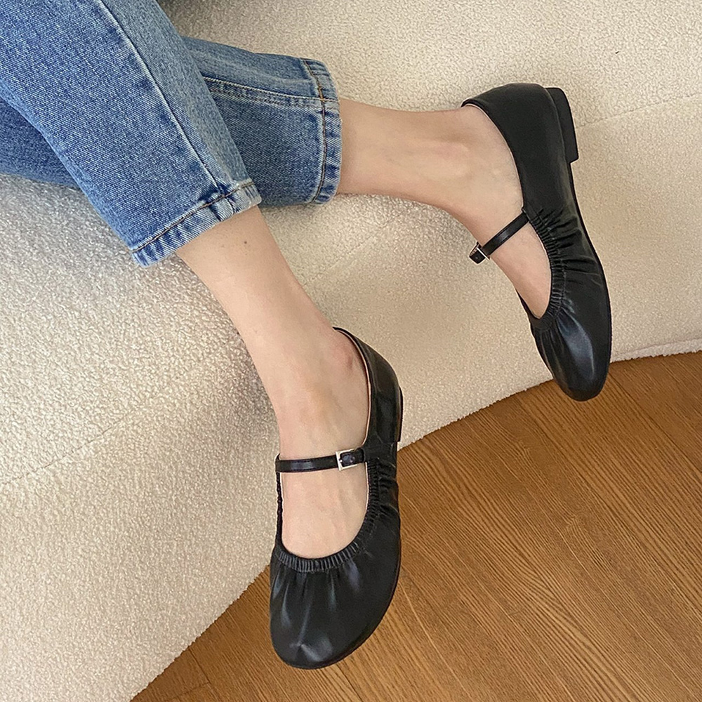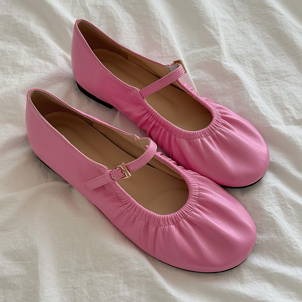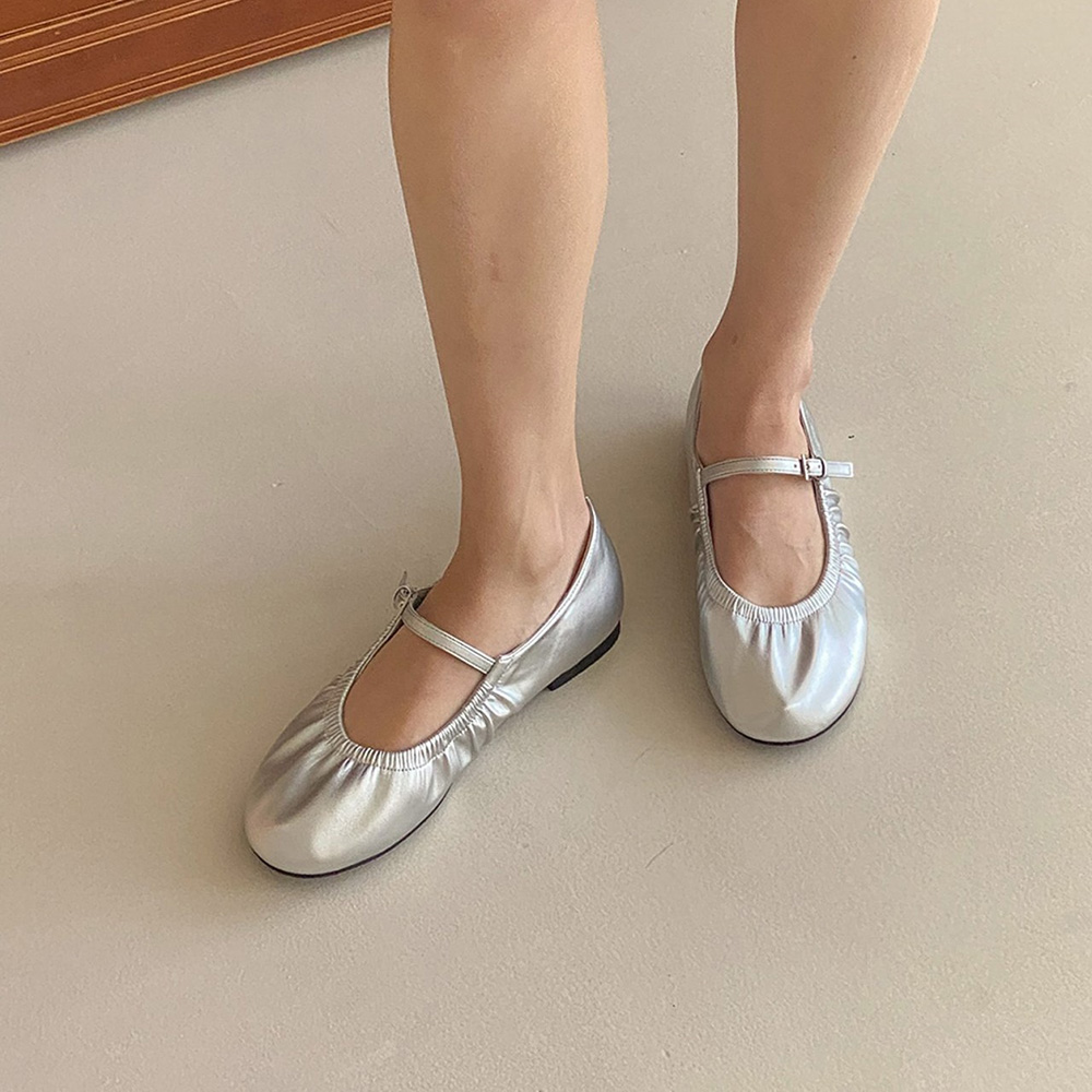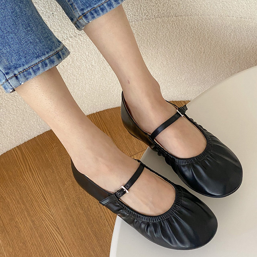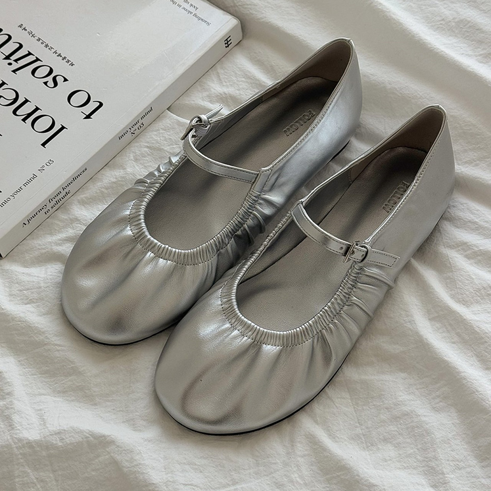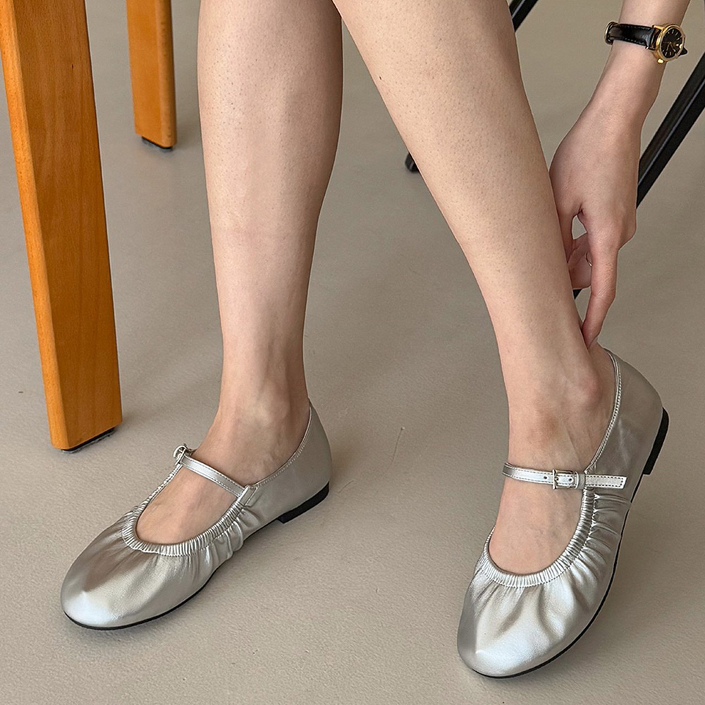 셔링 메리제인 라운드토 큐티 플랫슈즈