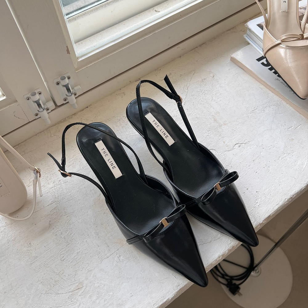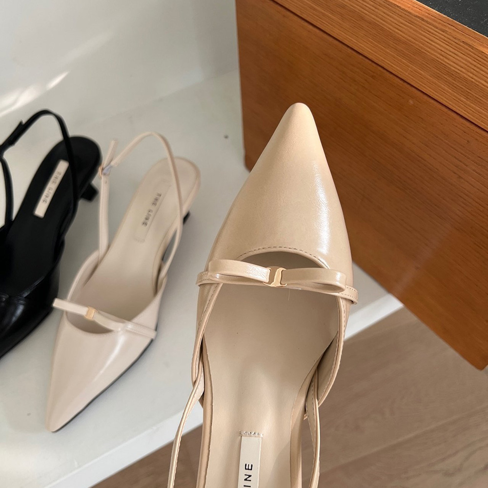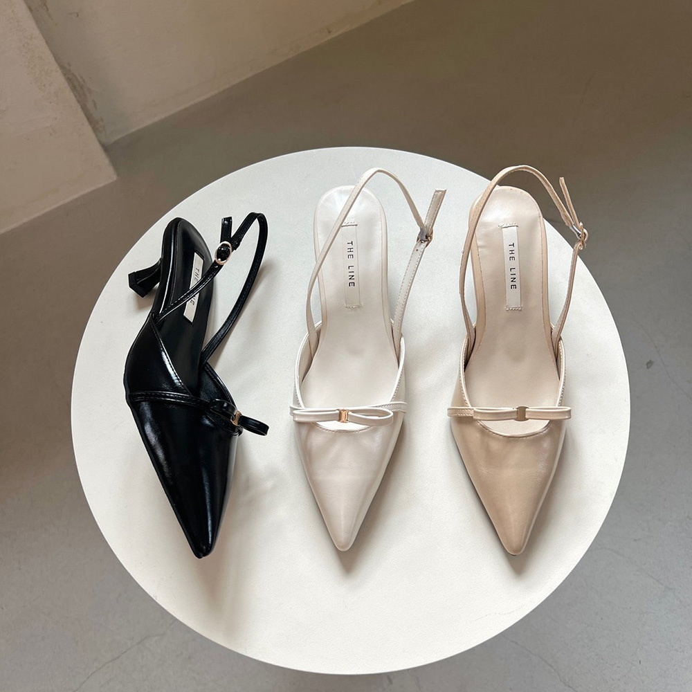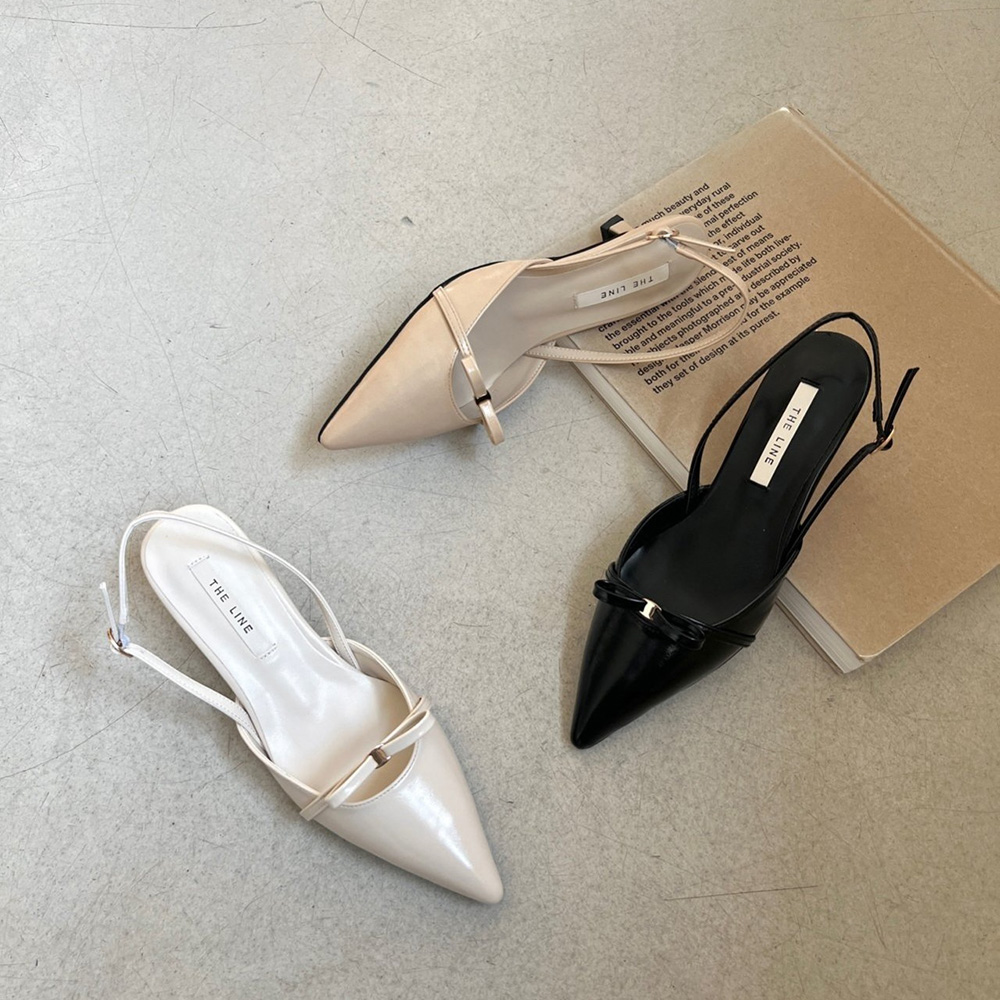 스틸레토 큐티 리본 스트랩 미들힐 슬링백힐