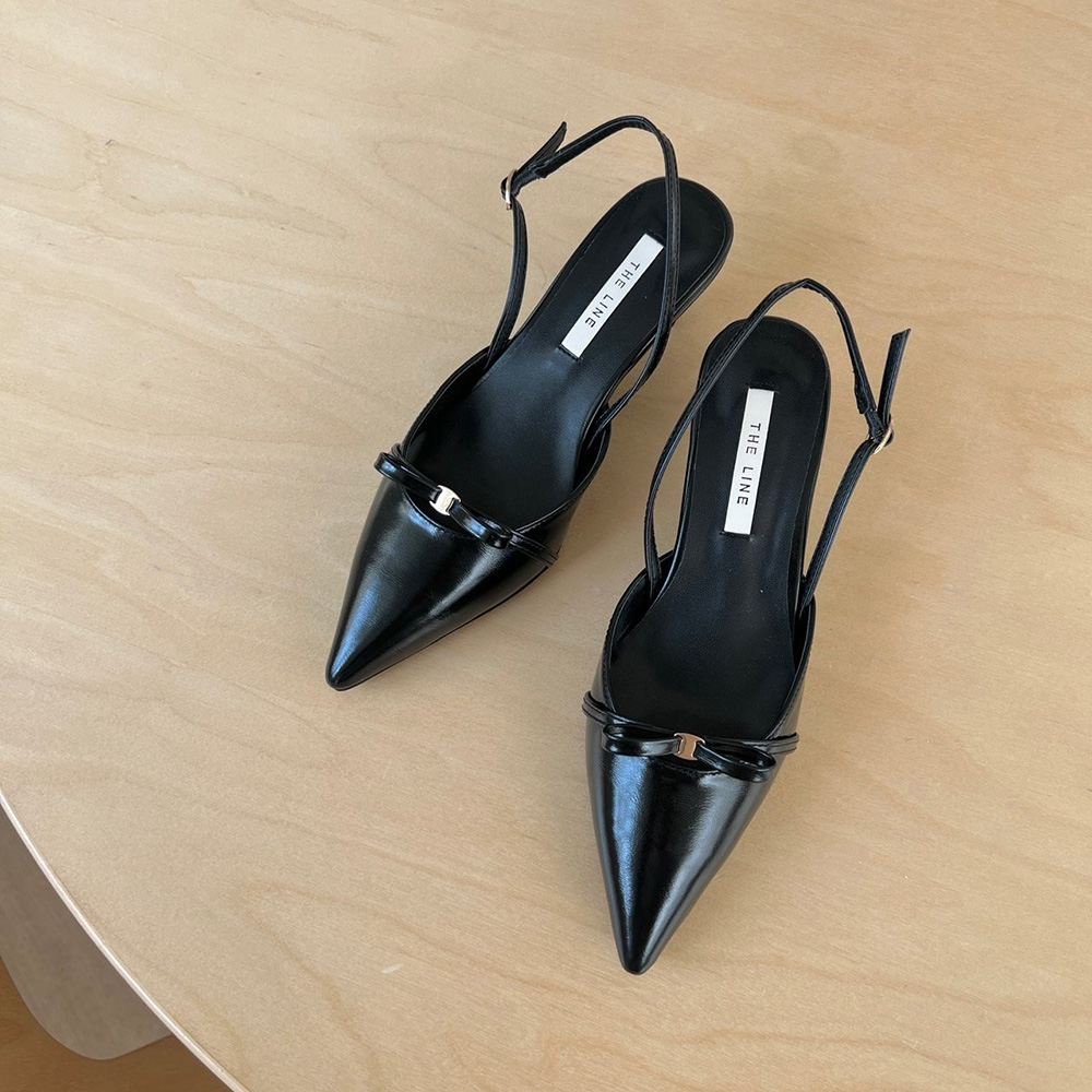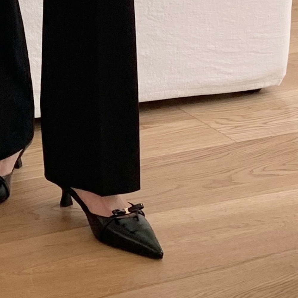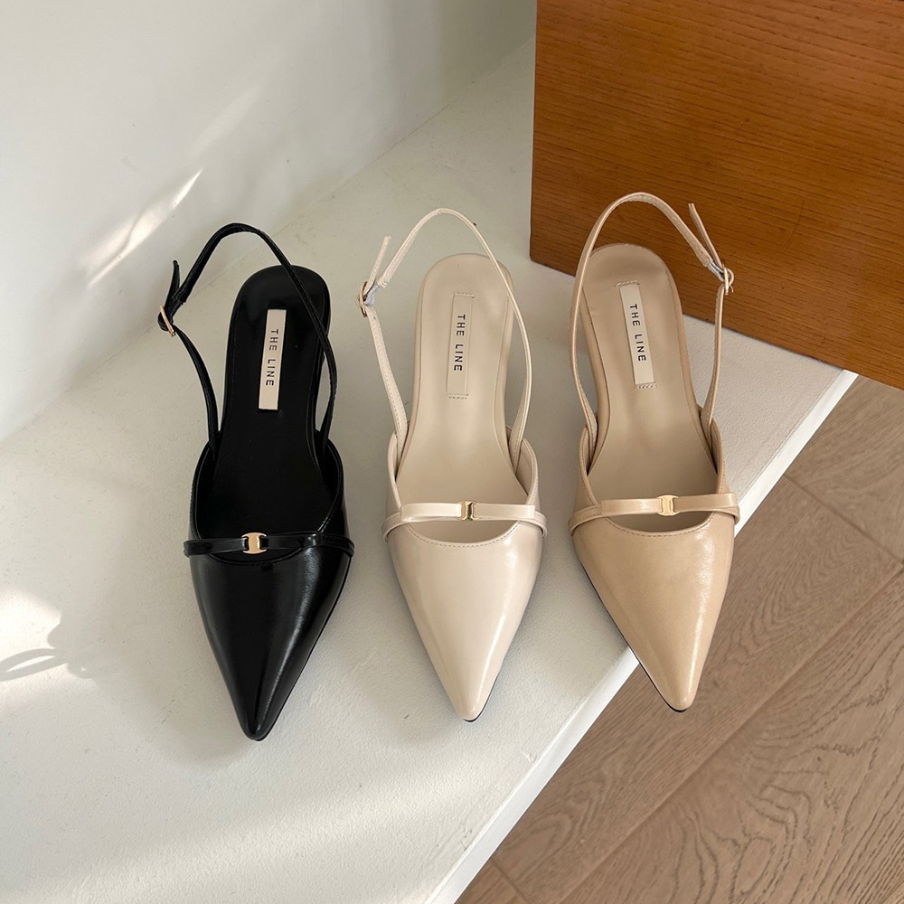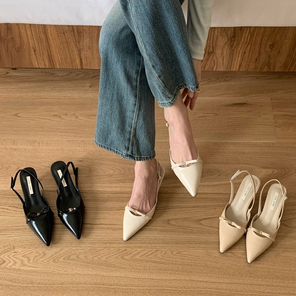 스틸레토 큐티 리본 스트랩 미들힐 슬링백힐