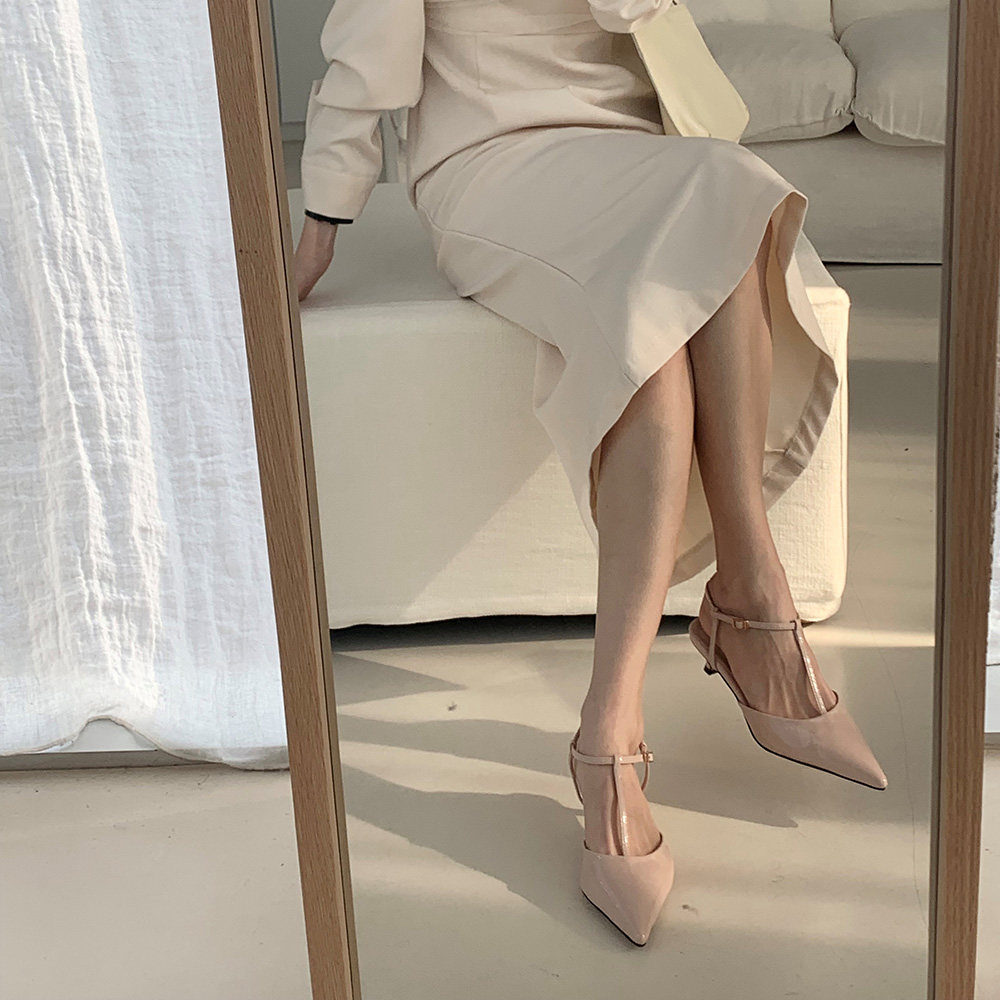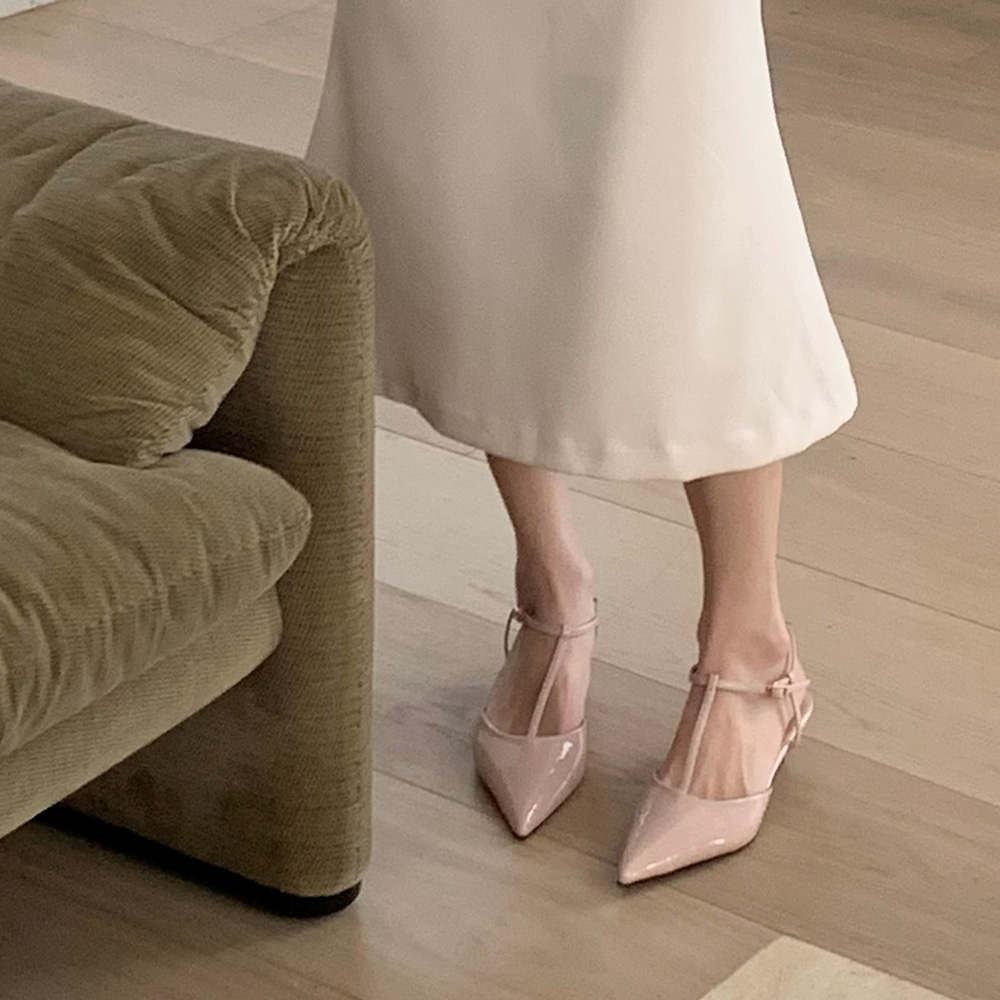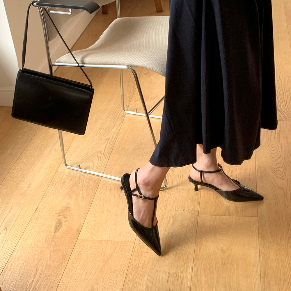 스틸레토 티 스트랩 메리제인 미들힐 슬링백힐
