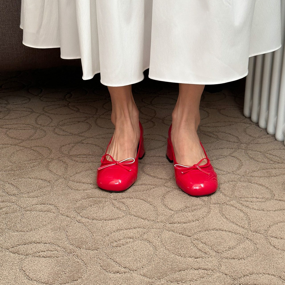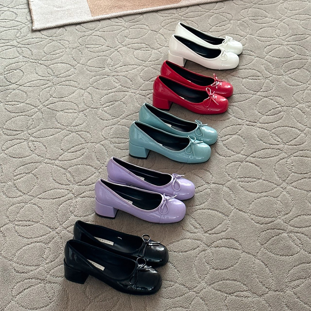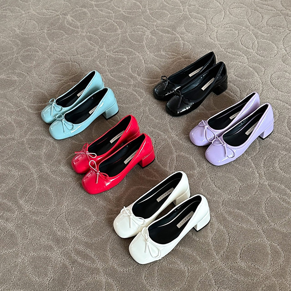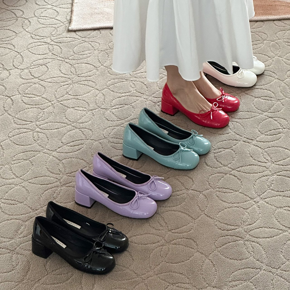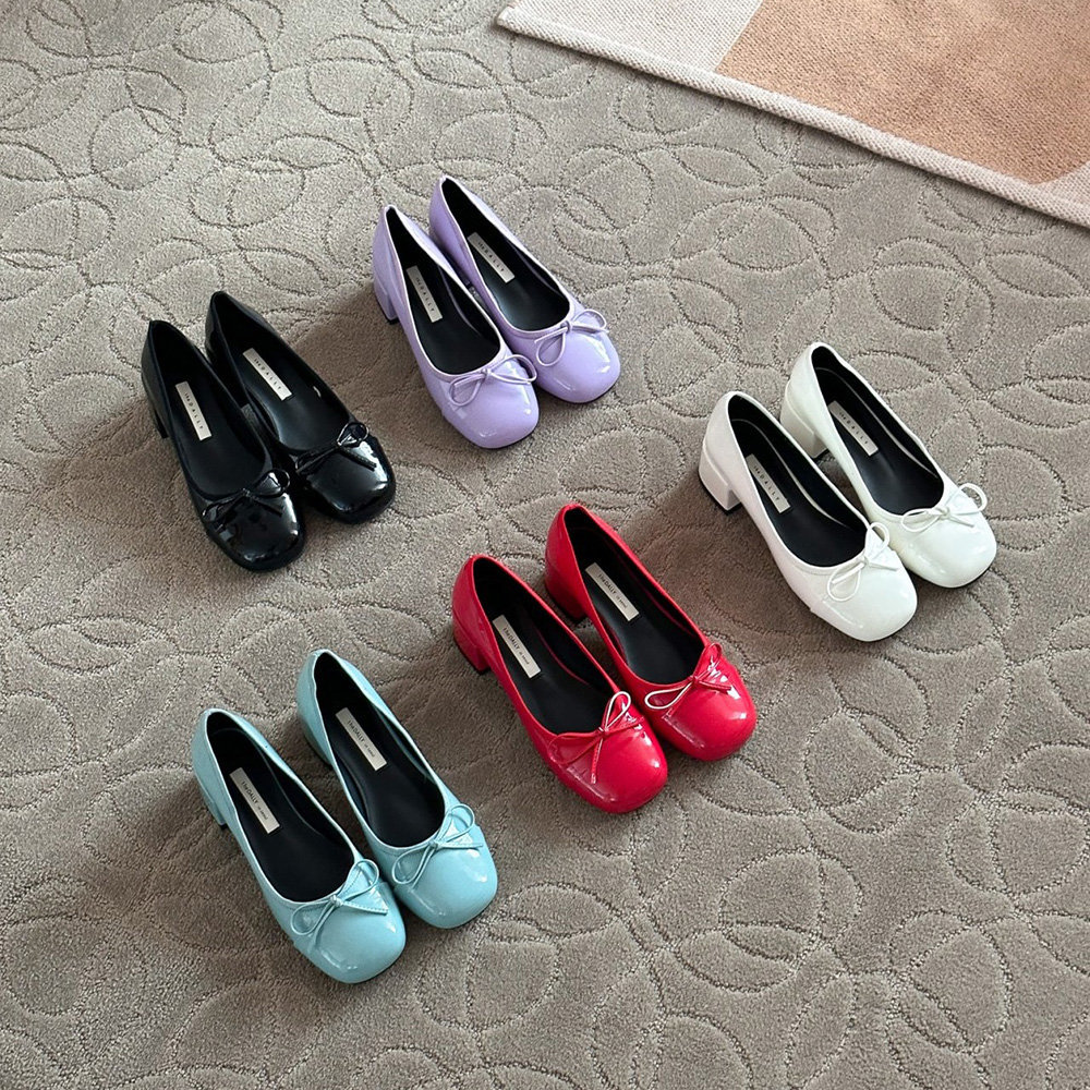 에나멜 리본 발편한구두로 귀여운
