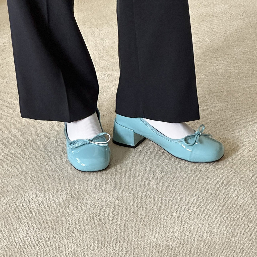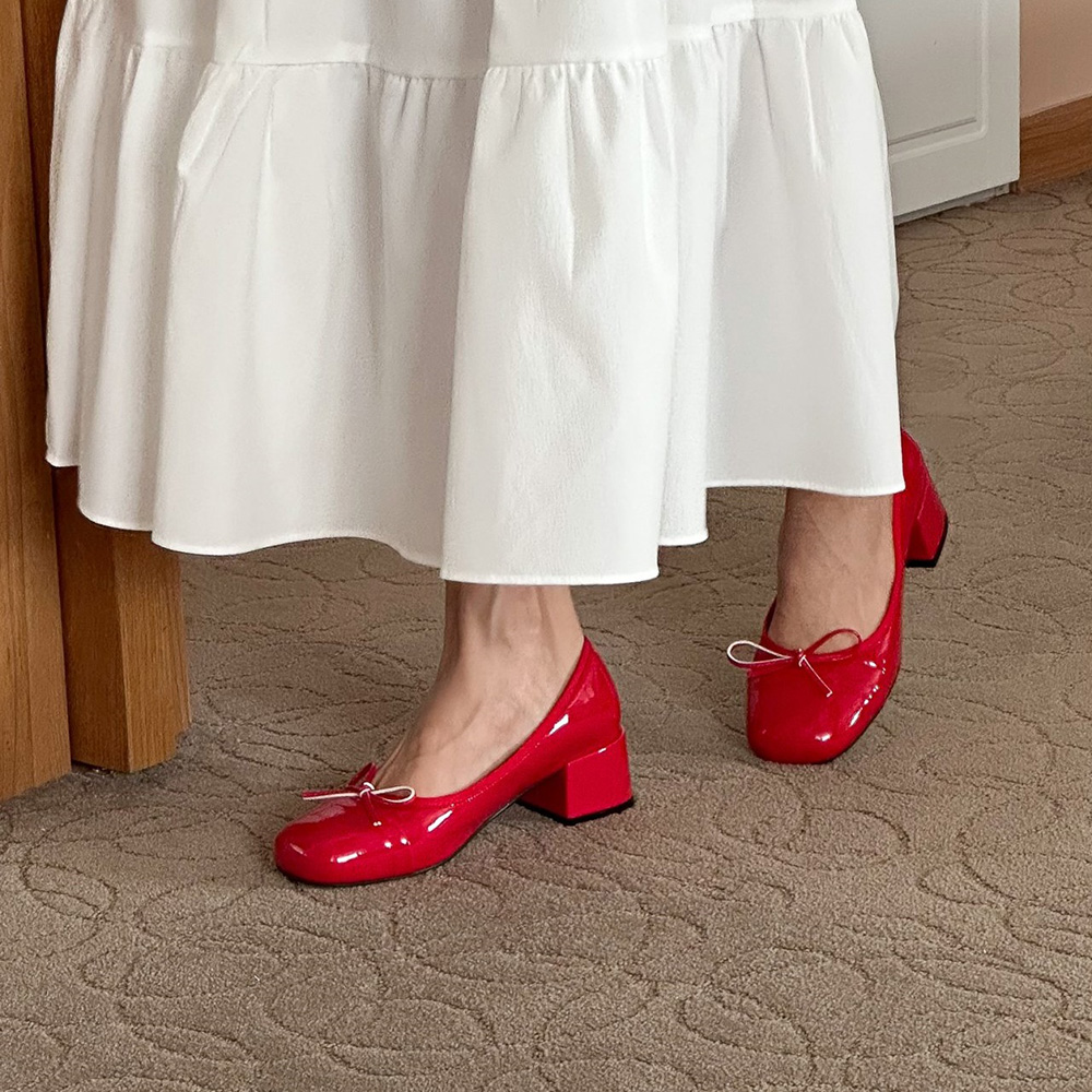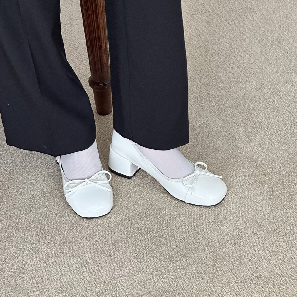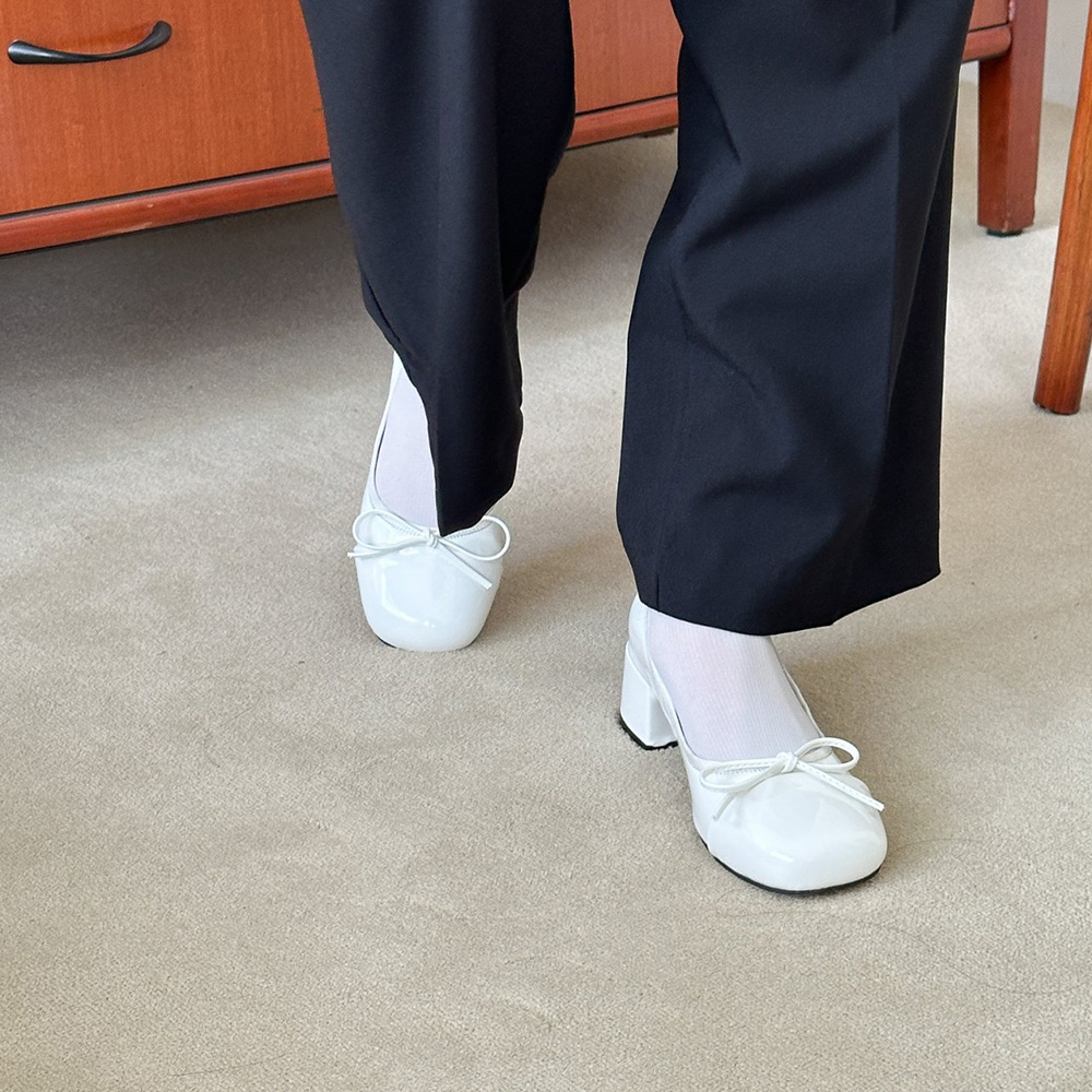 에나멜 리본 발편한구두로 귀여운