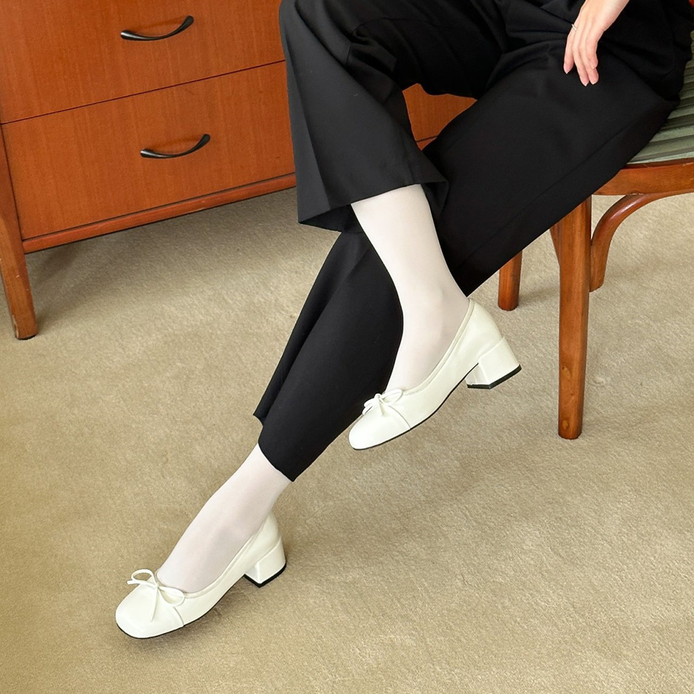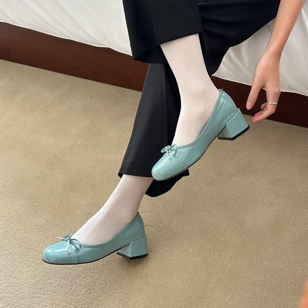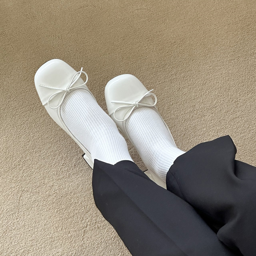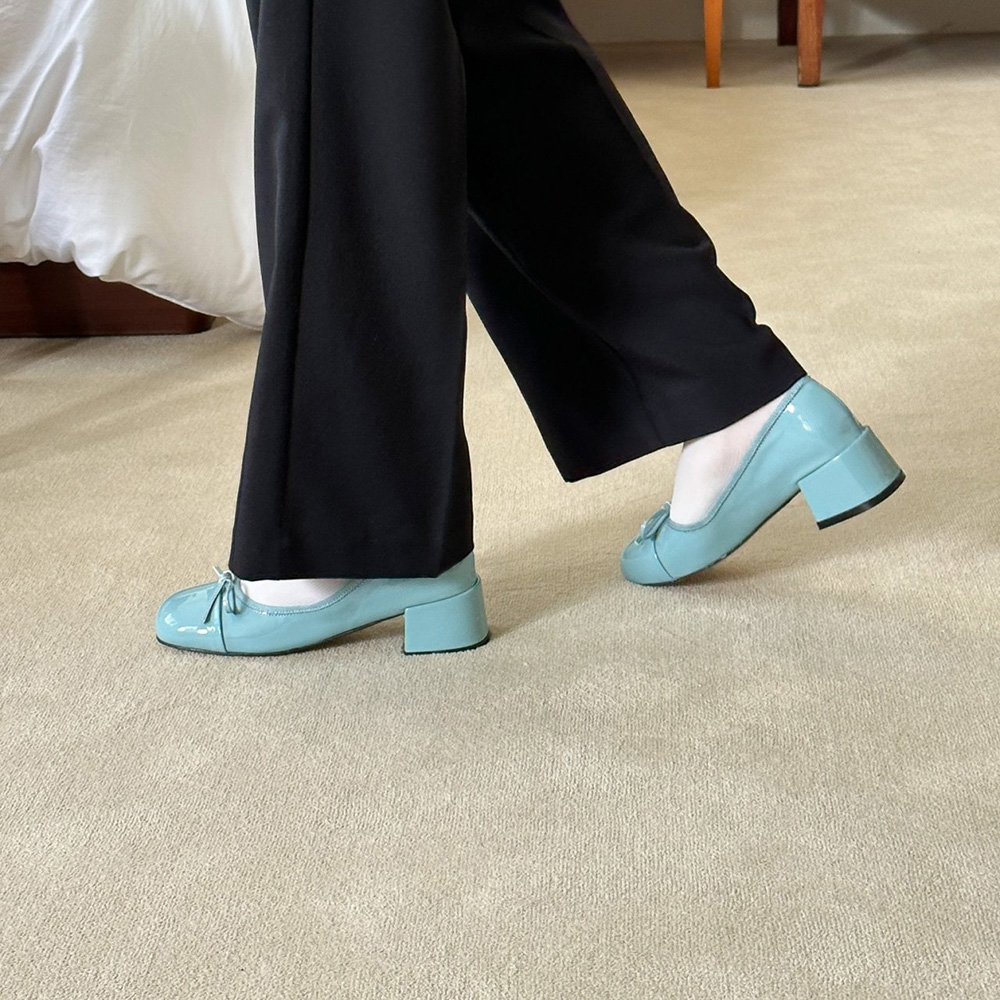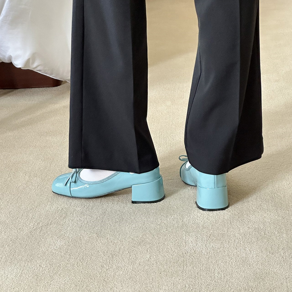 에나멜 리본 발편한구두로 귀여운