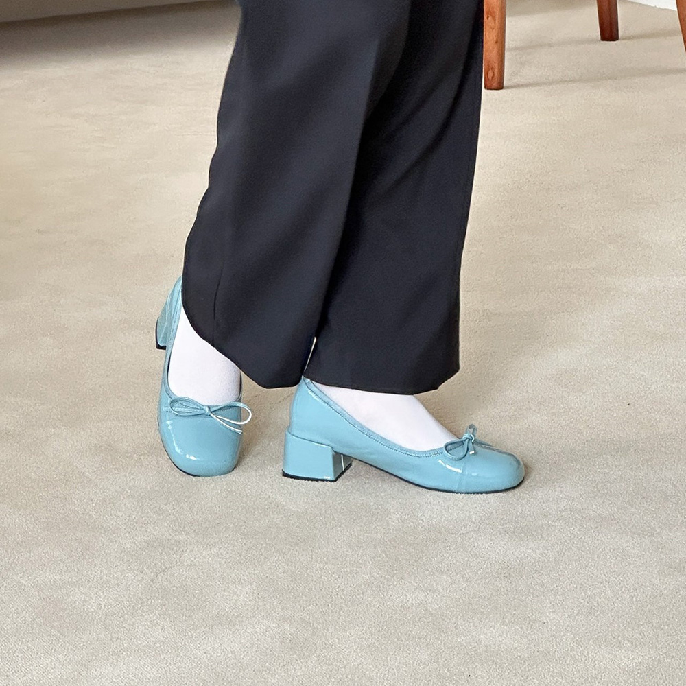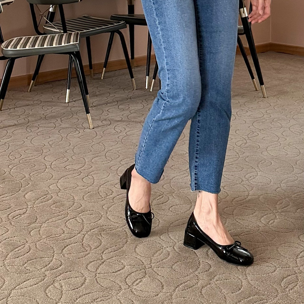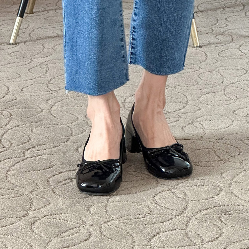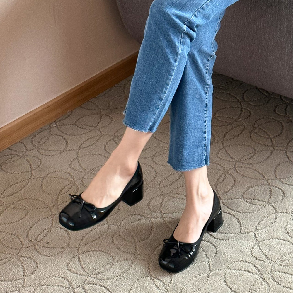 에나멜 리본 발편한구두 미들힐 펌프스힐