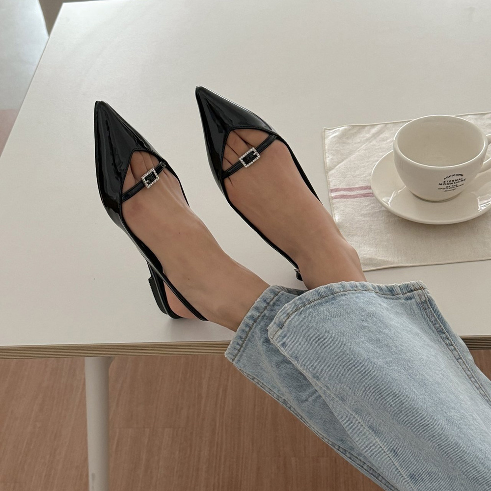 발등 큐빅 버클 스트랩이 세련된 감각을 더하며