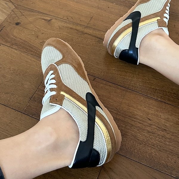 메쉬 가죽스니커즈는 편안한 착화감과