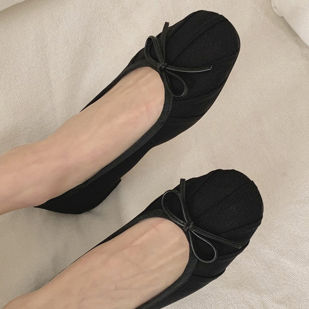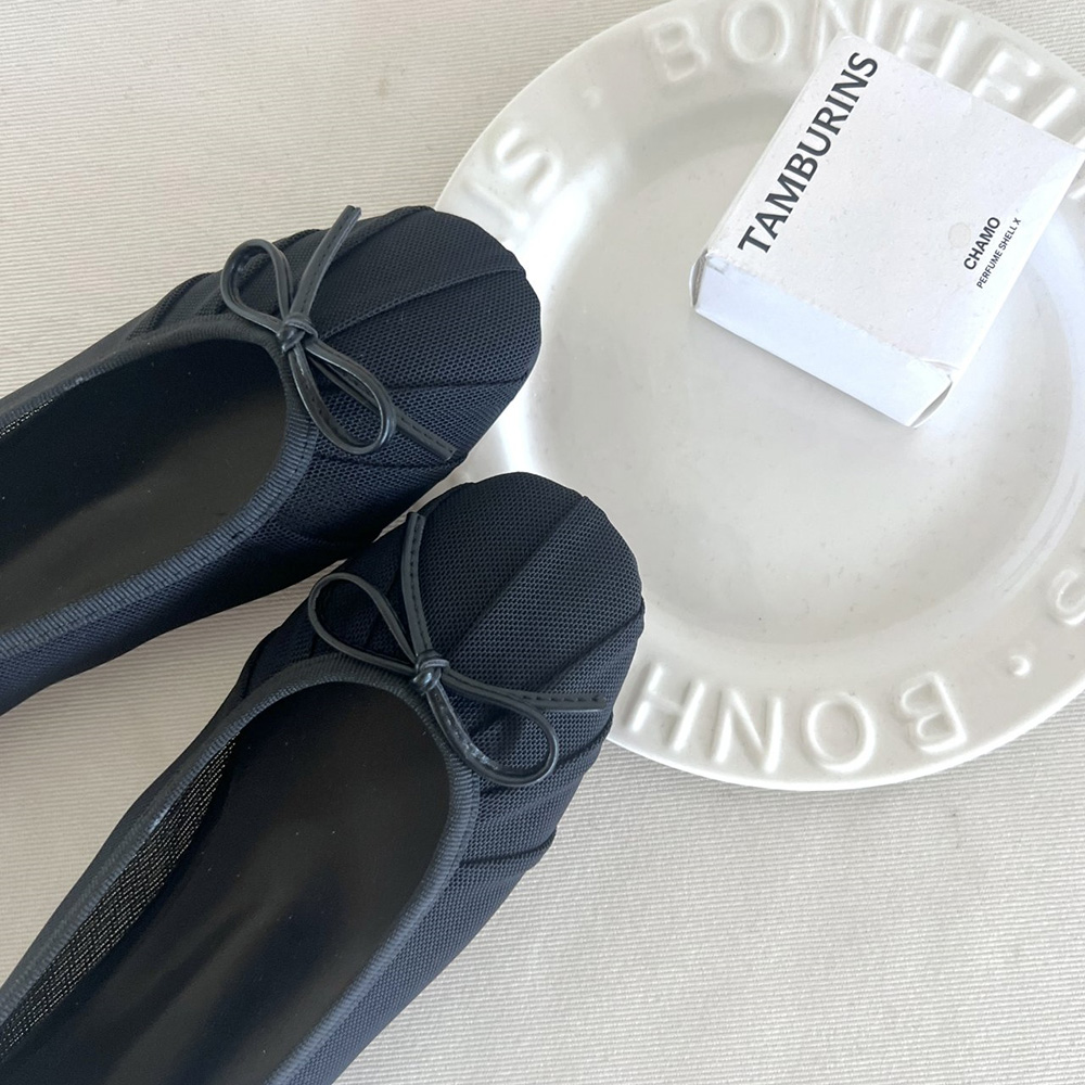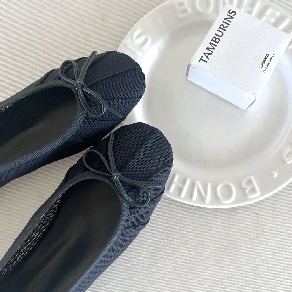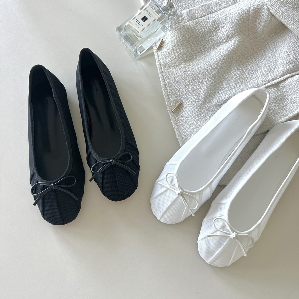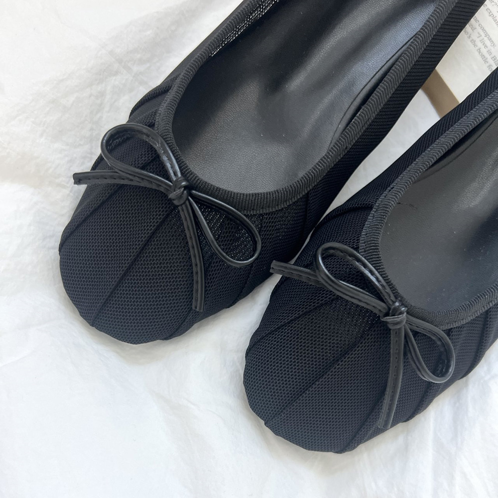 메쉬 망사 시스루 리본 셔링 쿠션플랫 여자 플랫슈즈