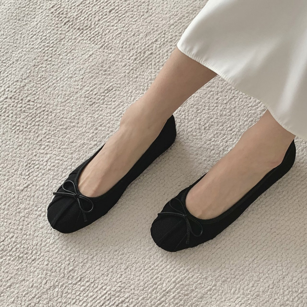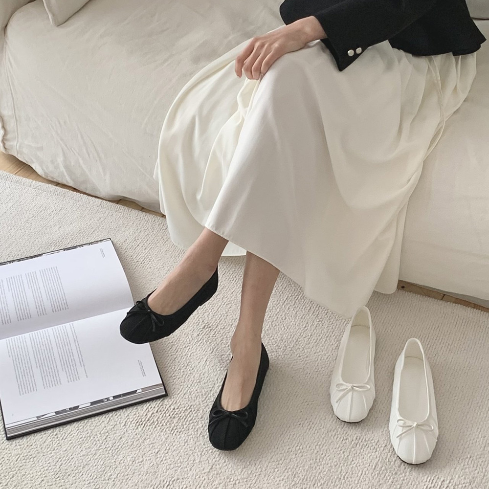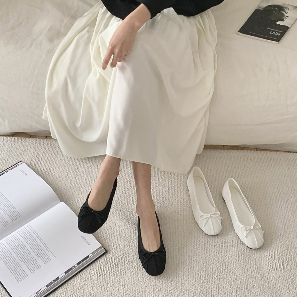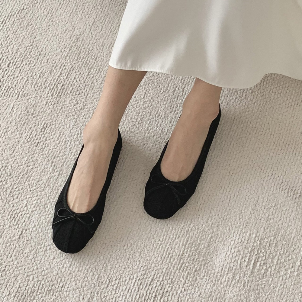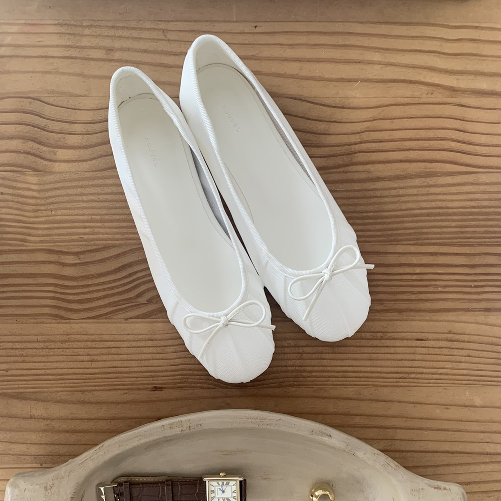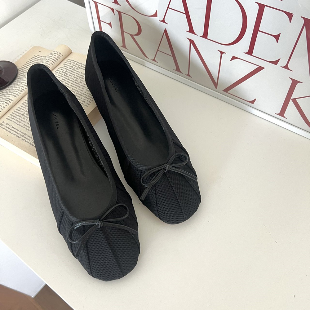 메쉬 망사 시스루 리본 셔링 쿠션플랫 여자 플랫슈즈