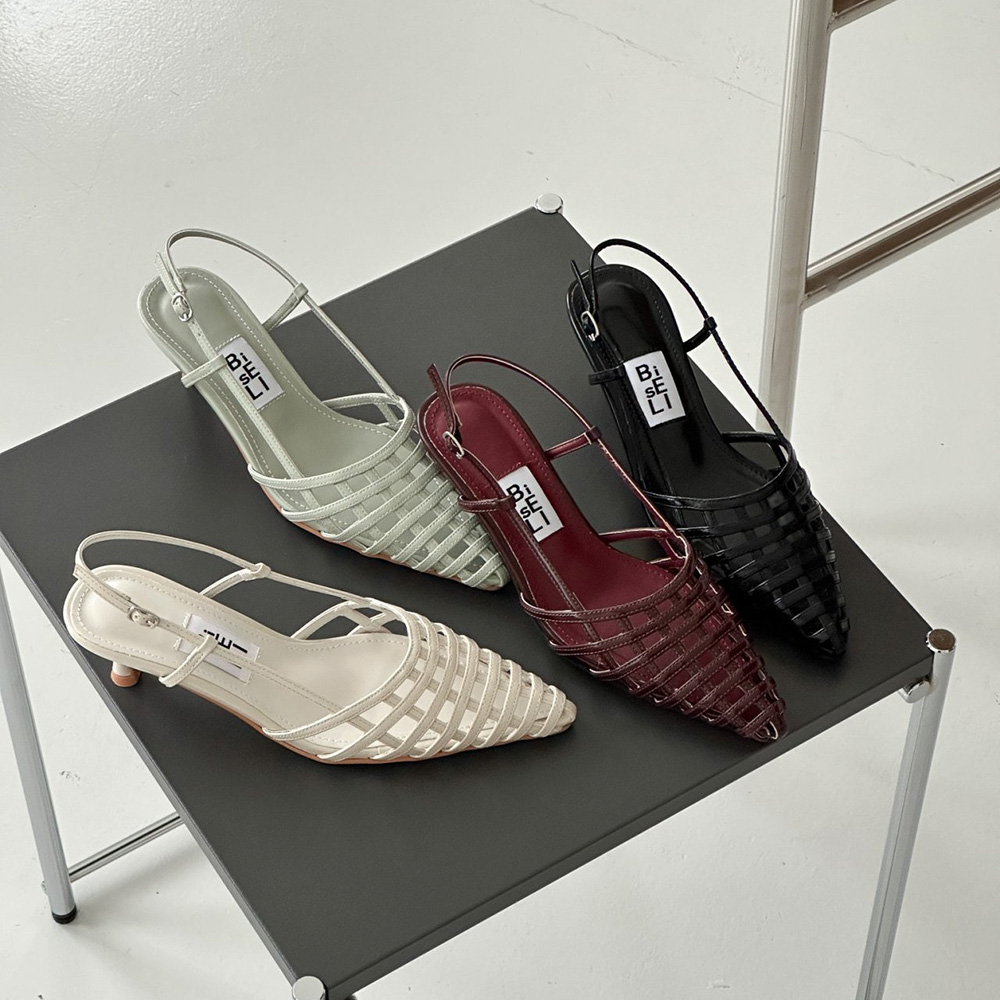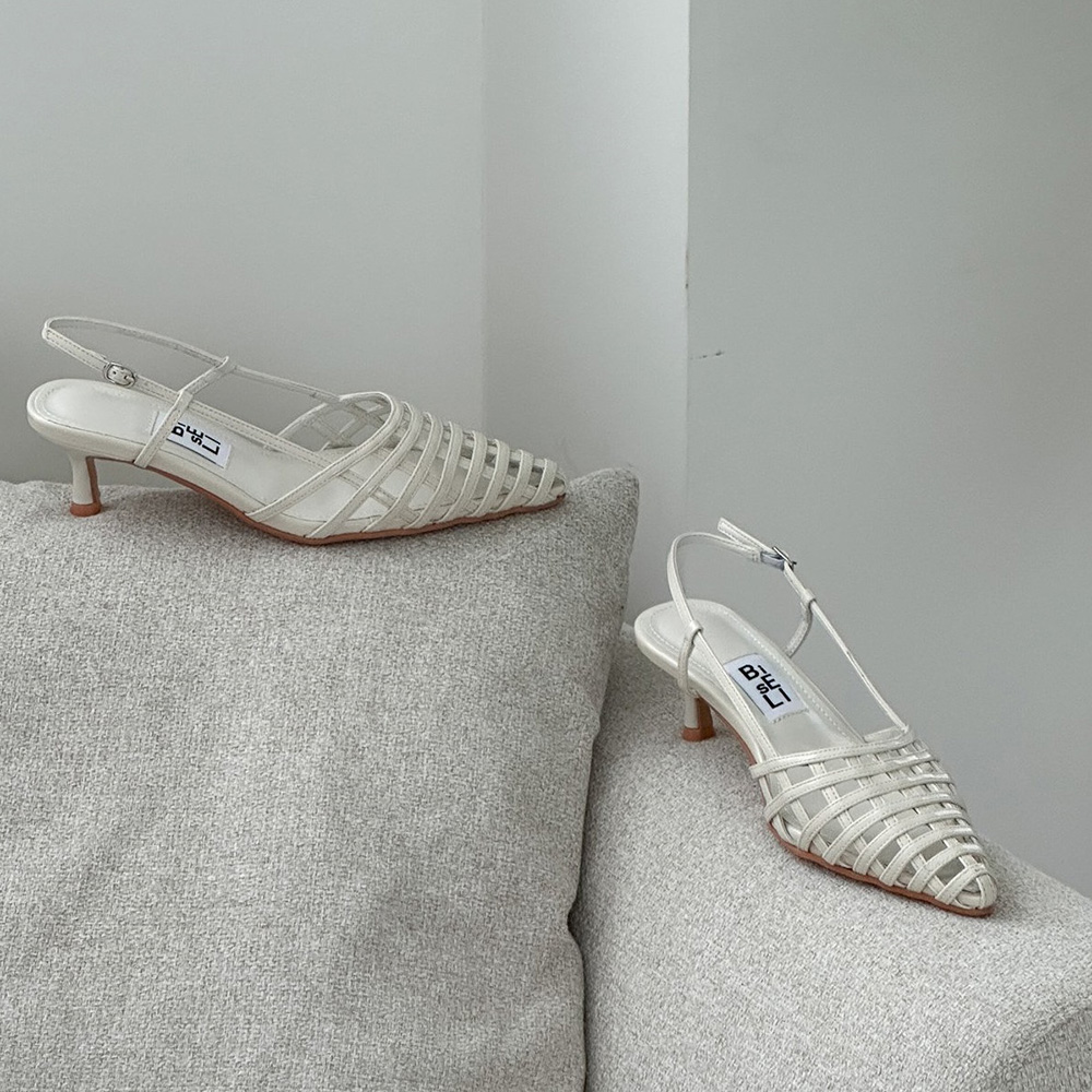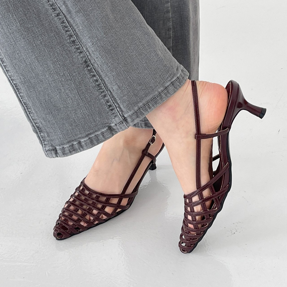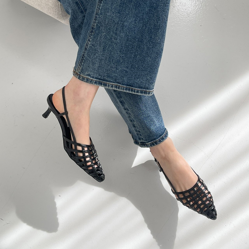 여름 망사 미들힐 네트 여성 스틸레토힐 슬링백힐