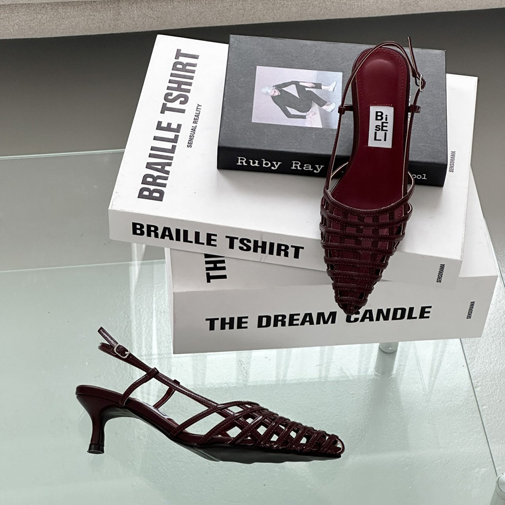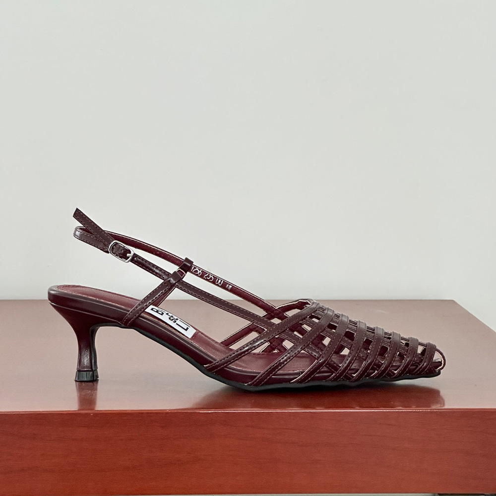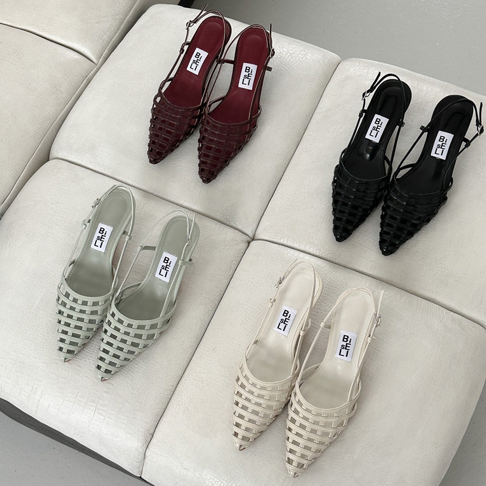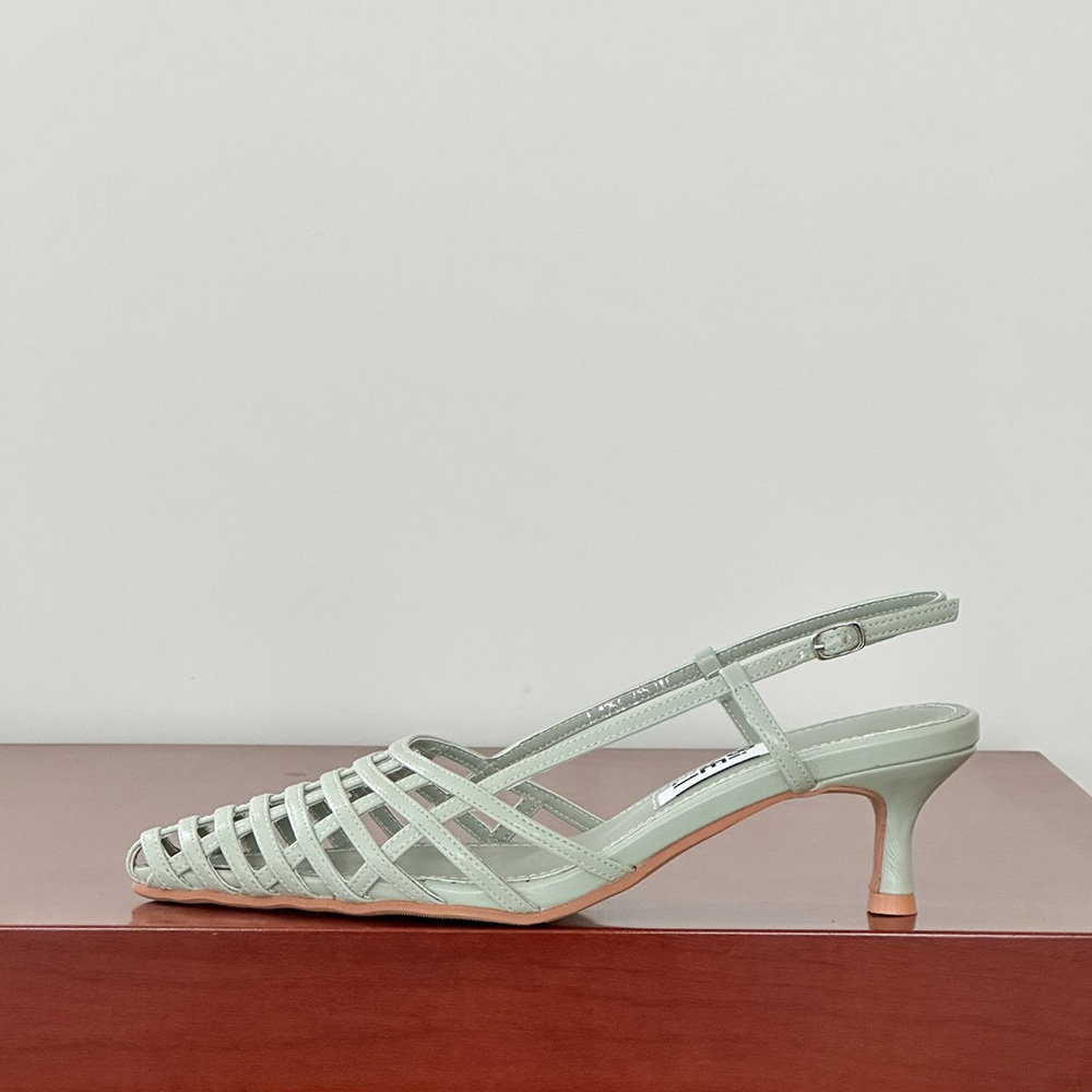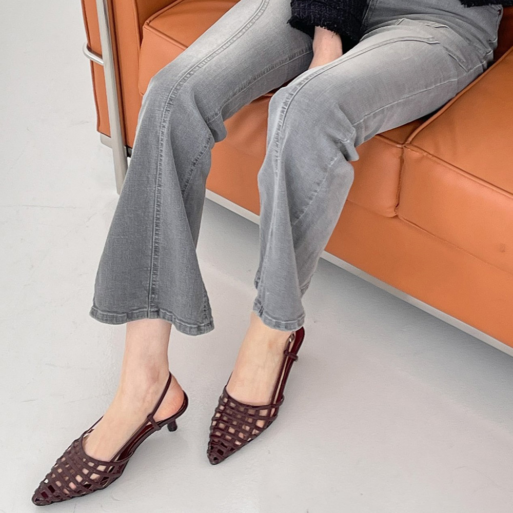 여름 망사 미들힐 네트 여성 스틸레토힐 슬링백힐
