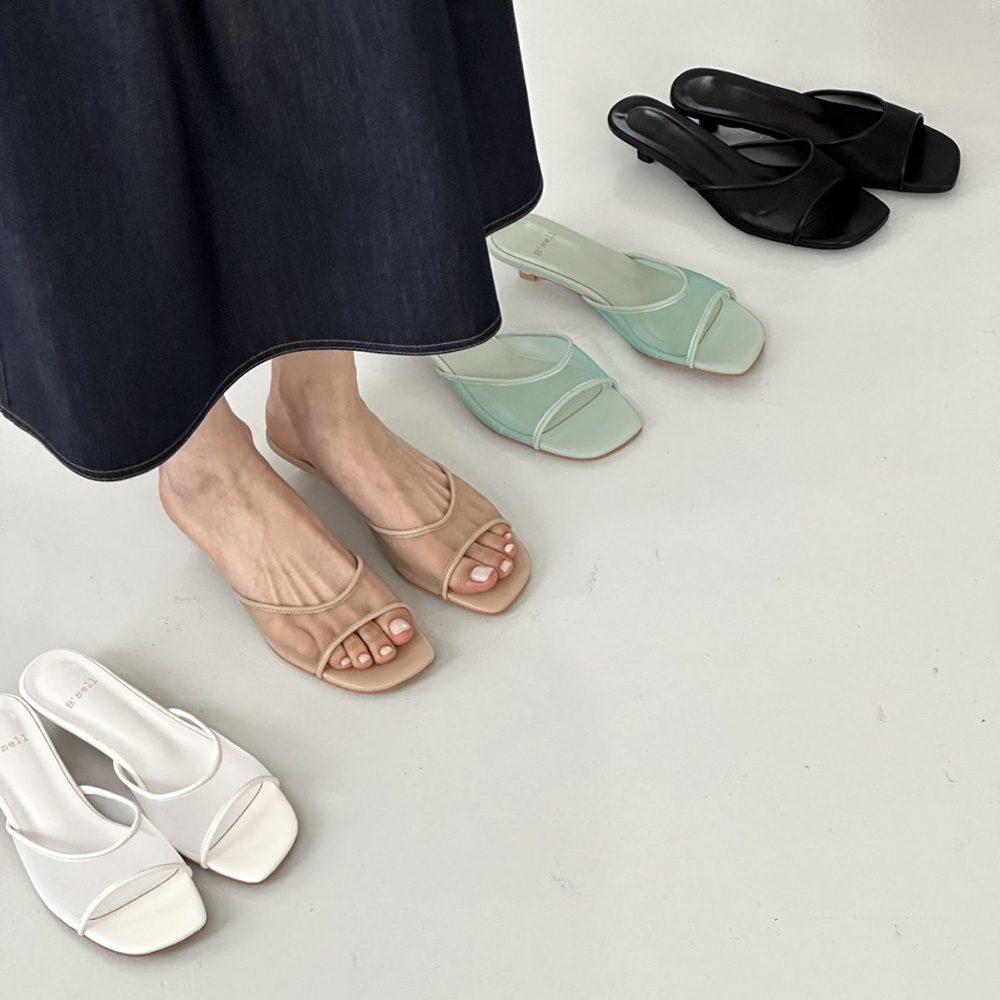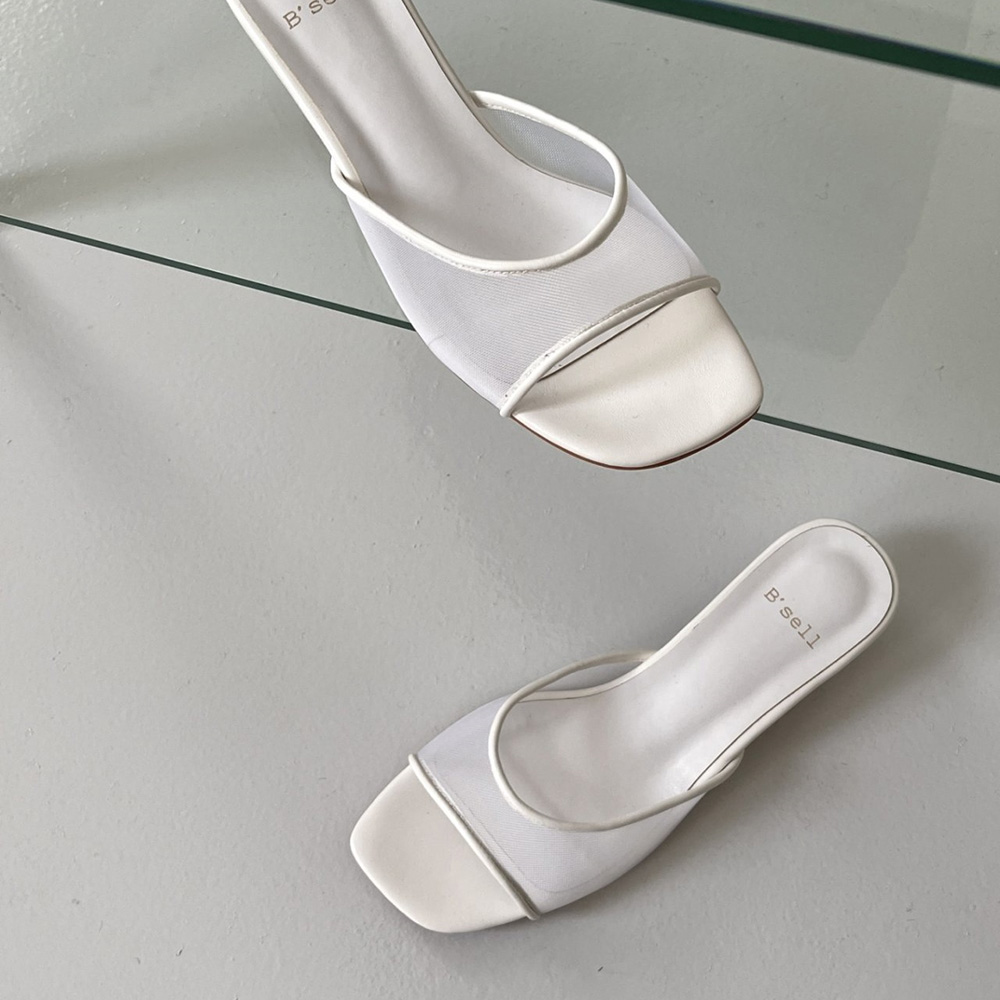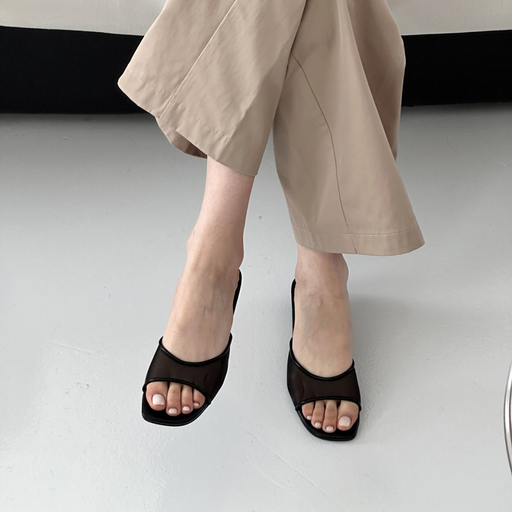트렌디한 시스루 스타일의 뮬 슬리퍼힐입니다