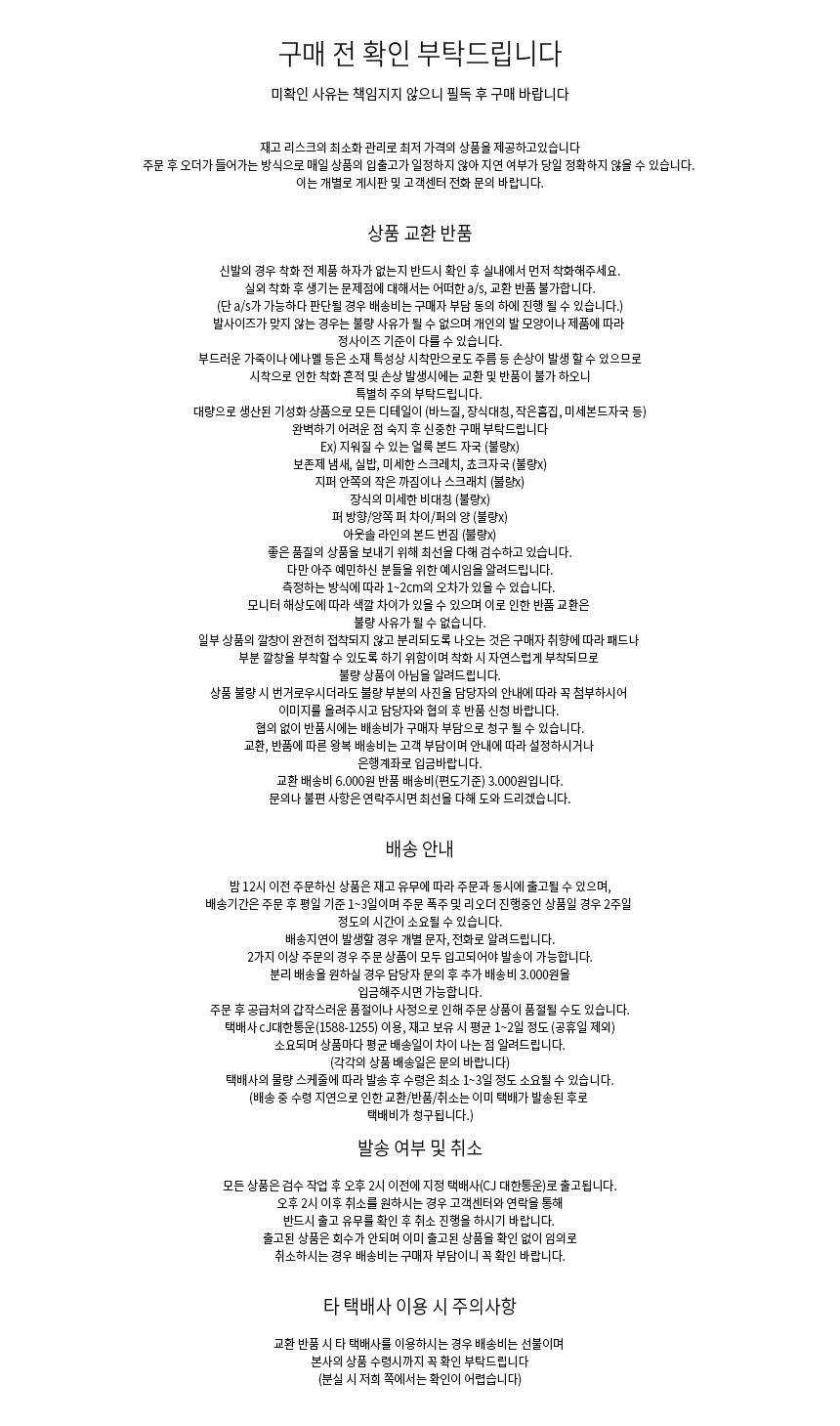 | 품질보증기준 | 공정거래위원회 고시 소비자분쟁해결기준에 따릅니다. |