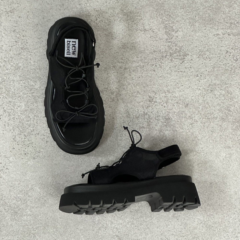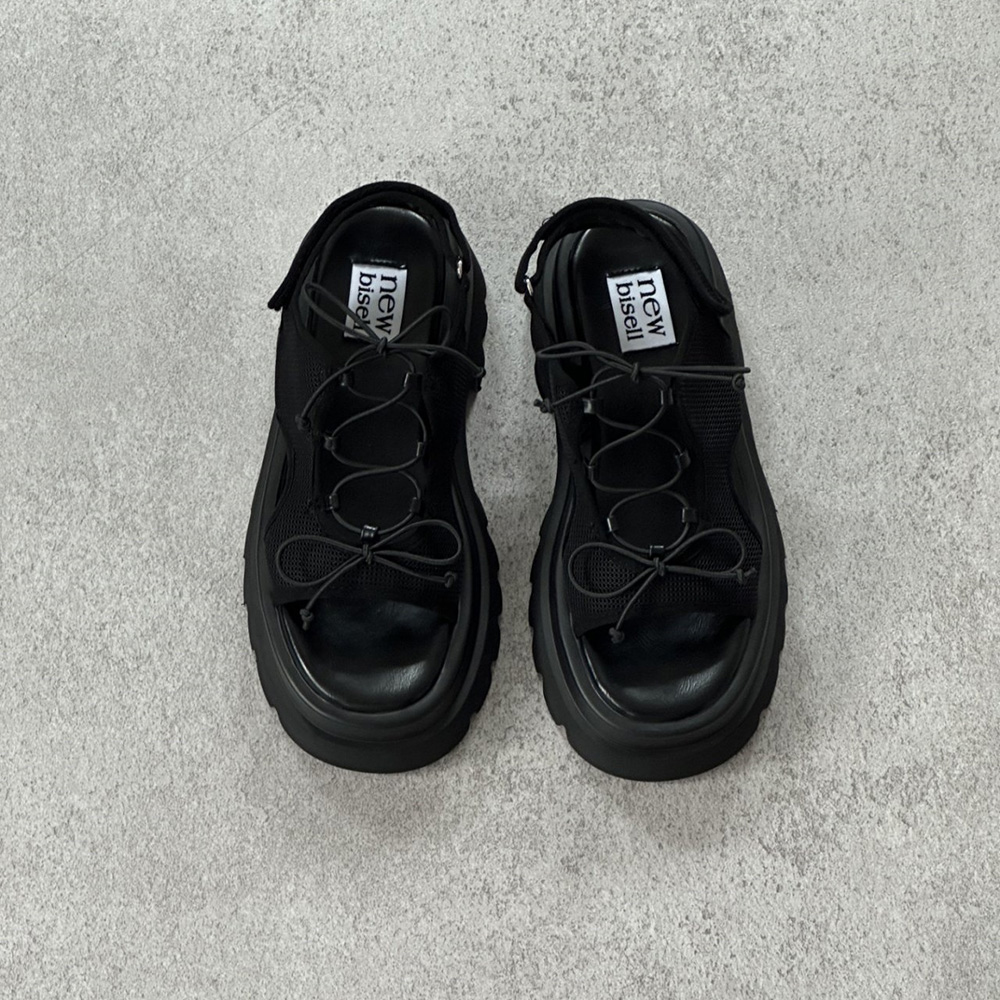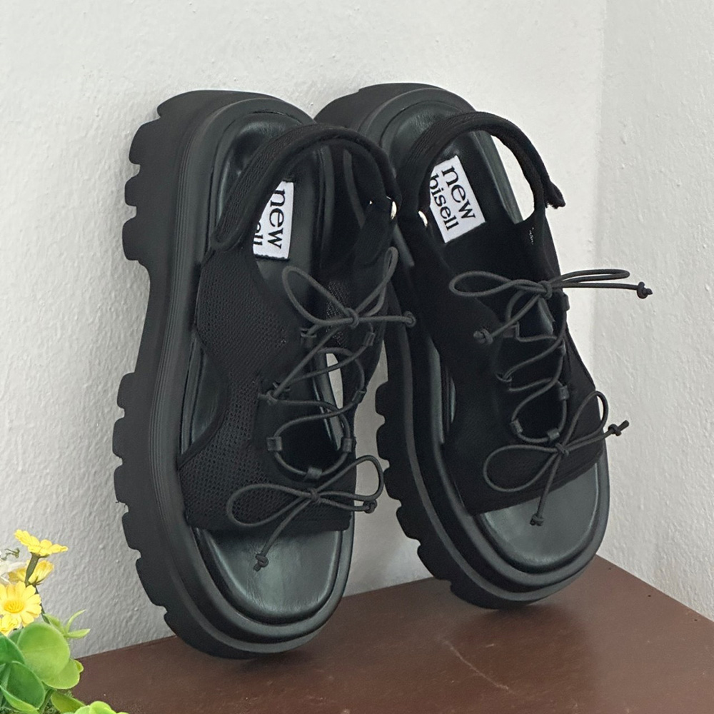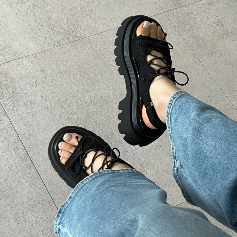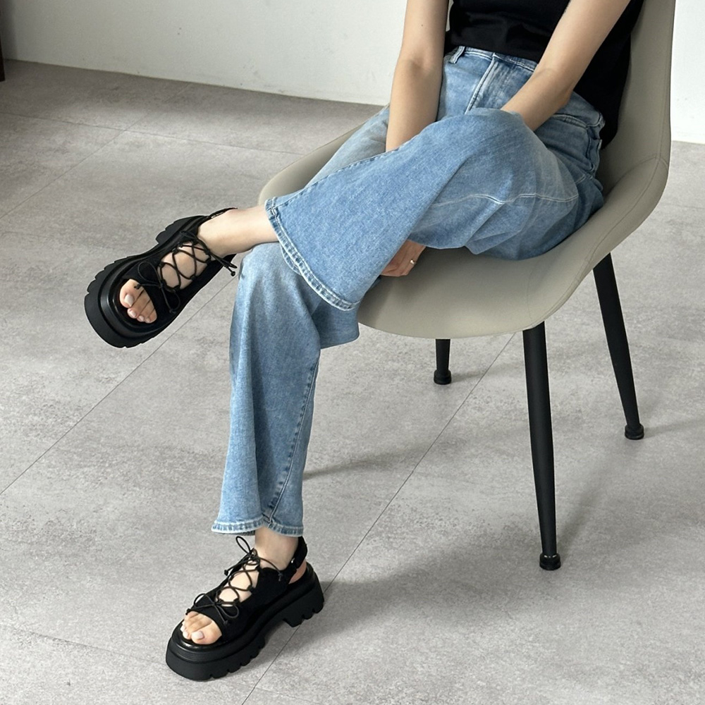 메쉬 시스루 스트랩 여름 미들힐 통굽 청키굽 여자 샌들
