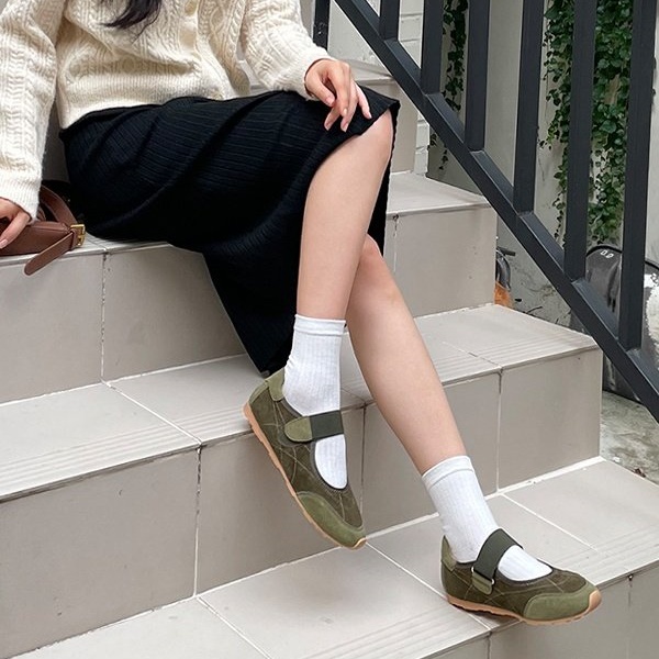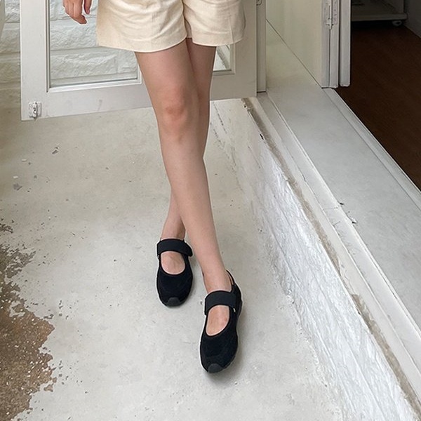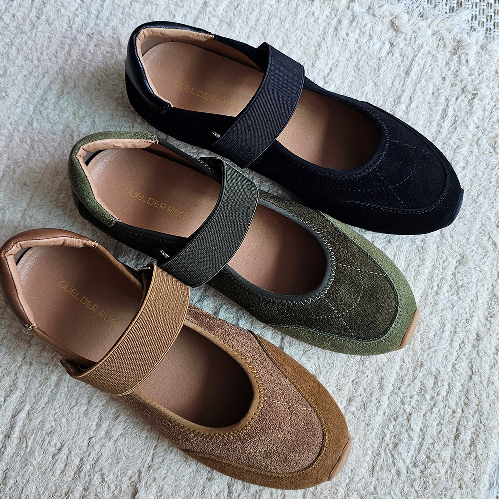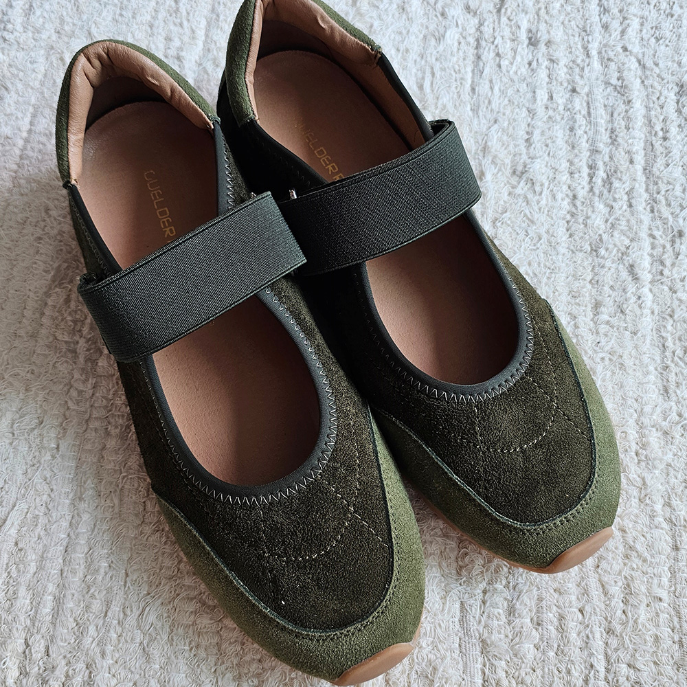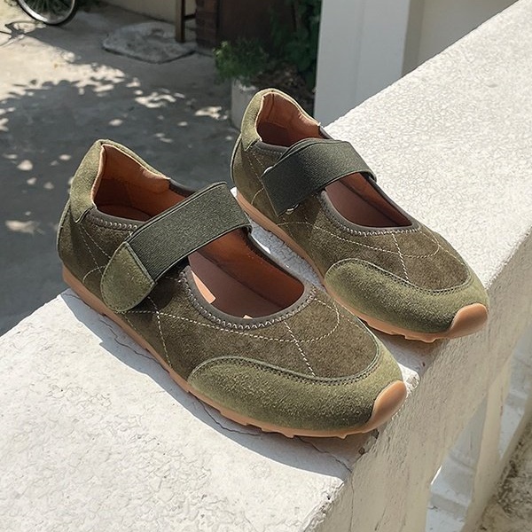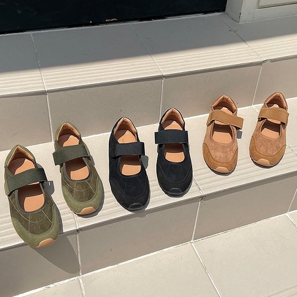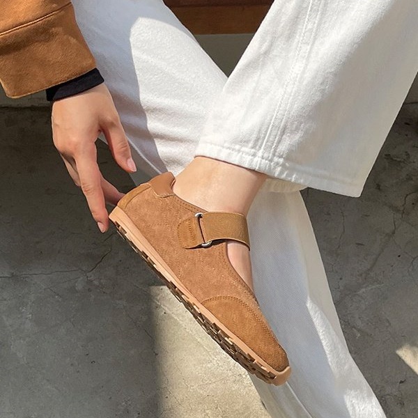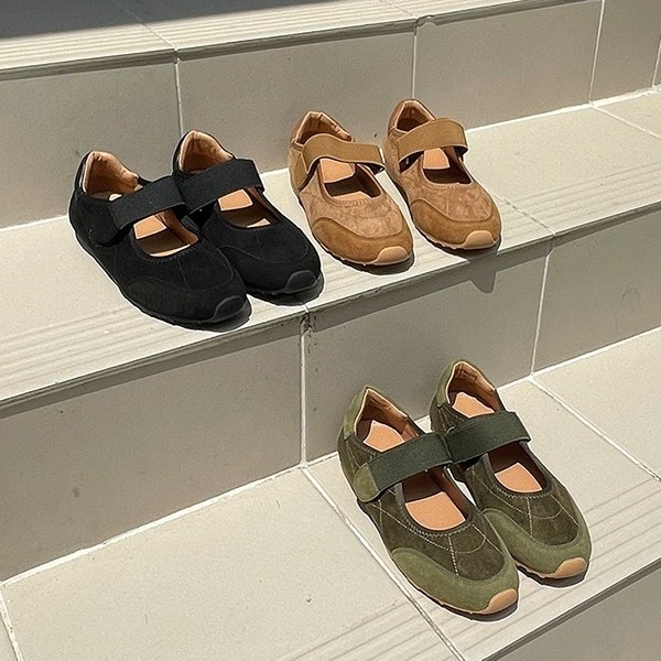 천연 소가죽 스웨이드 밴딩 벨크로 메리제인운동화 샌들스니커즈