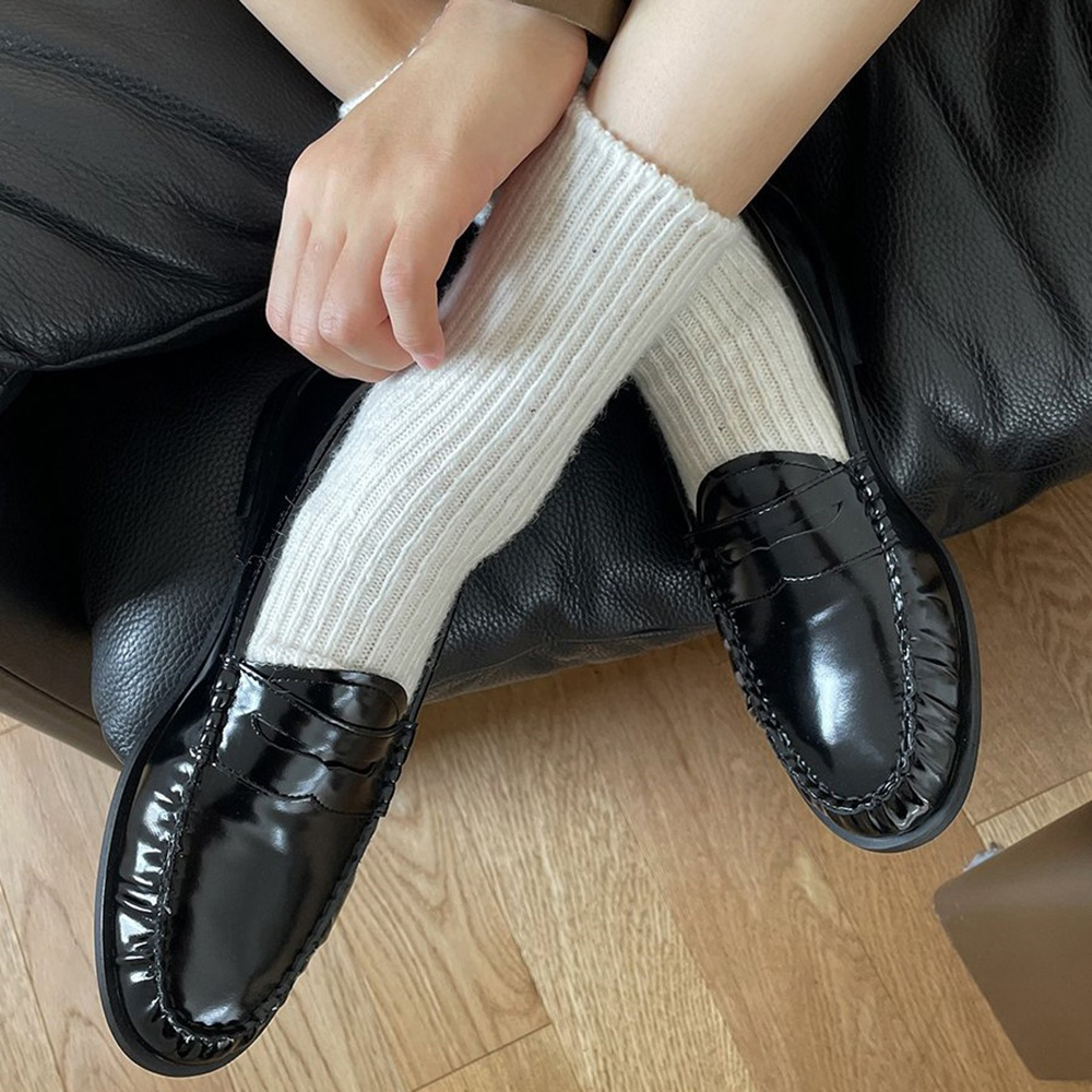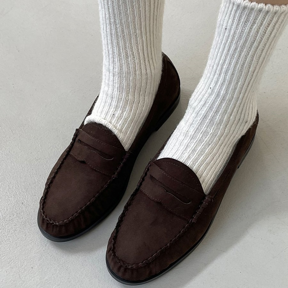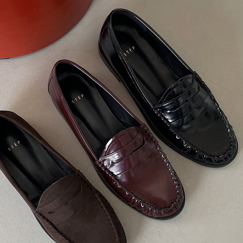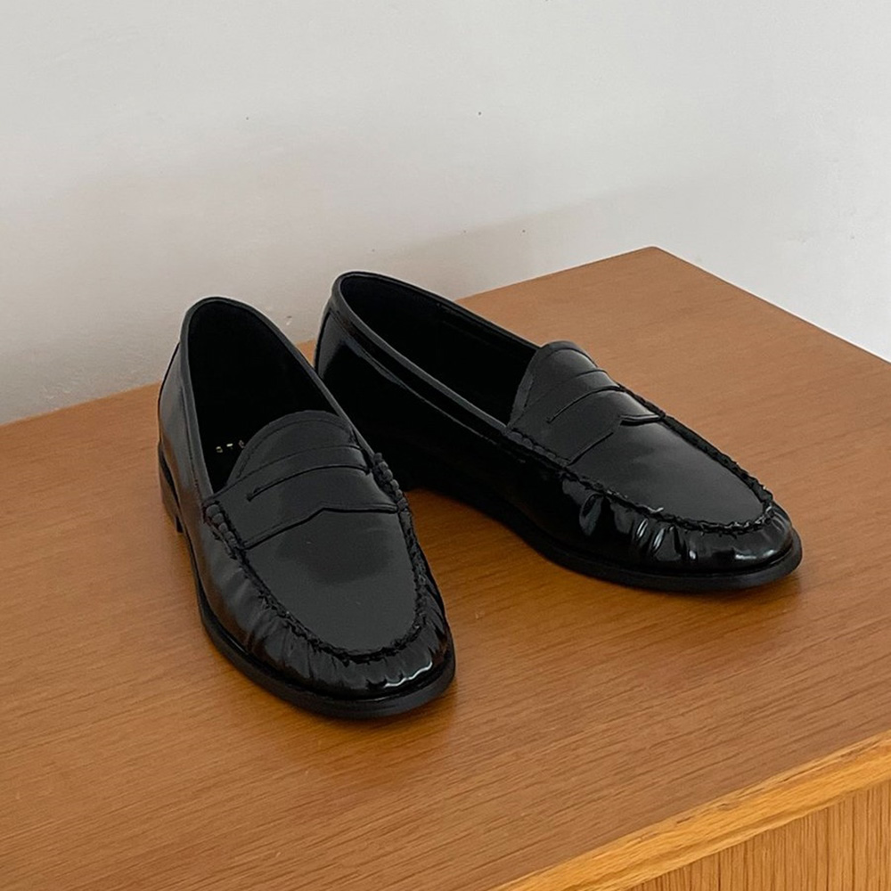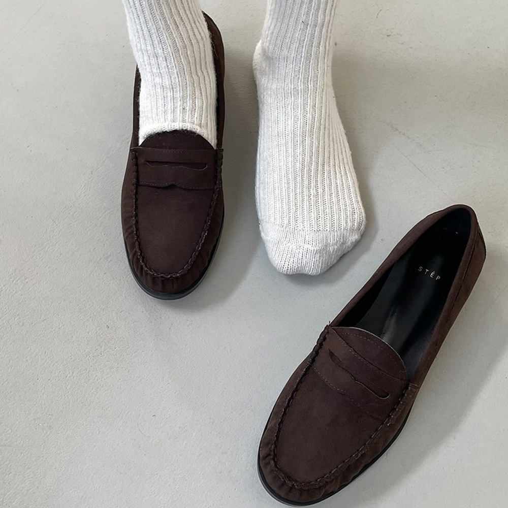 스웨이드 글로시 셔링 페니 여자 로퍼