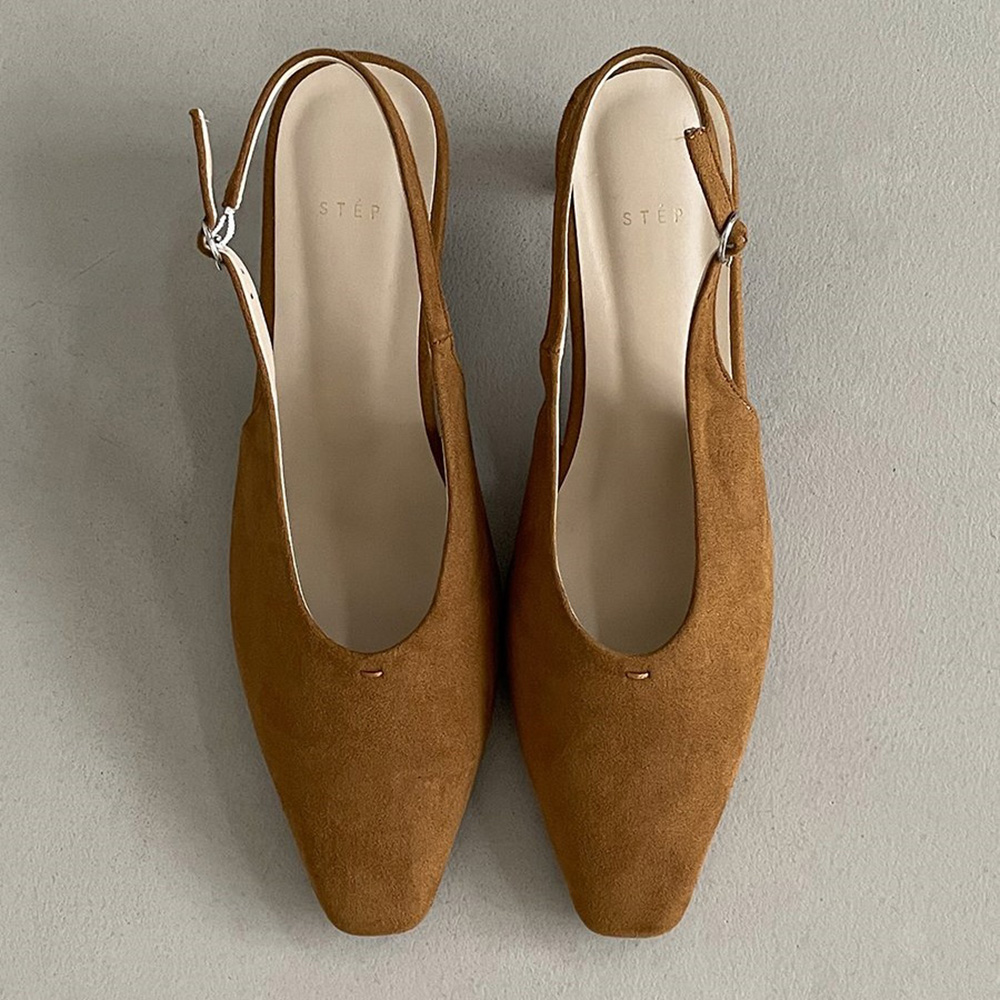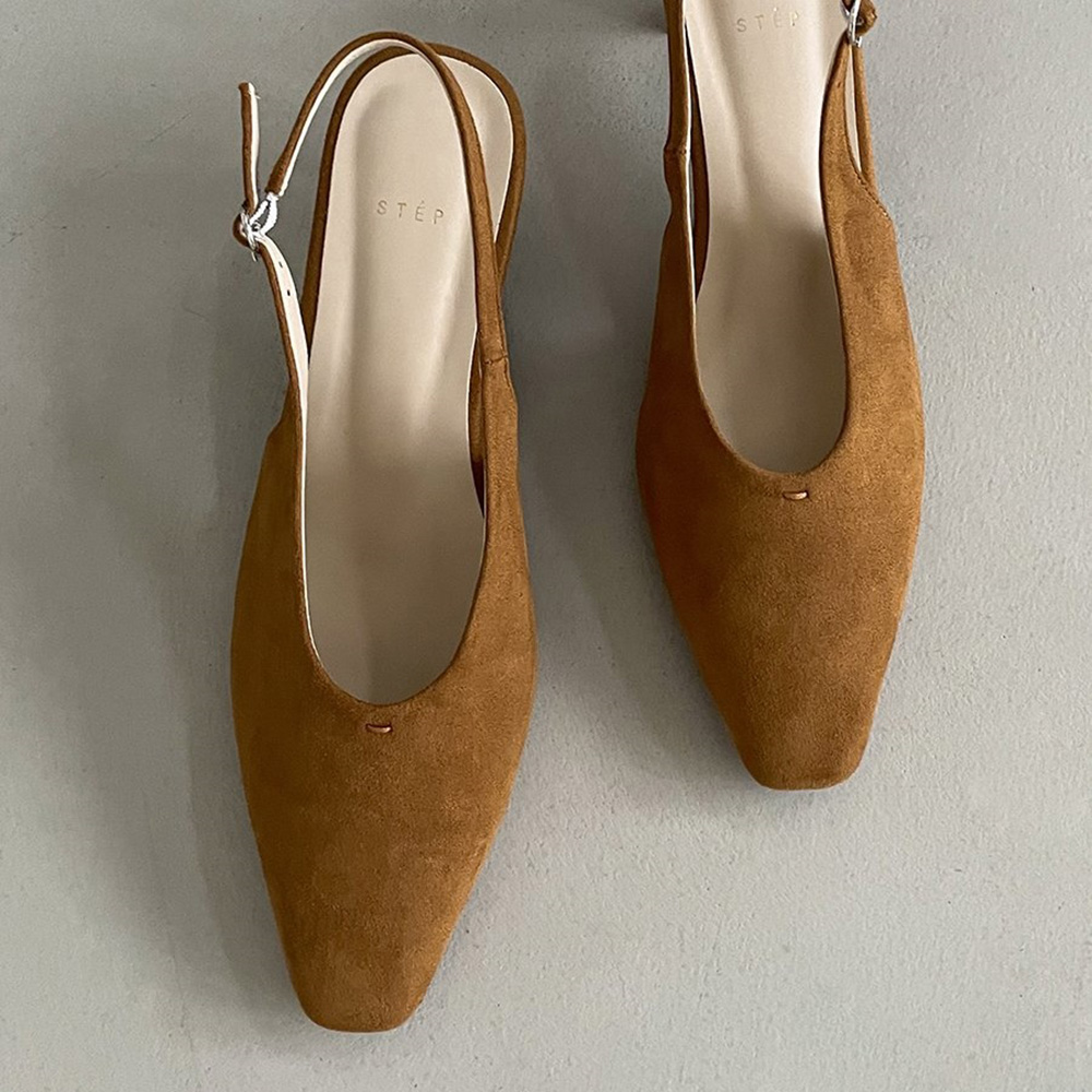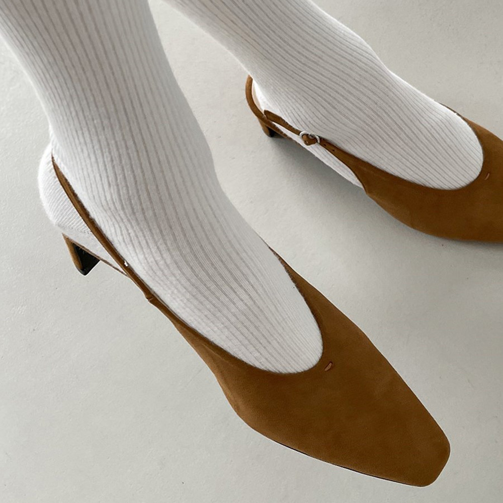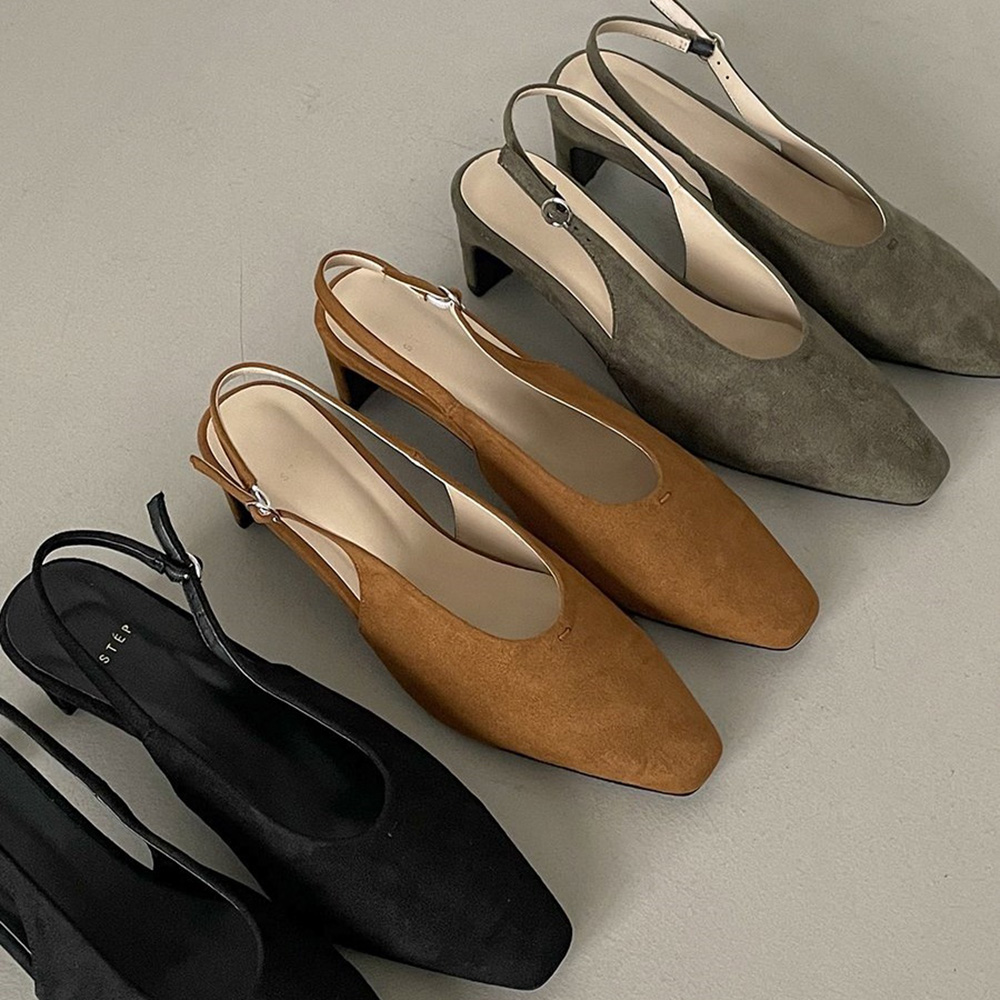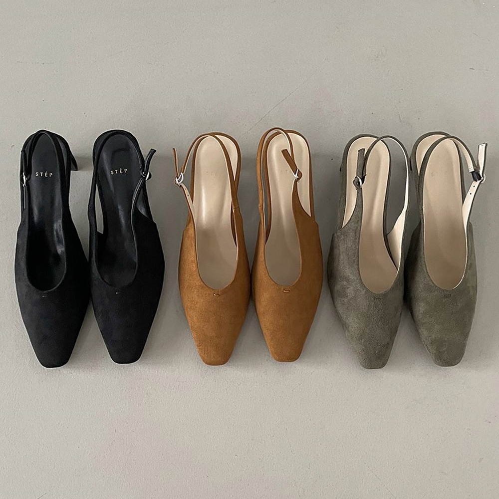스웨이드 스퀘어토 미들힐 베이직 슬링백힐