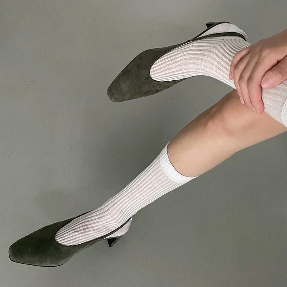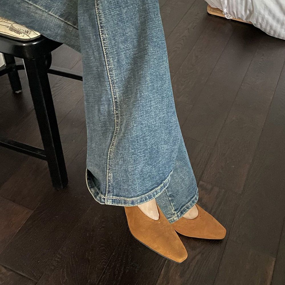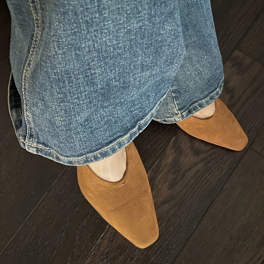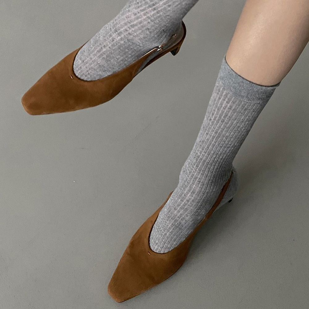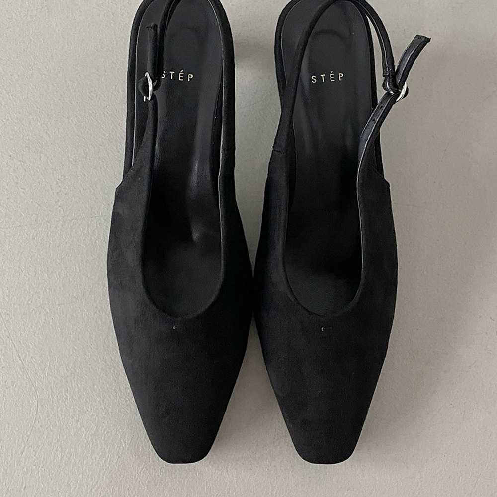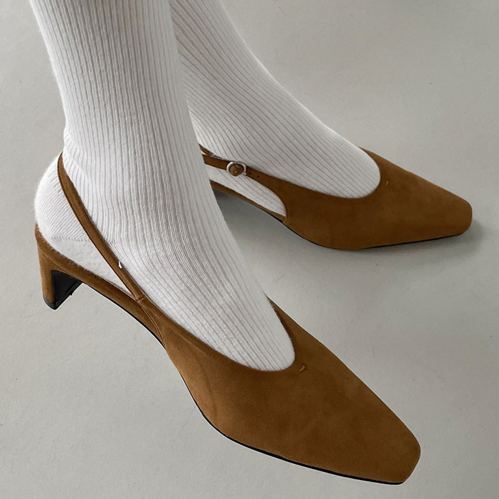 스웨이드 스퀘어토 미들힐 베이직 슬링백힐