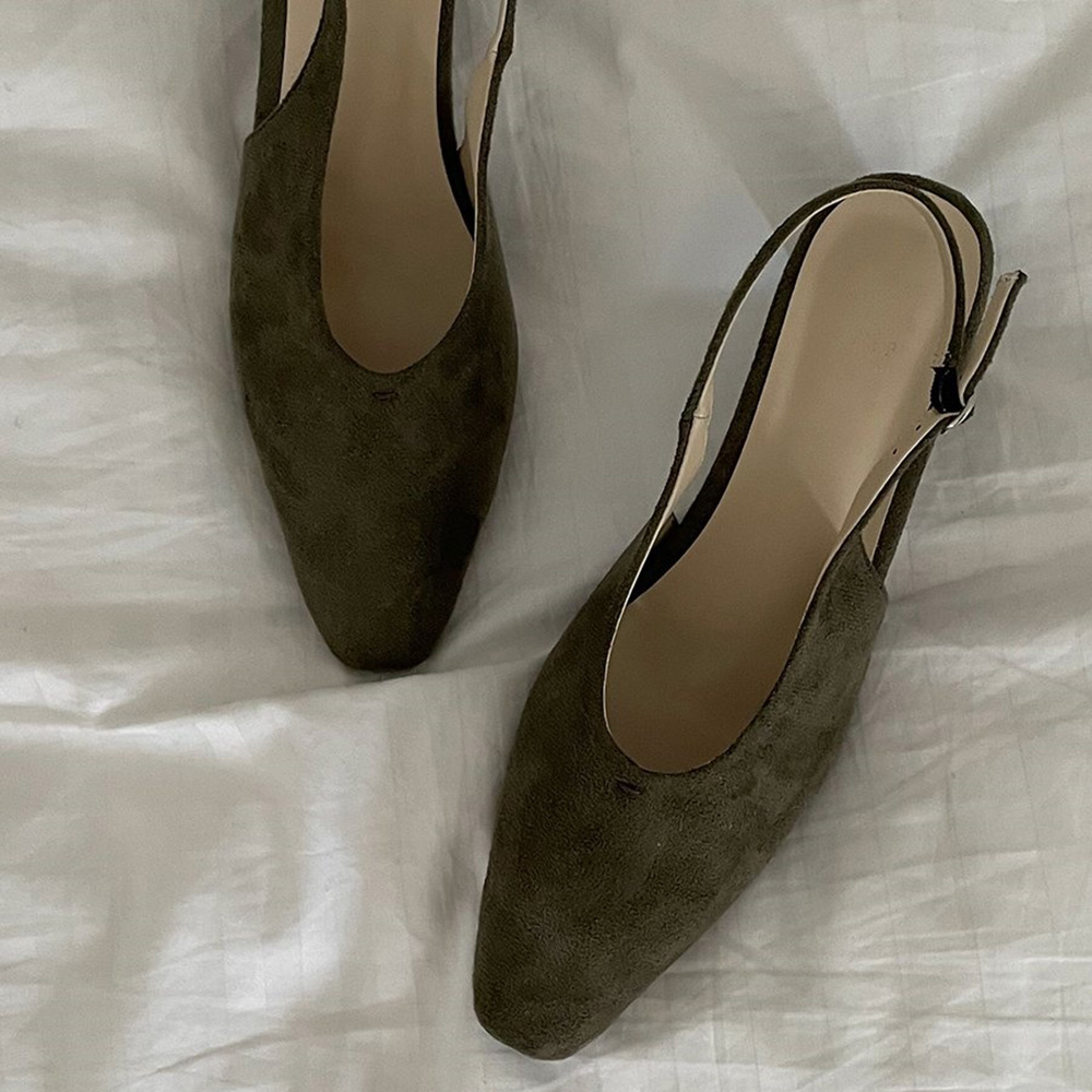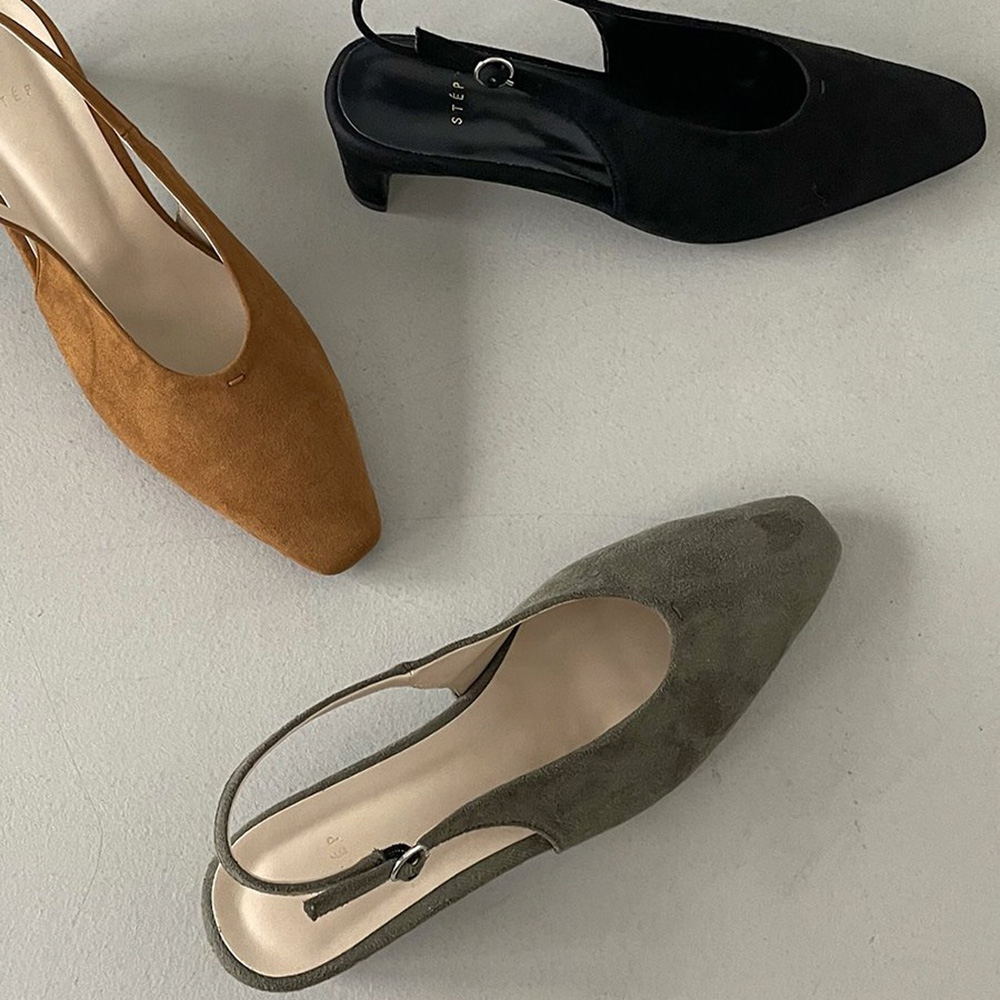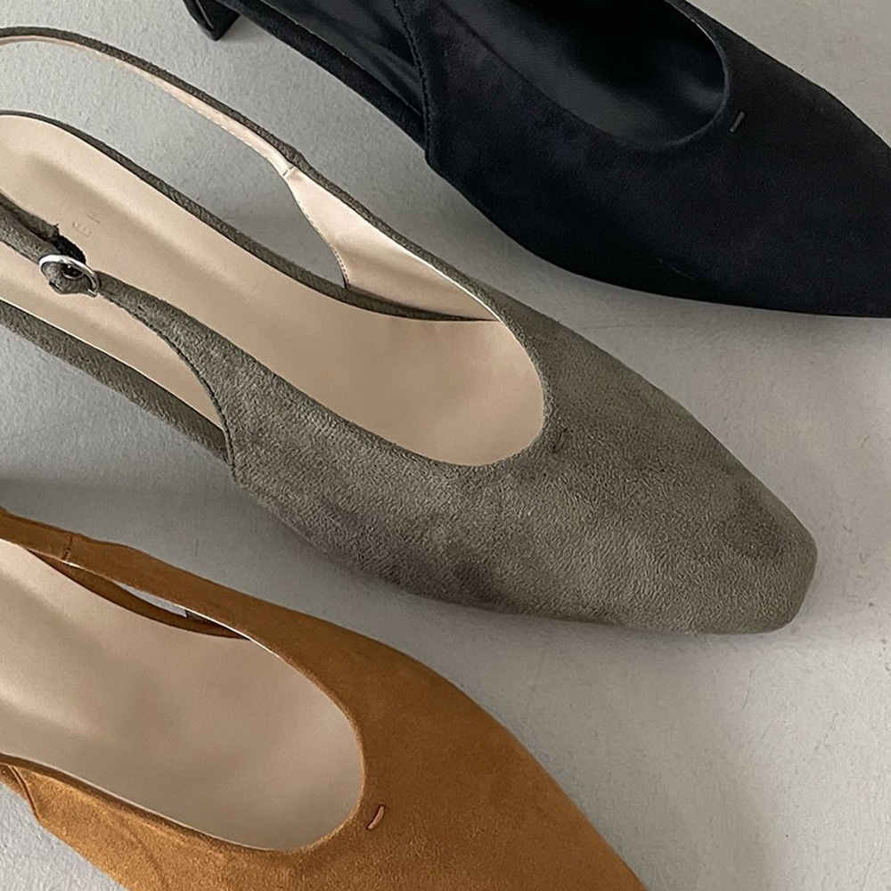 계절감있는 스웨이드 소재의 베이직한 슬링백힐이에요