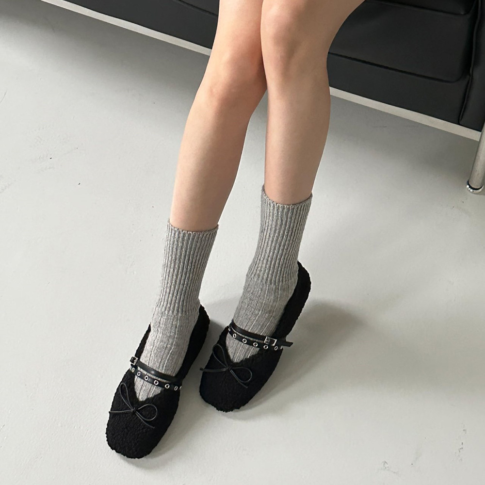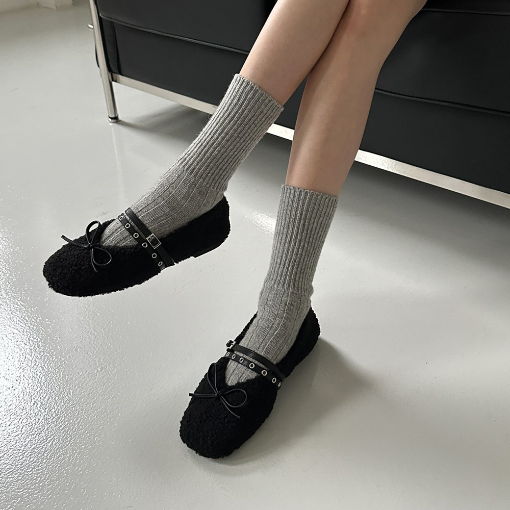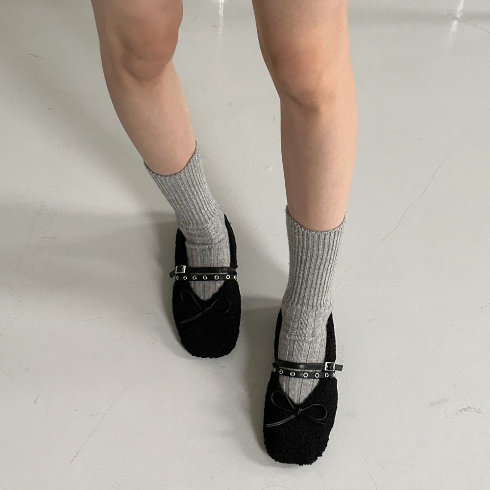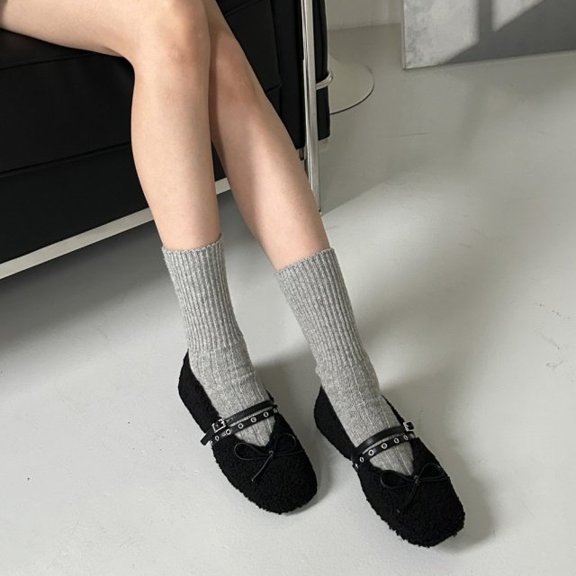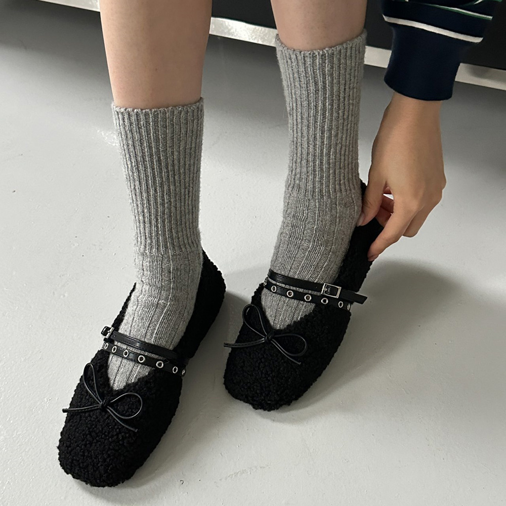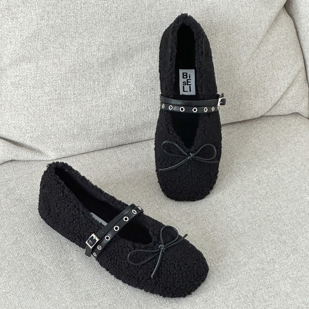 뽀글이 기모안감 양털 리본 스트랩 메리제인 겨울 여자 플랫슈즈