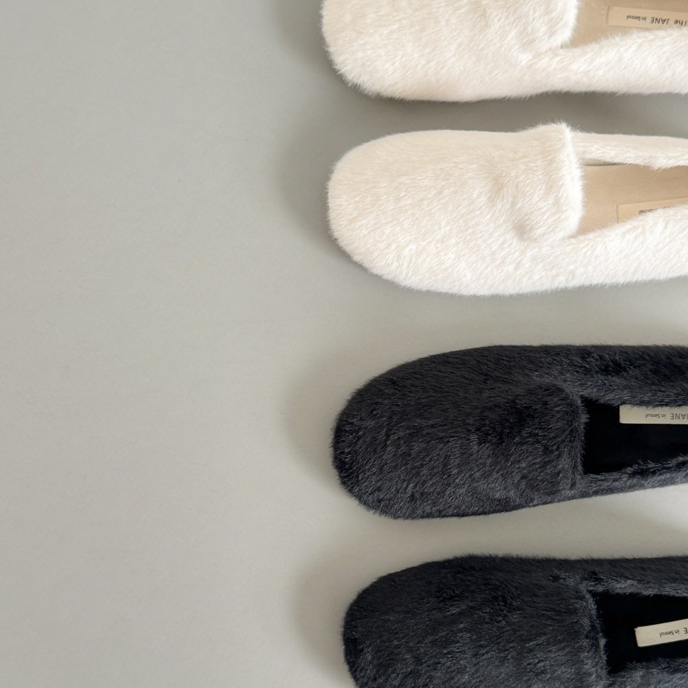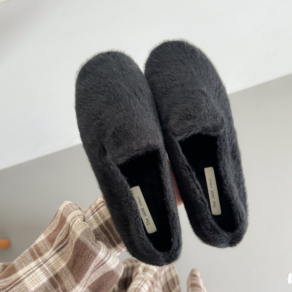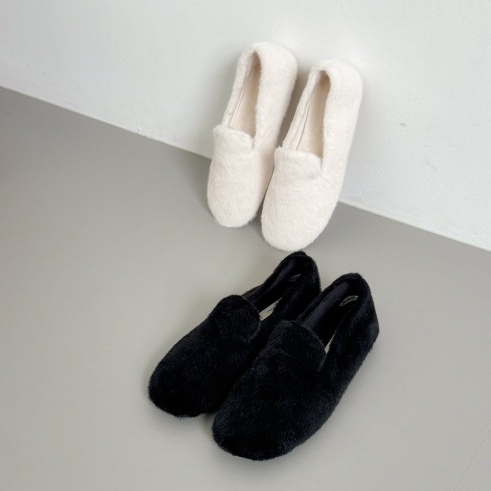 페이크 털 밍크퍼 기모안감 발편한 쿠션 여자 겨울 플랫슈즈