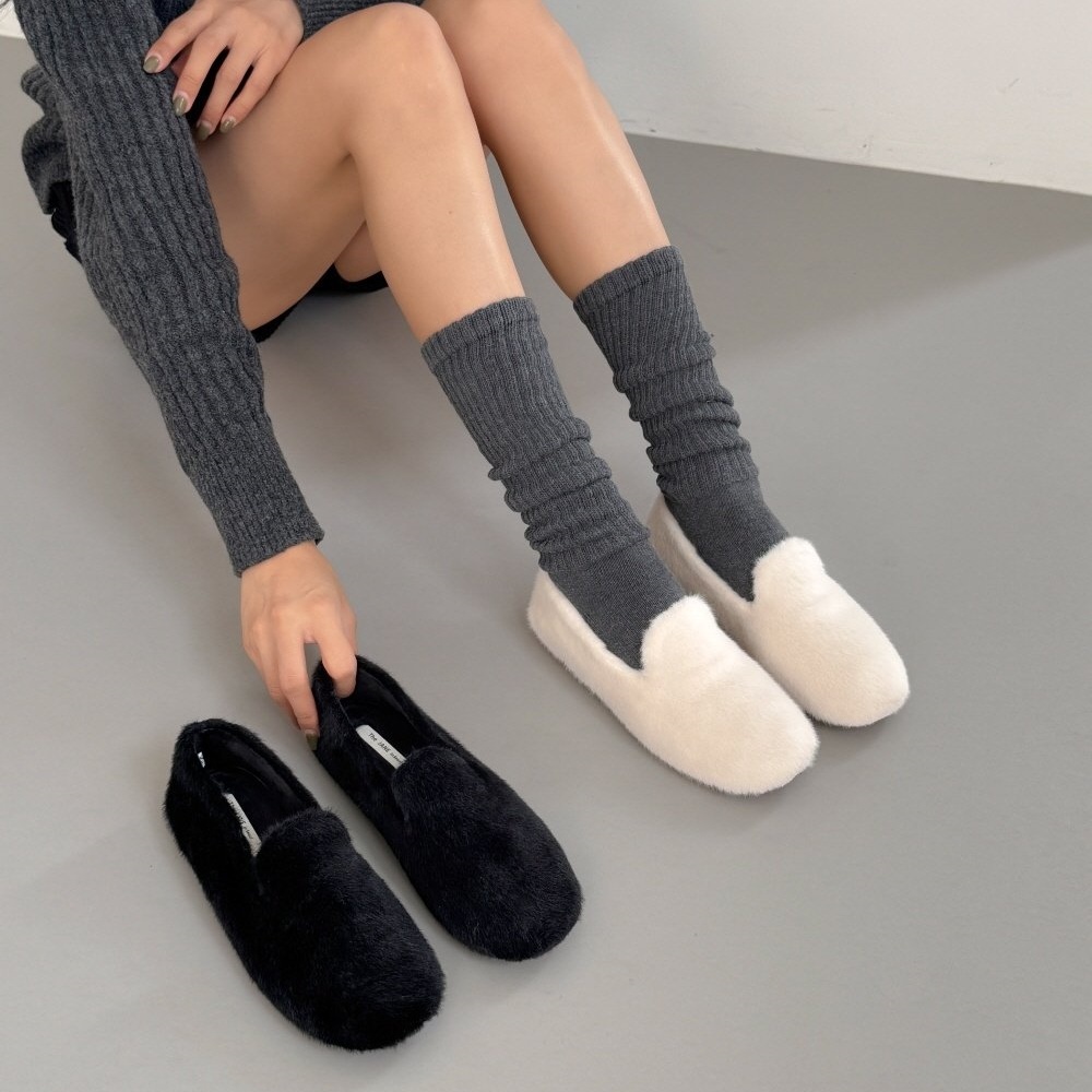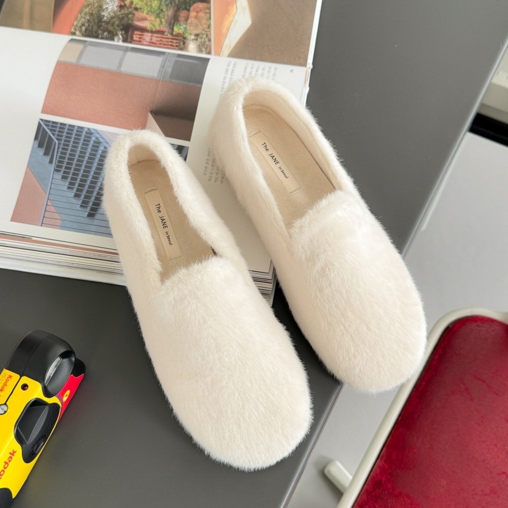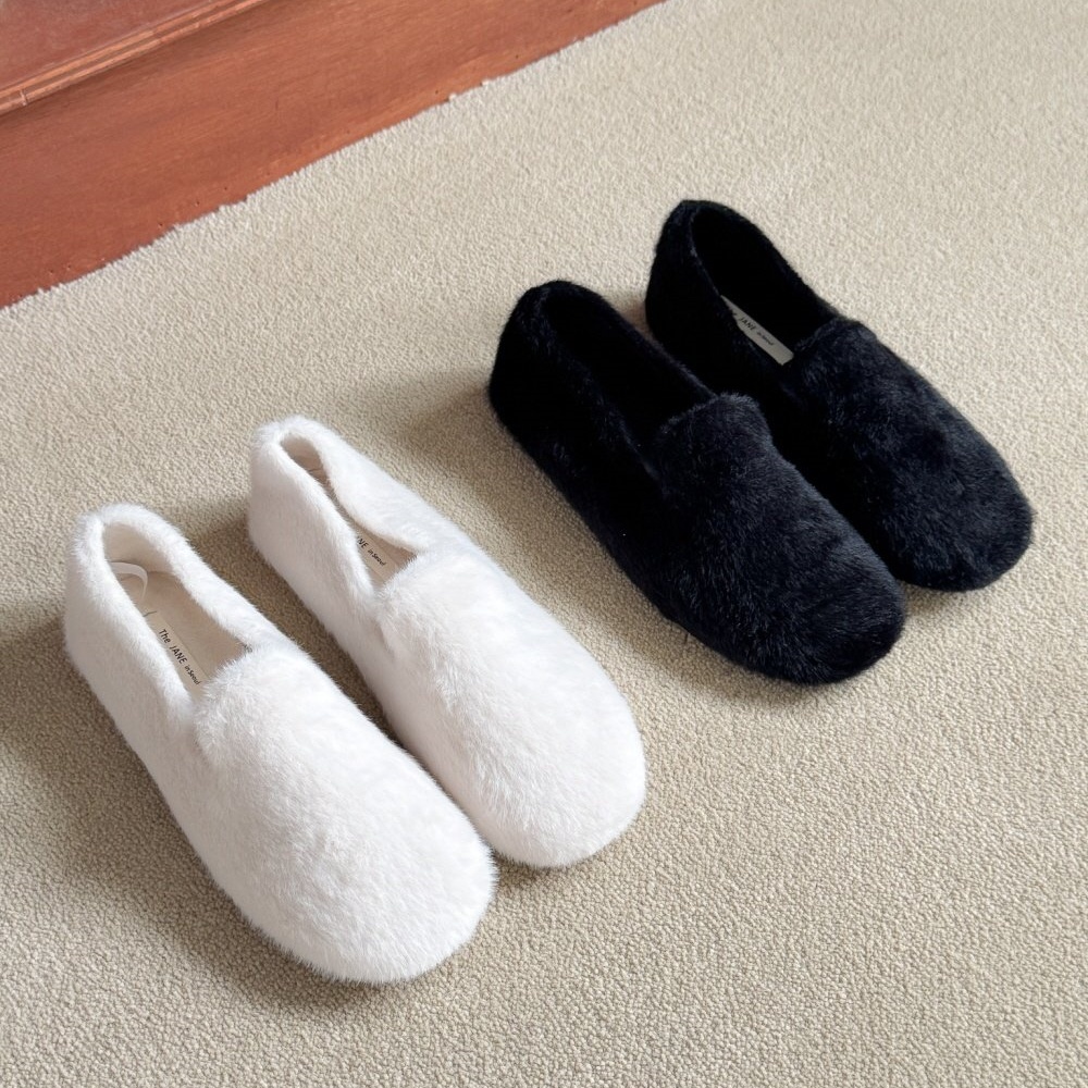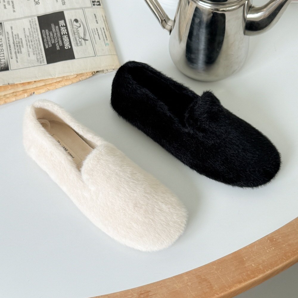 페이크 털 밍크퍼 기모안감 발편한 쿠션 여자 겨울 플랫슈즈