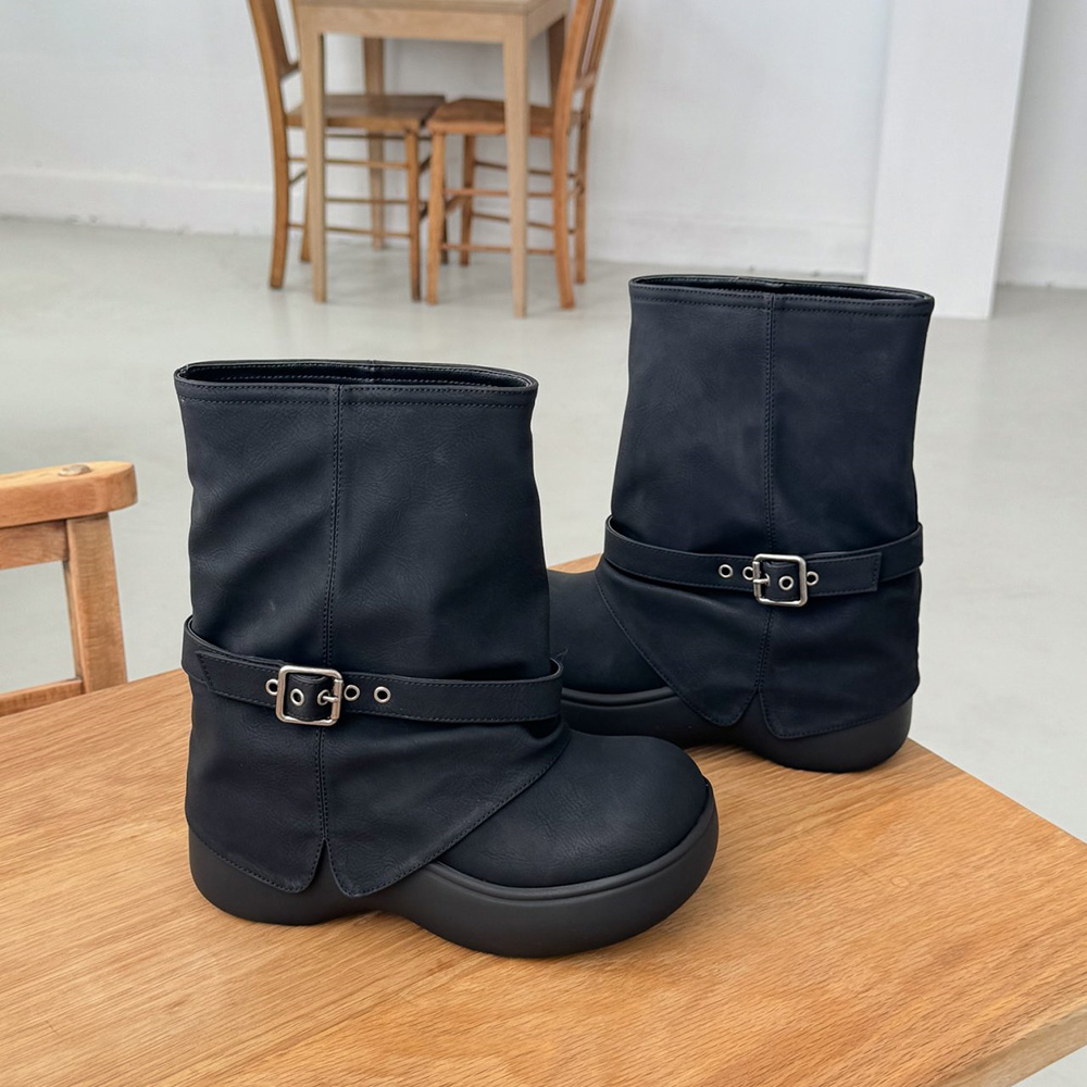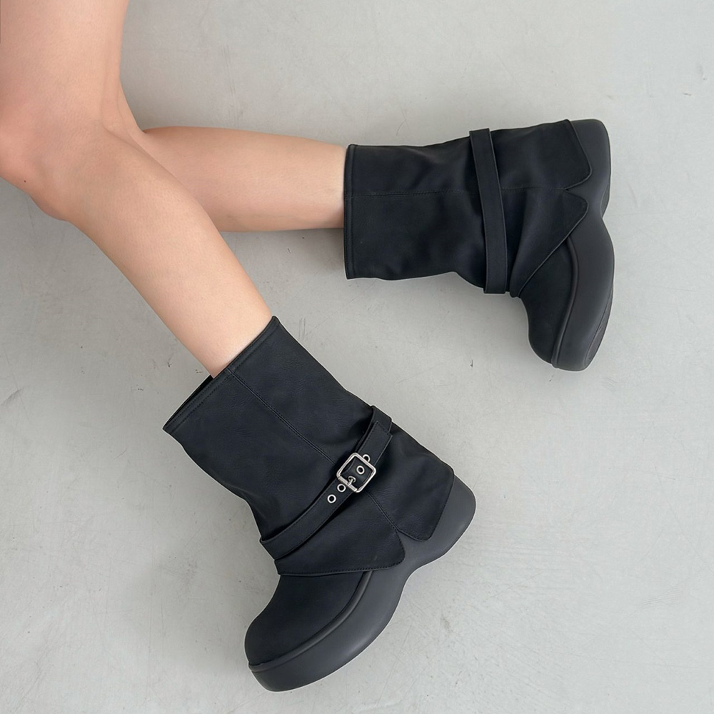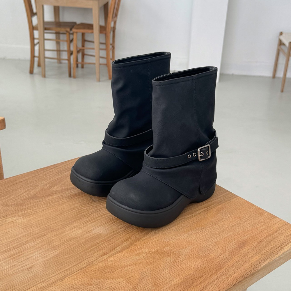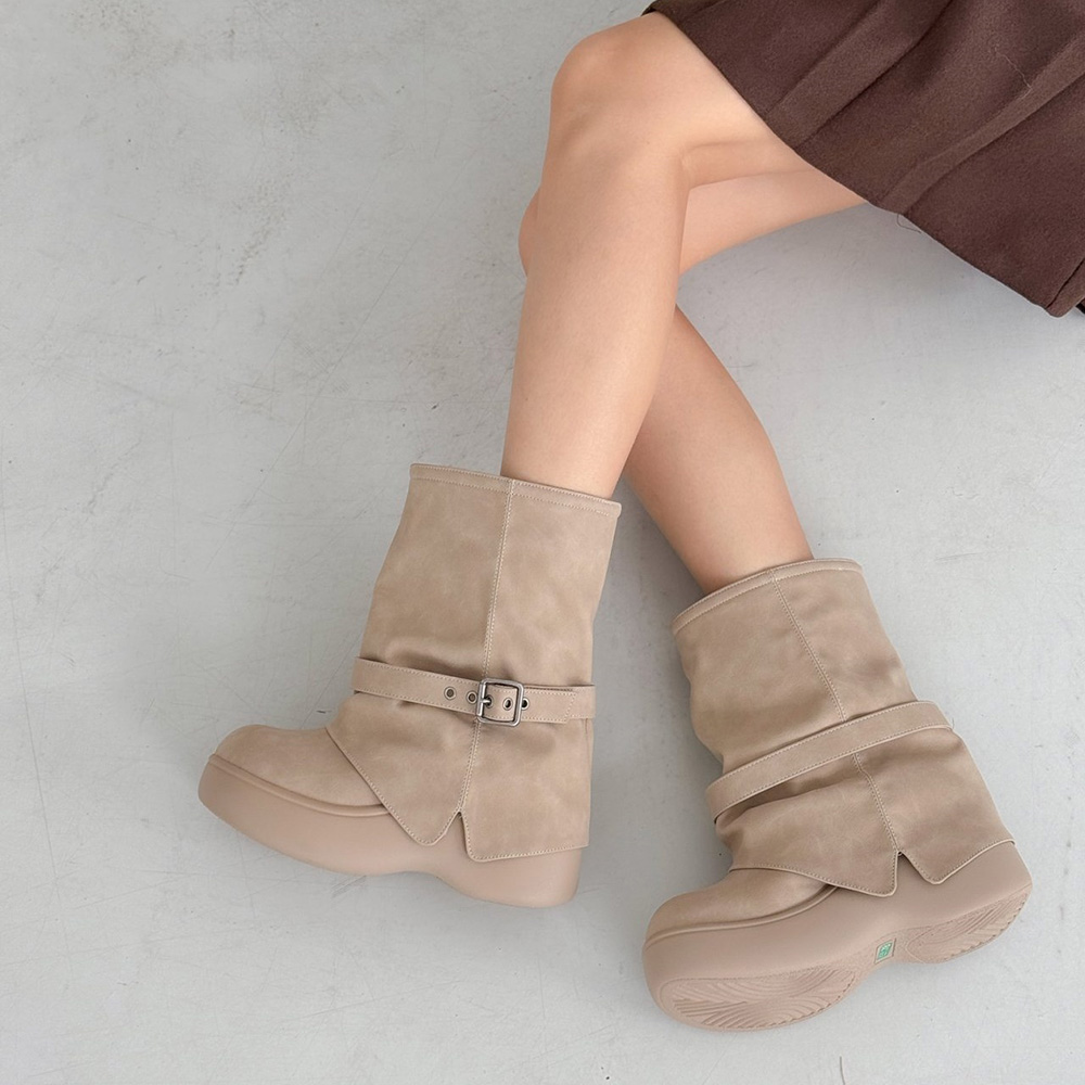 벨트 스웨이드 통굽 가보시 미들힐 미디부츠 여자 미들부츠
