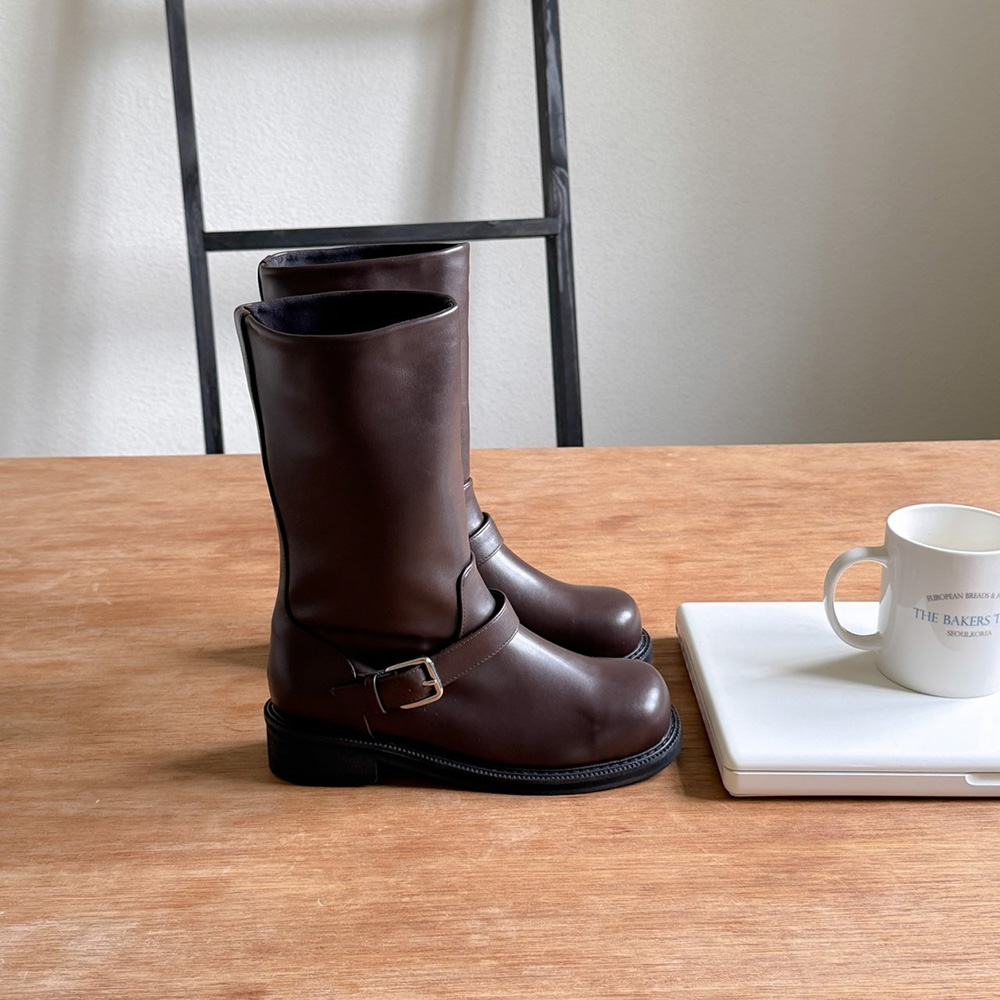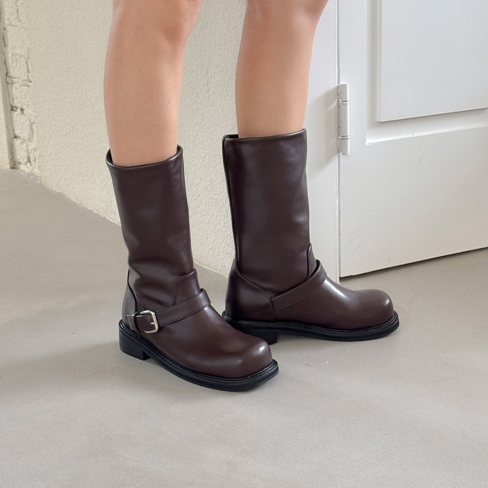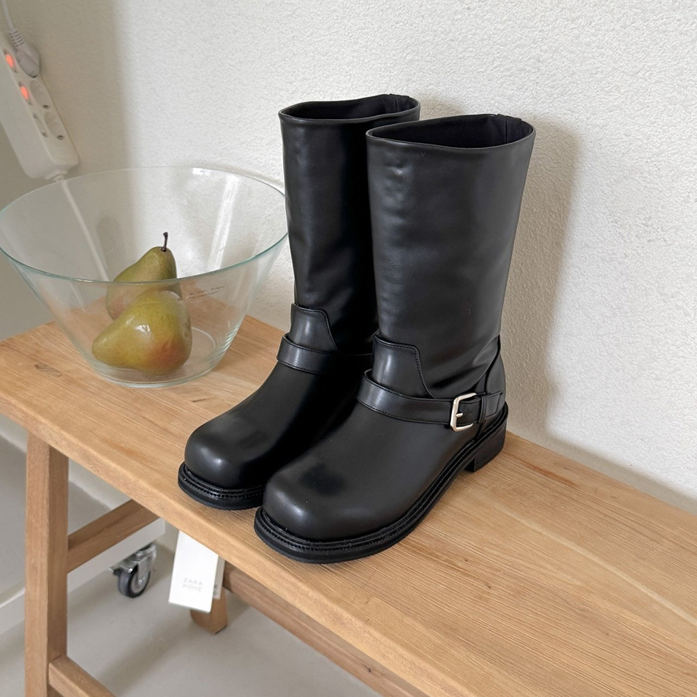 벨트 라운드토 바이커 미디부츠 발편한 여자 미들부츠