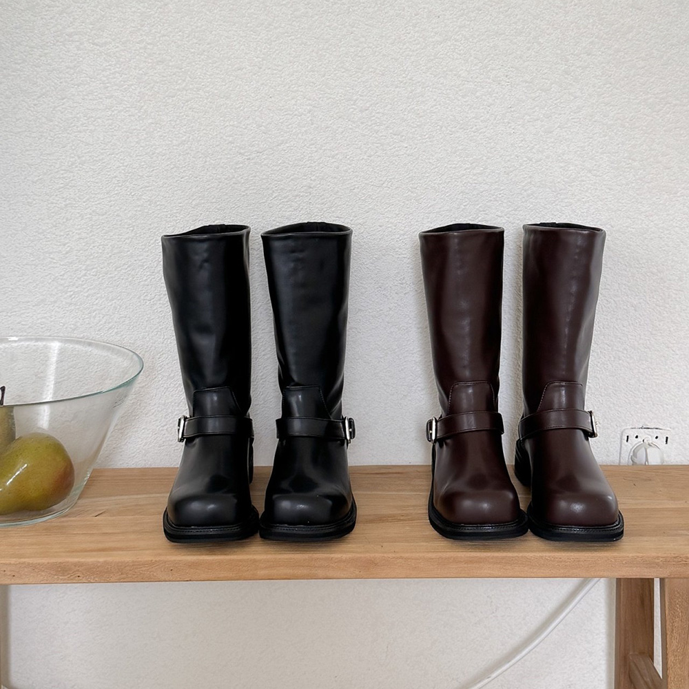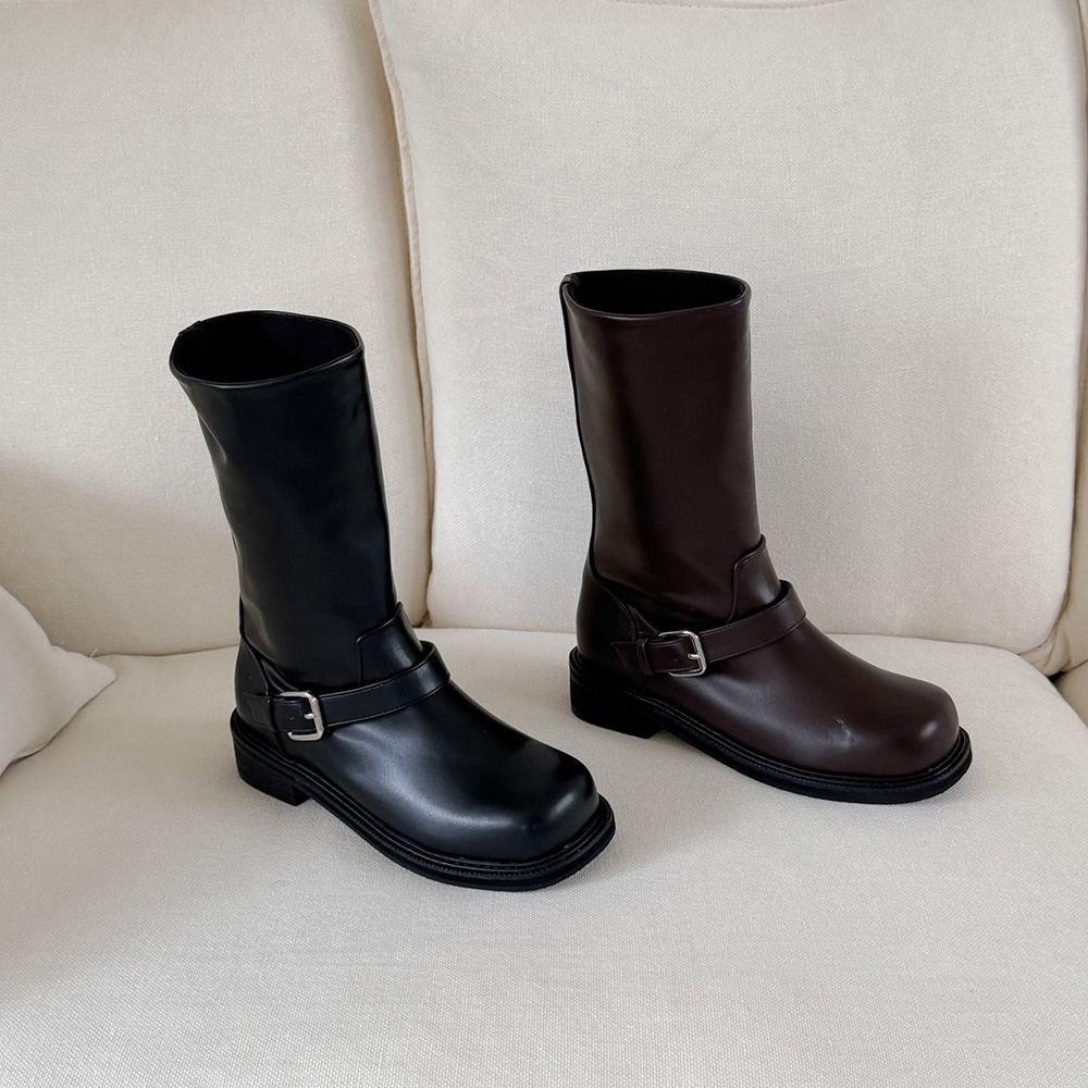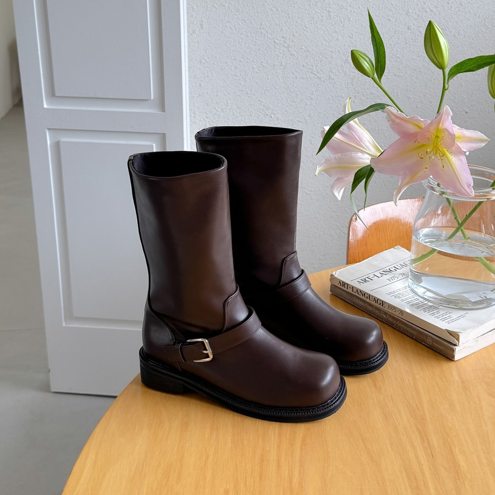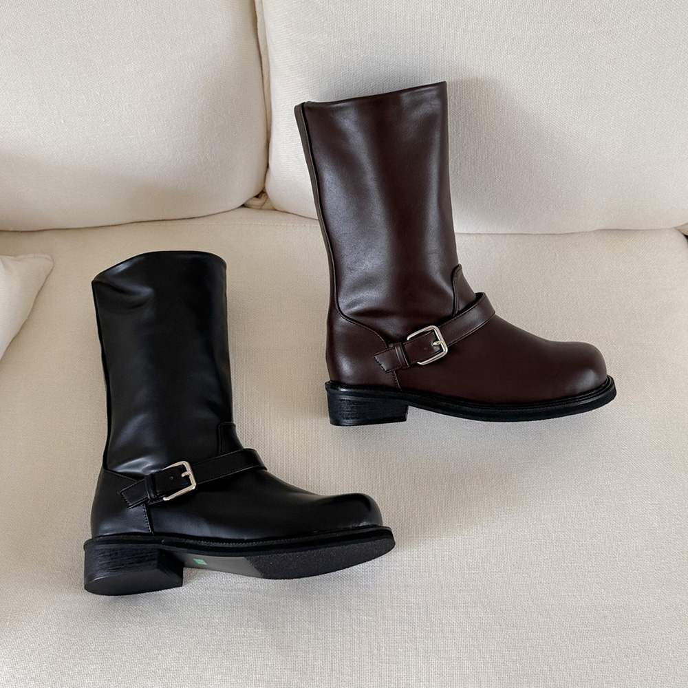 벨트 라운드토 바이커 미디부츠 발편한 여자 미들부츠
