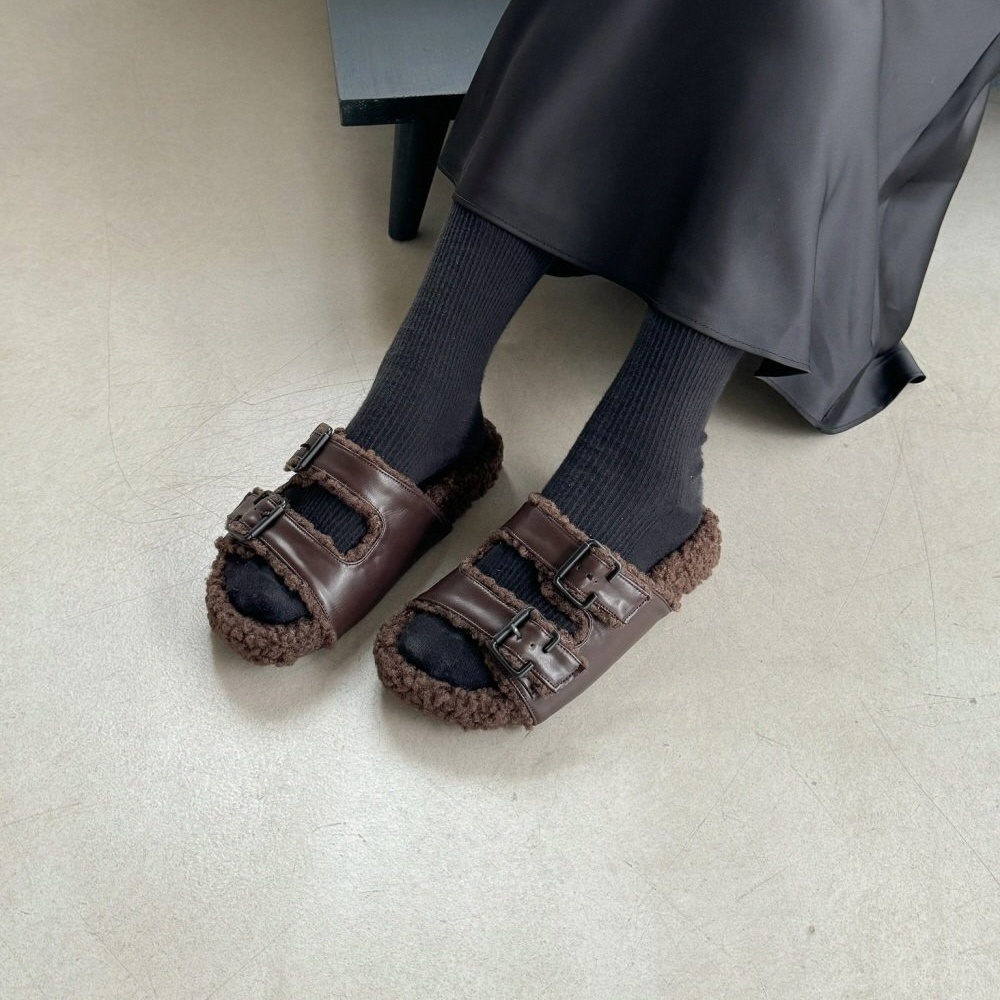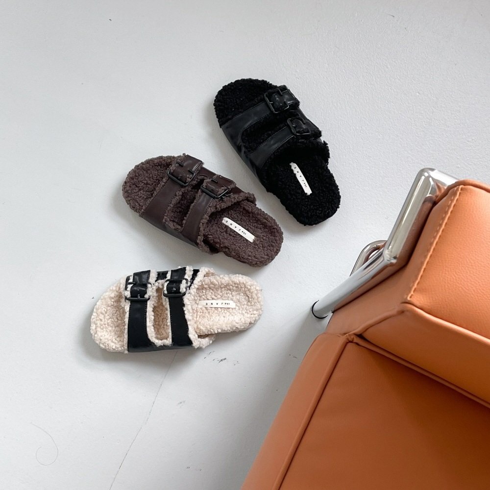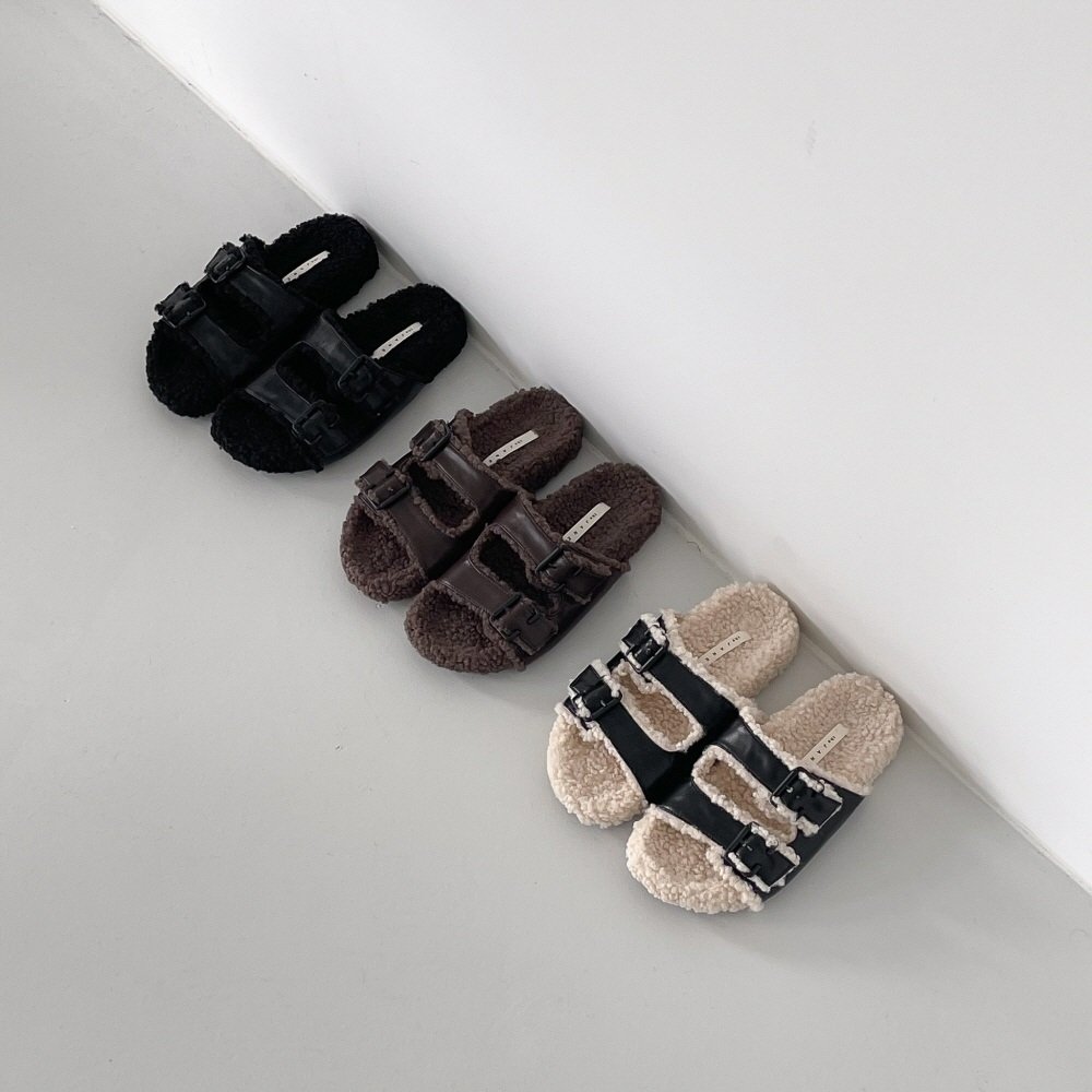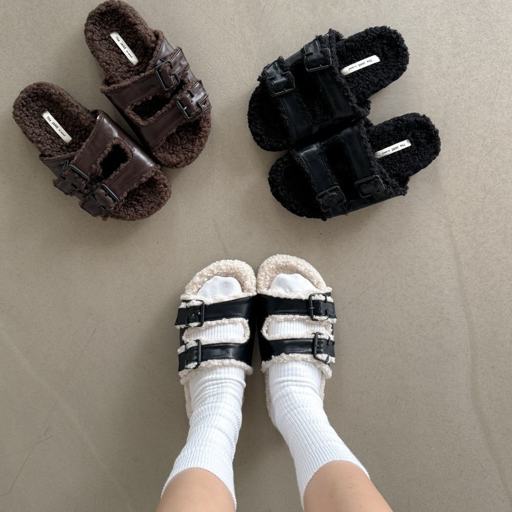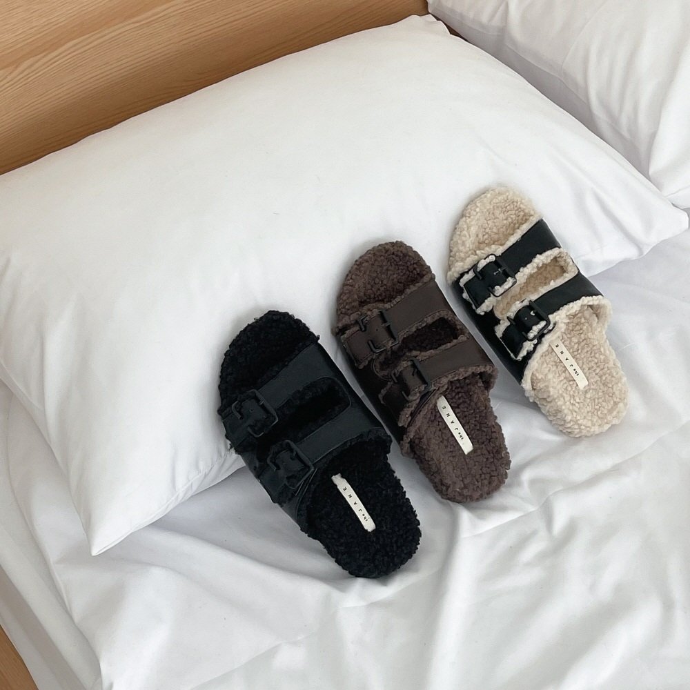 시어링 투벨트 양털 퍼 겨울 방한 여자 슬리퍼