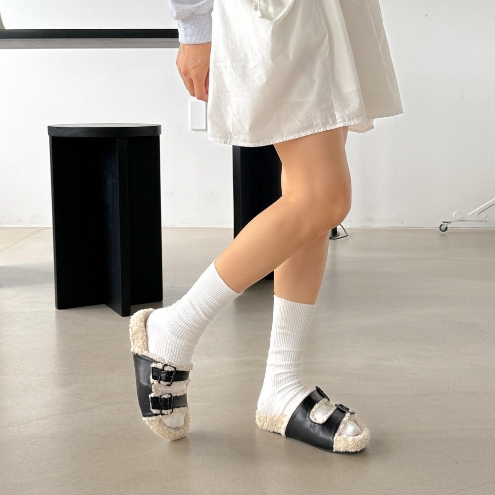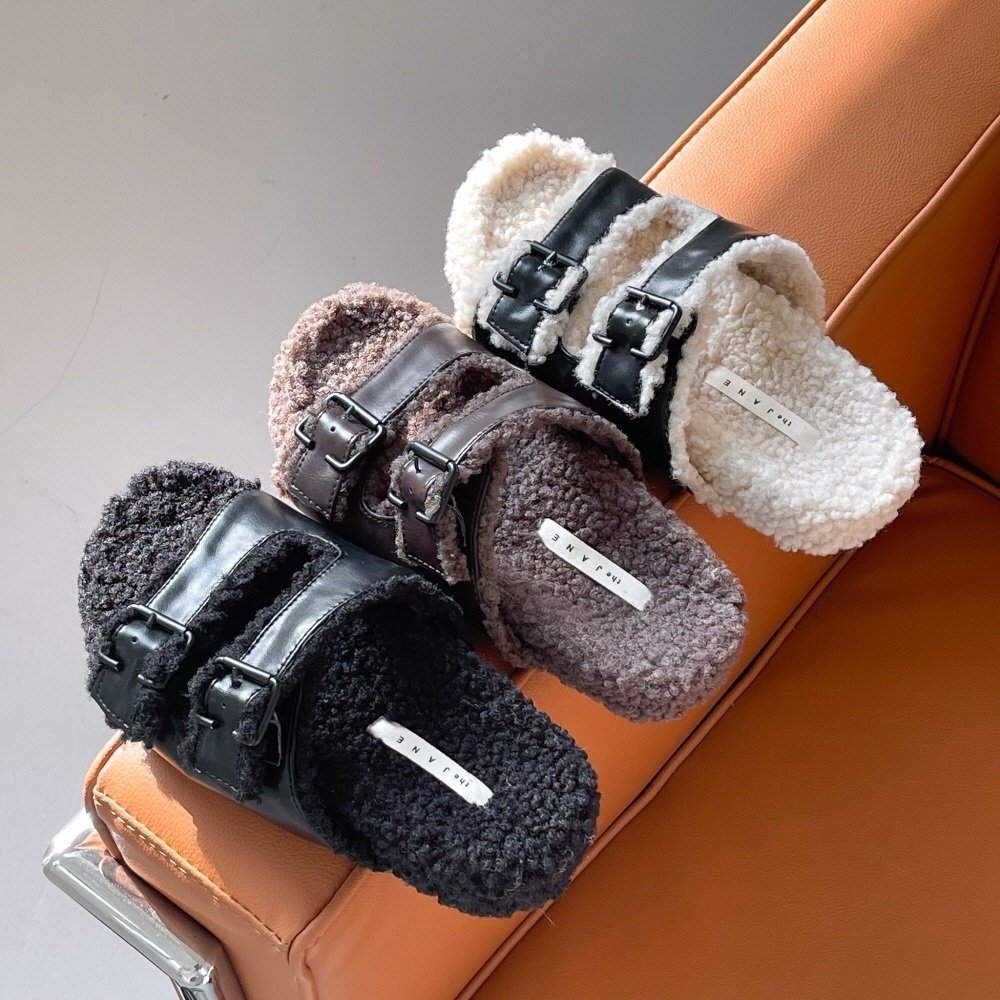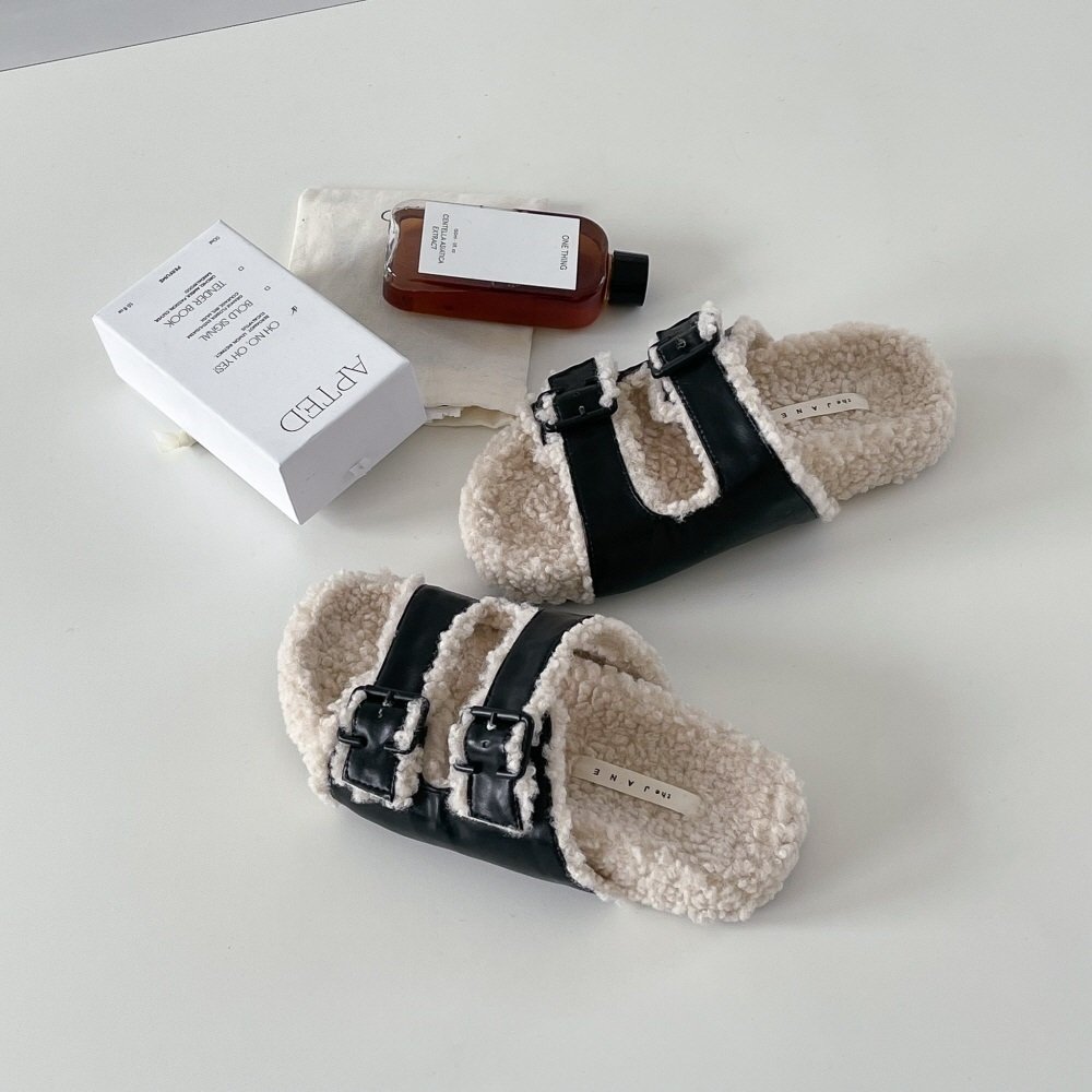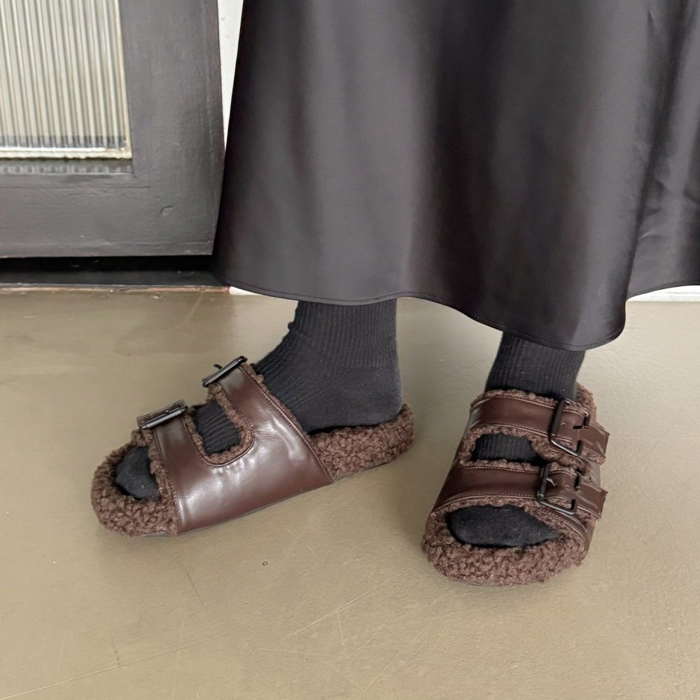 시어링 투벨트 양털 퍼 겨울 방한 여자 슬리퍼