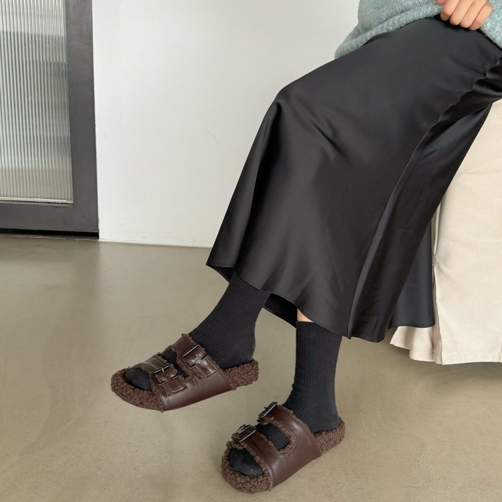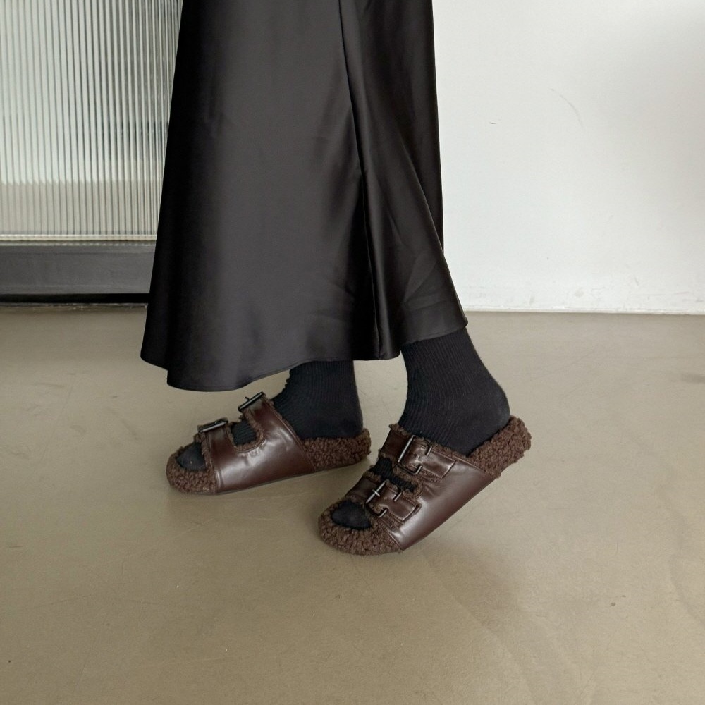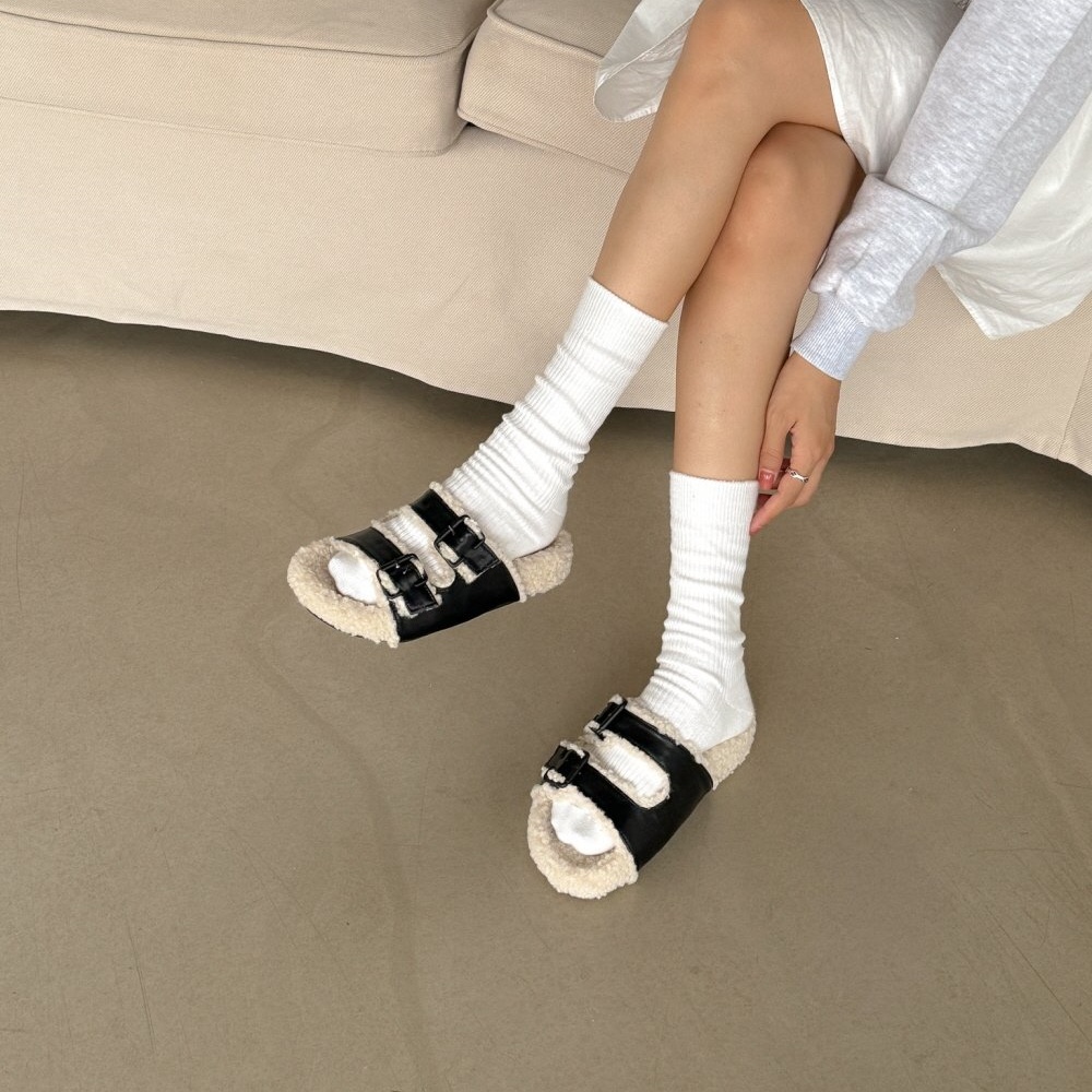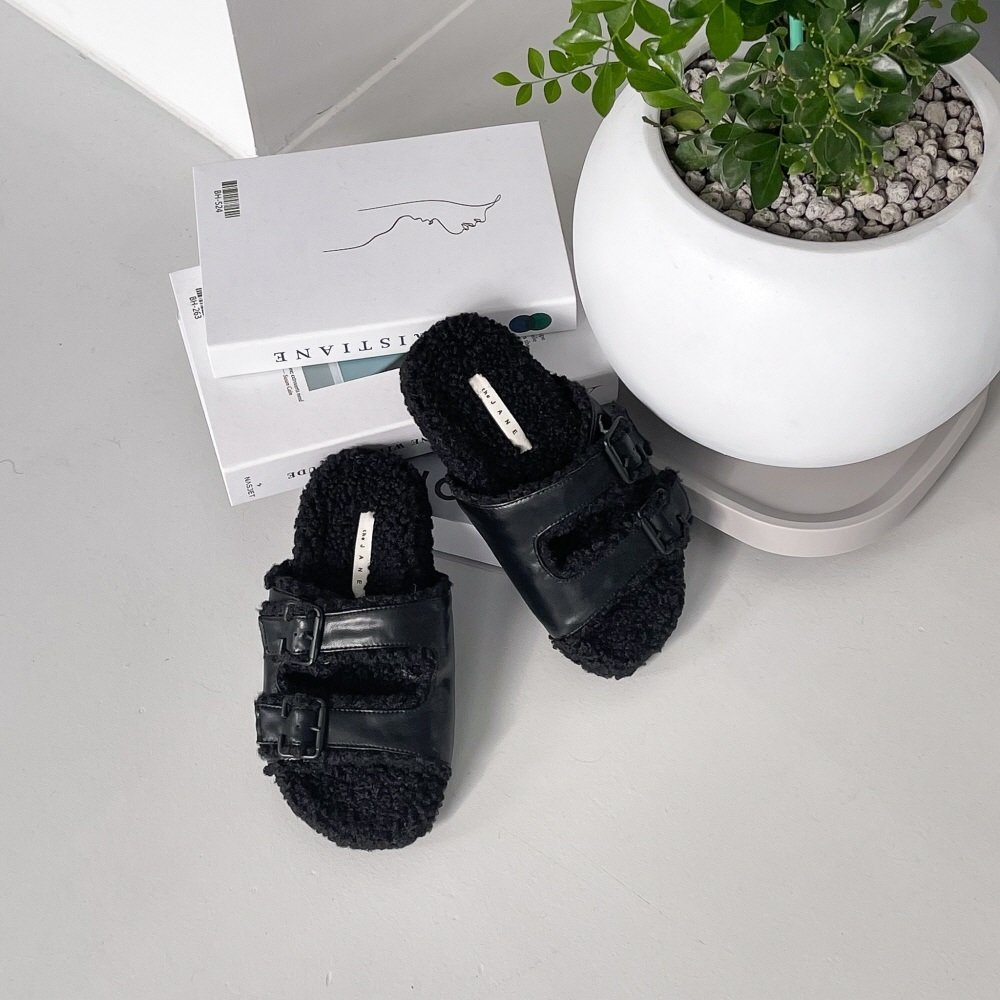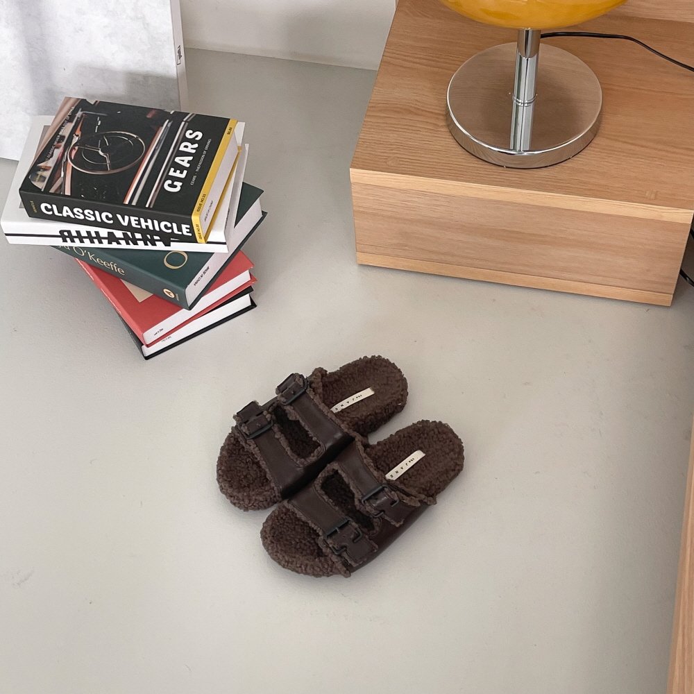 시어링 투벨트 양털 퍼 겨울 방한 여자 슬리퍼