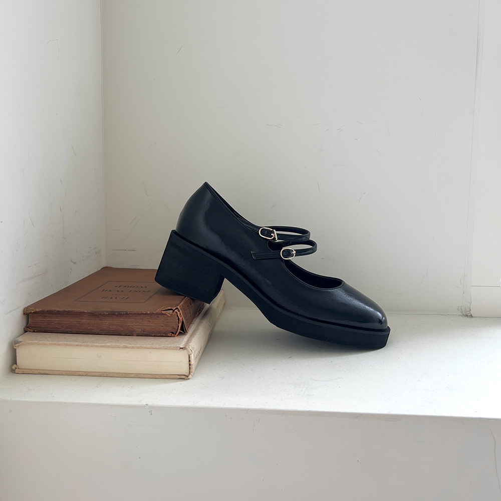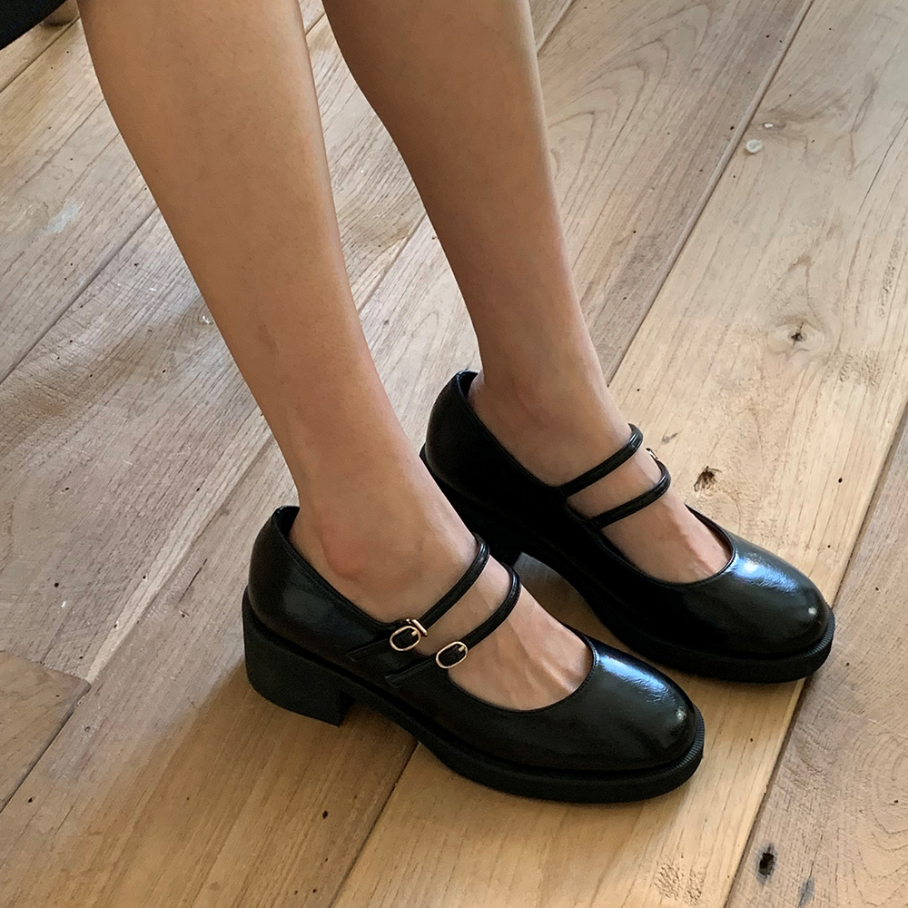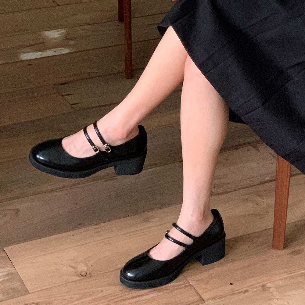 가보시 라운드토 미들힐 쿠션 투벨트 메리제인 여자 펌프스힐