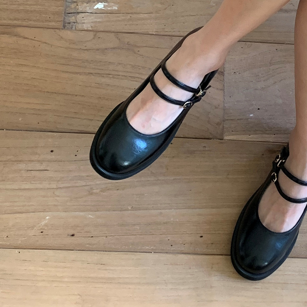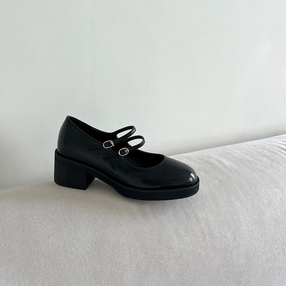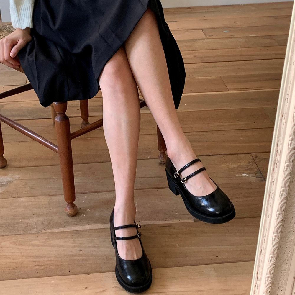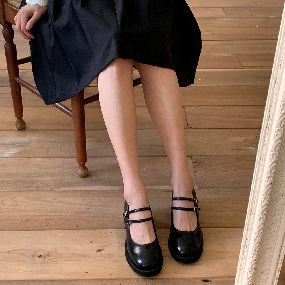 가보시 라운드토 미들힐 쿠션 투벨트 메리제인 여자 펌프스힐