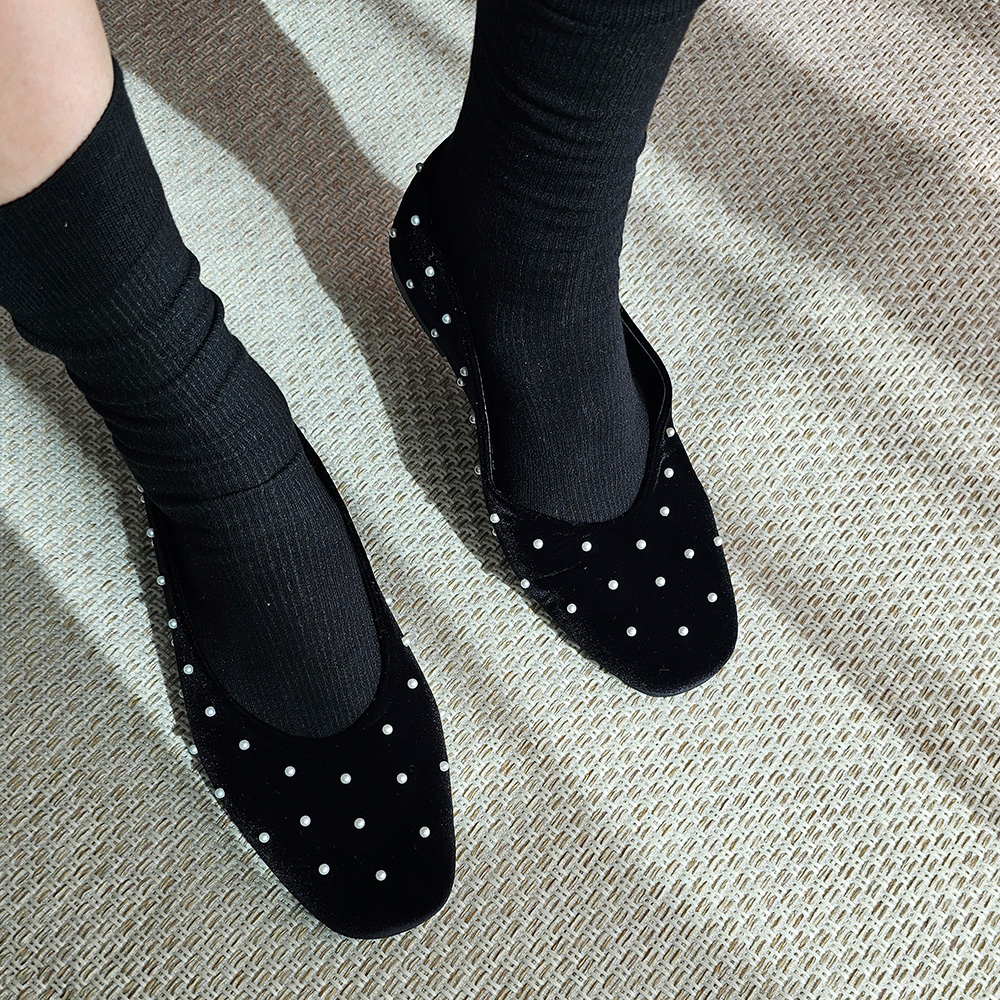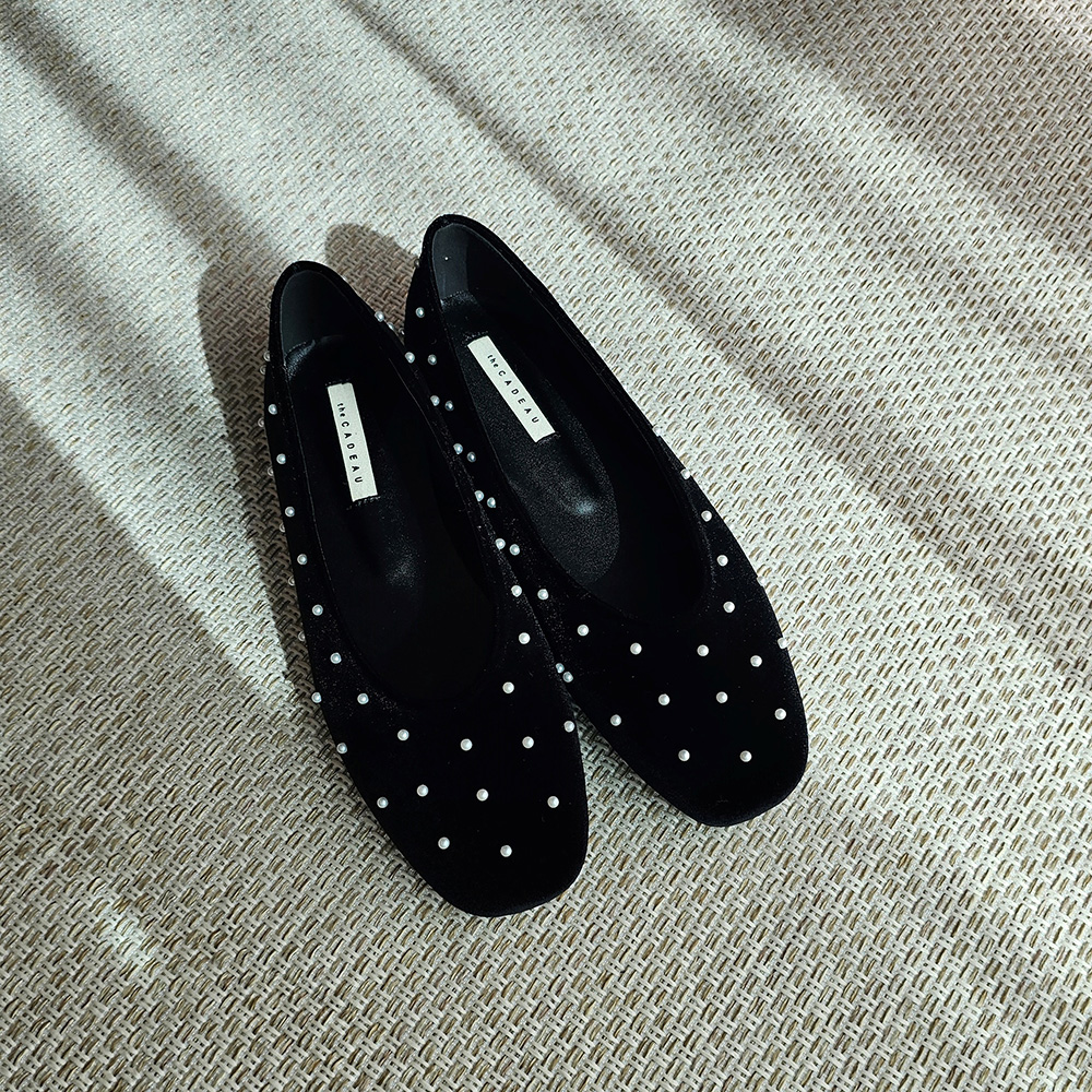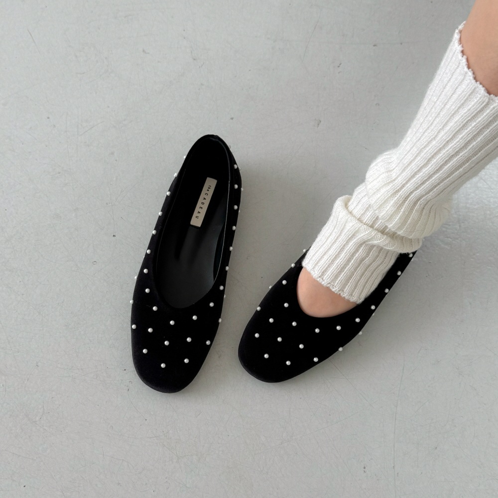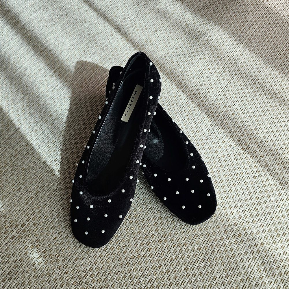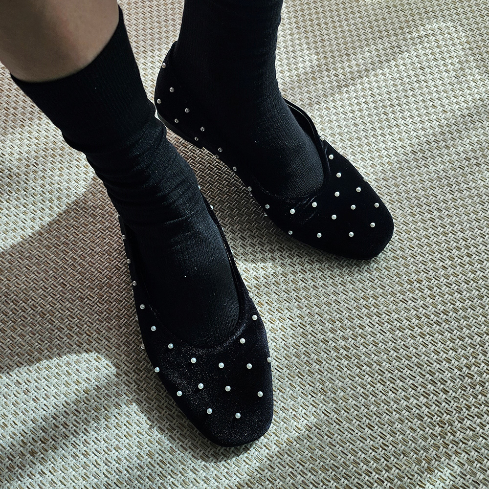 벨벳 진주 스터드 라운드토 쿠션 발편한 여자 플랫슈즈