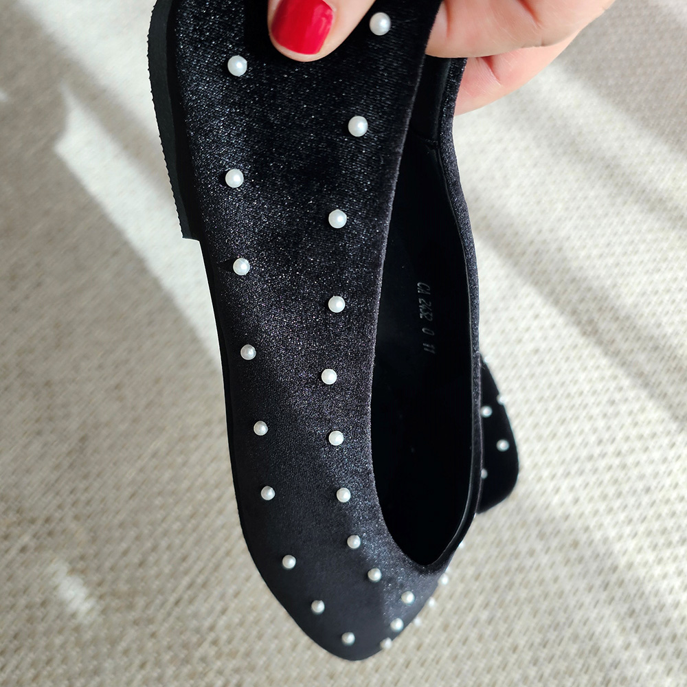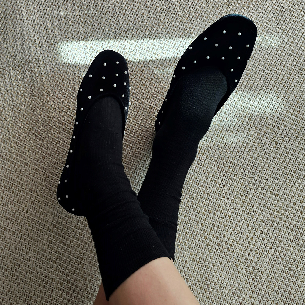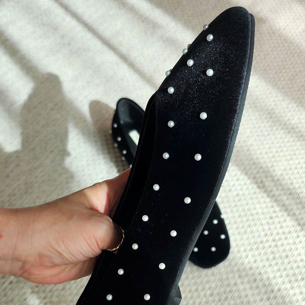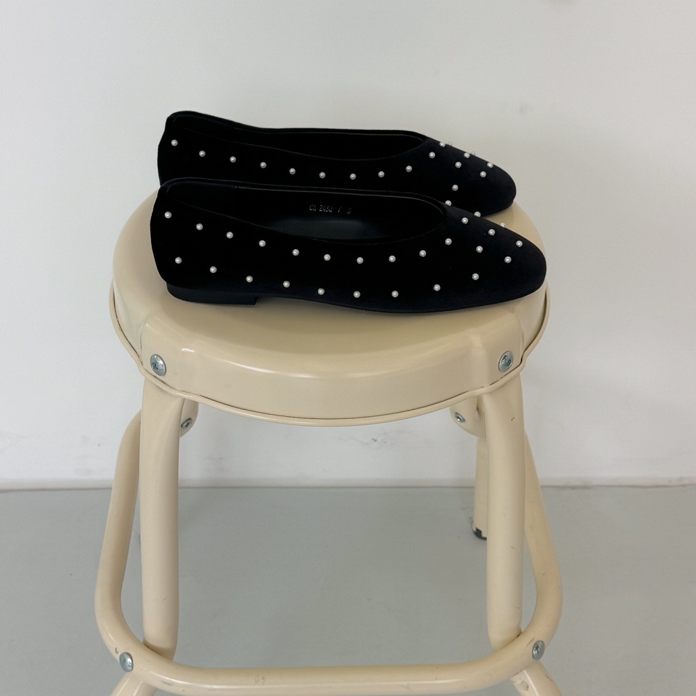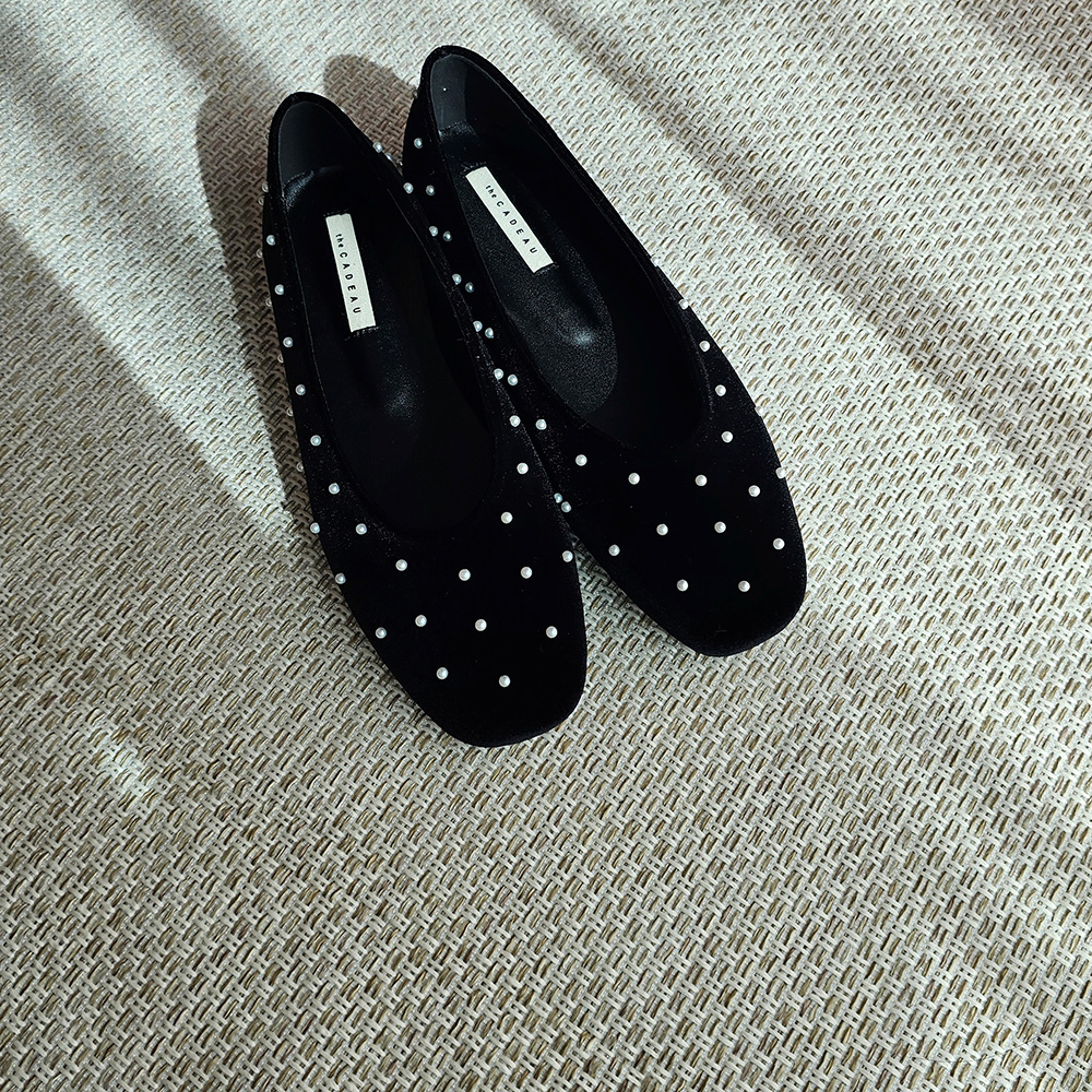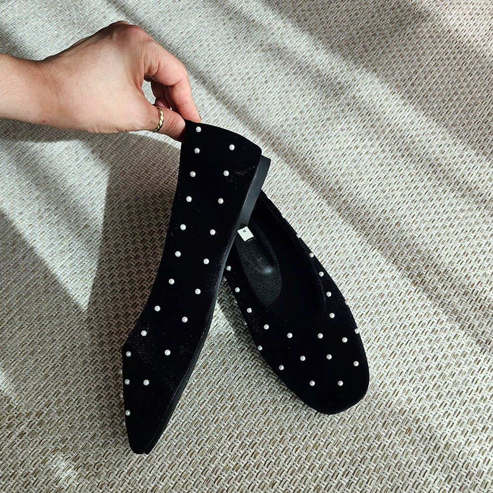벨벳 진주 스터드 라운드토 쿠션 발편한 여자 플랫슈즈