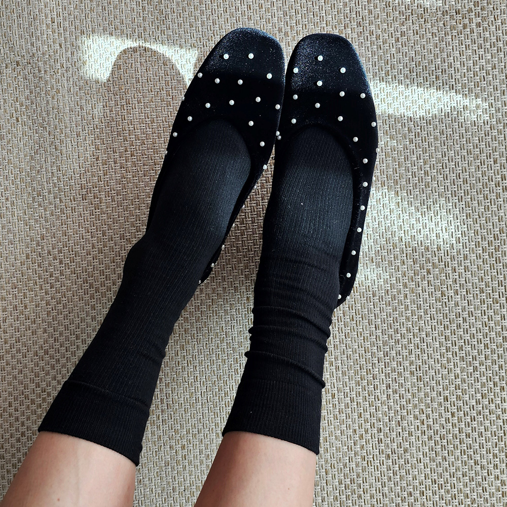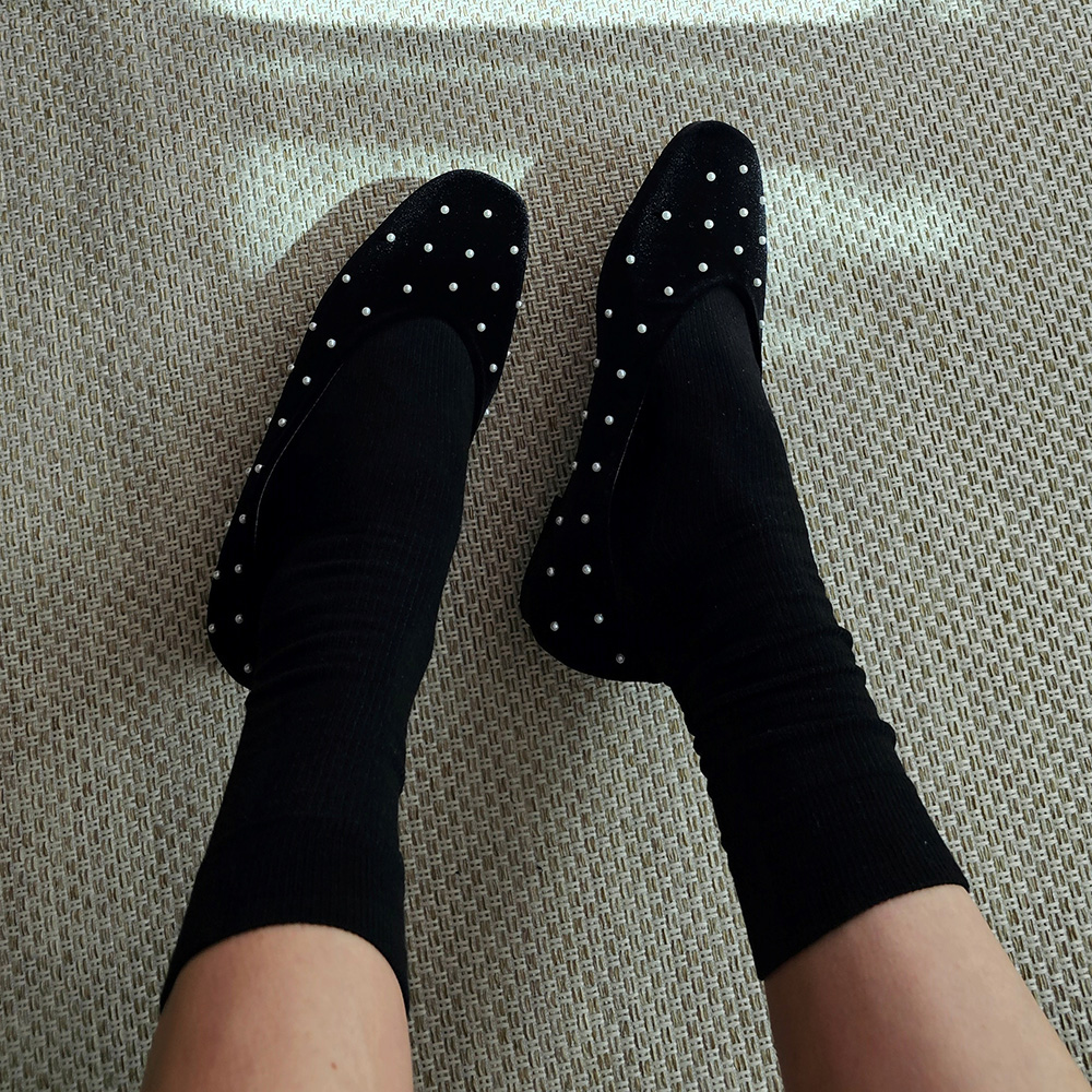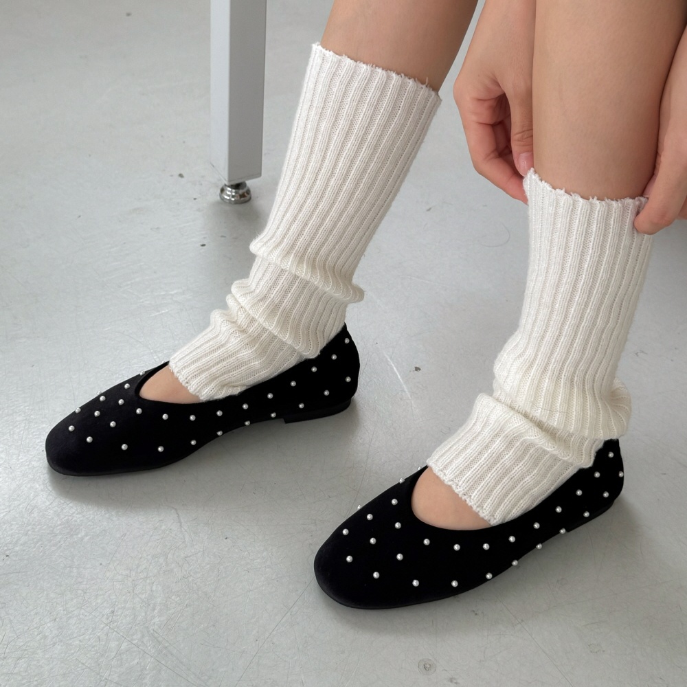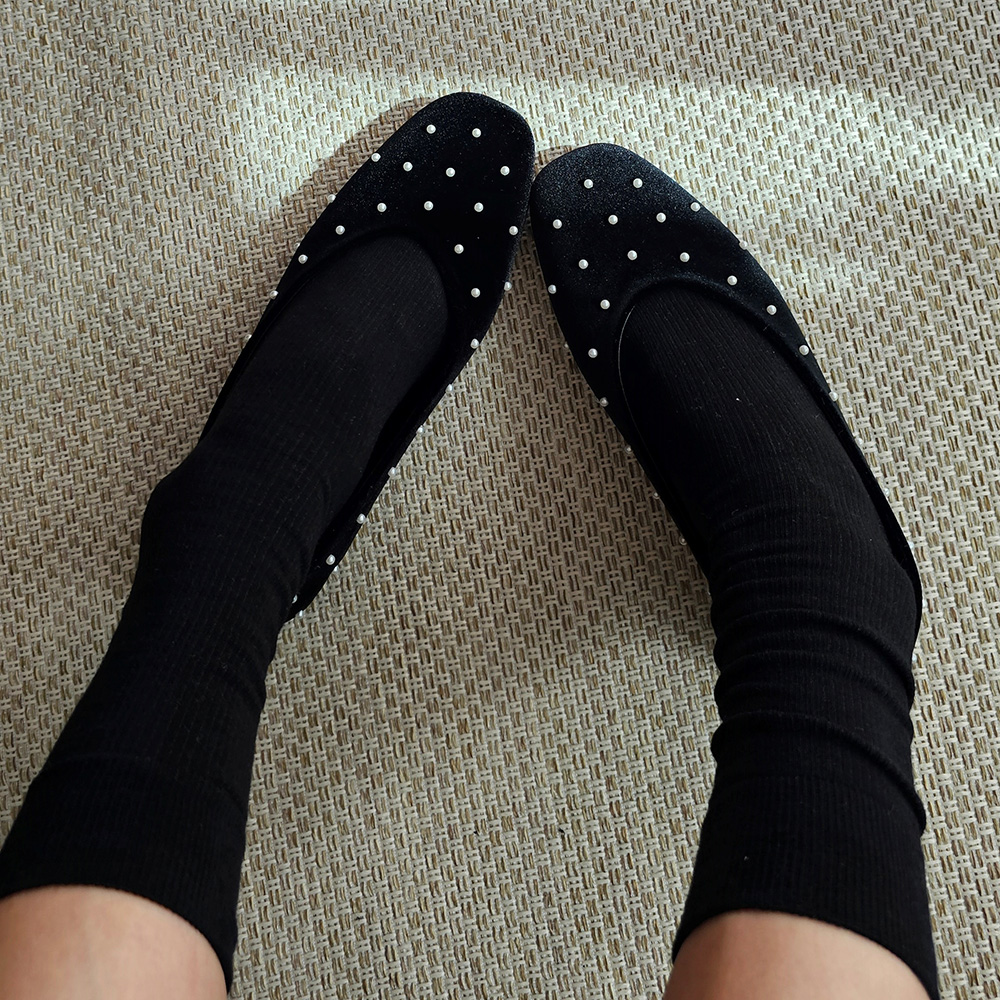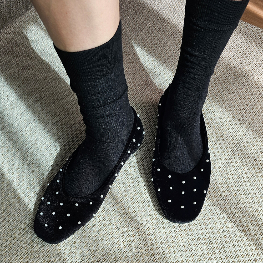 벨벳 진주 스터드 라운드토 쿠션 발편한 여자 플랫슈즈