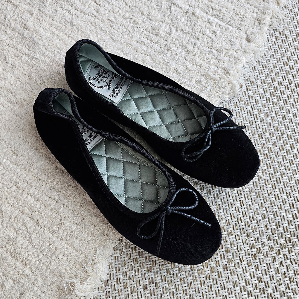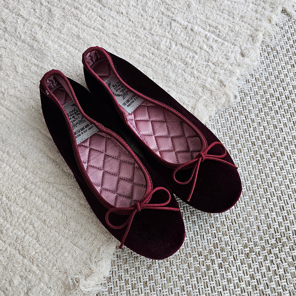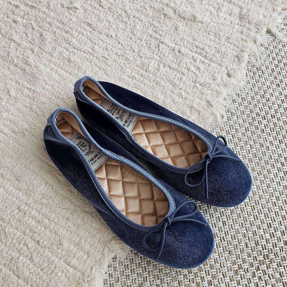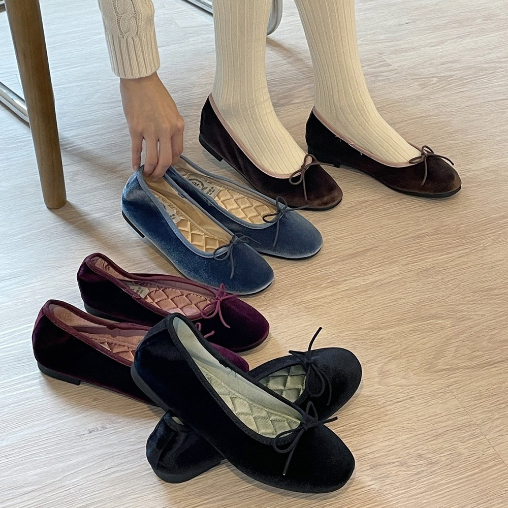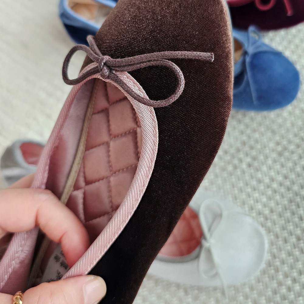 발편한 벨벳 퀼팅 인솔 쿠션 여자 단화 리본 플랫슈즈